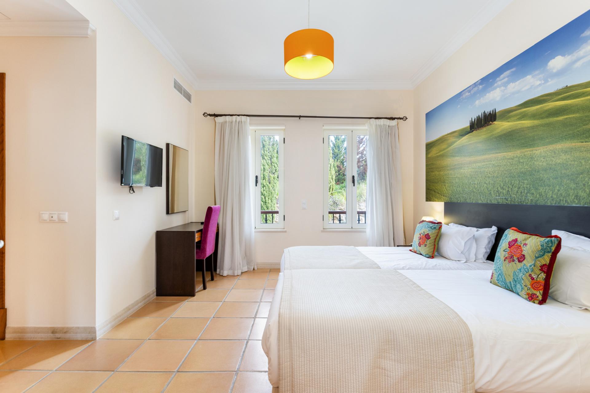À l’étage, la suite parentale constitue un véritable havre de paix, avec des placards encastrés, un balcon privé et une salle de bains lumineuse avec baignoire et douche. La deuxième chambre en suite dispose de deux balcons privés et d’un grand espace de rangement, offrant un confort supplémentaire. Un vaste solarium complète cet étage — l’endroit idéal pour profiter pleinement du soleil de l’Algarve.