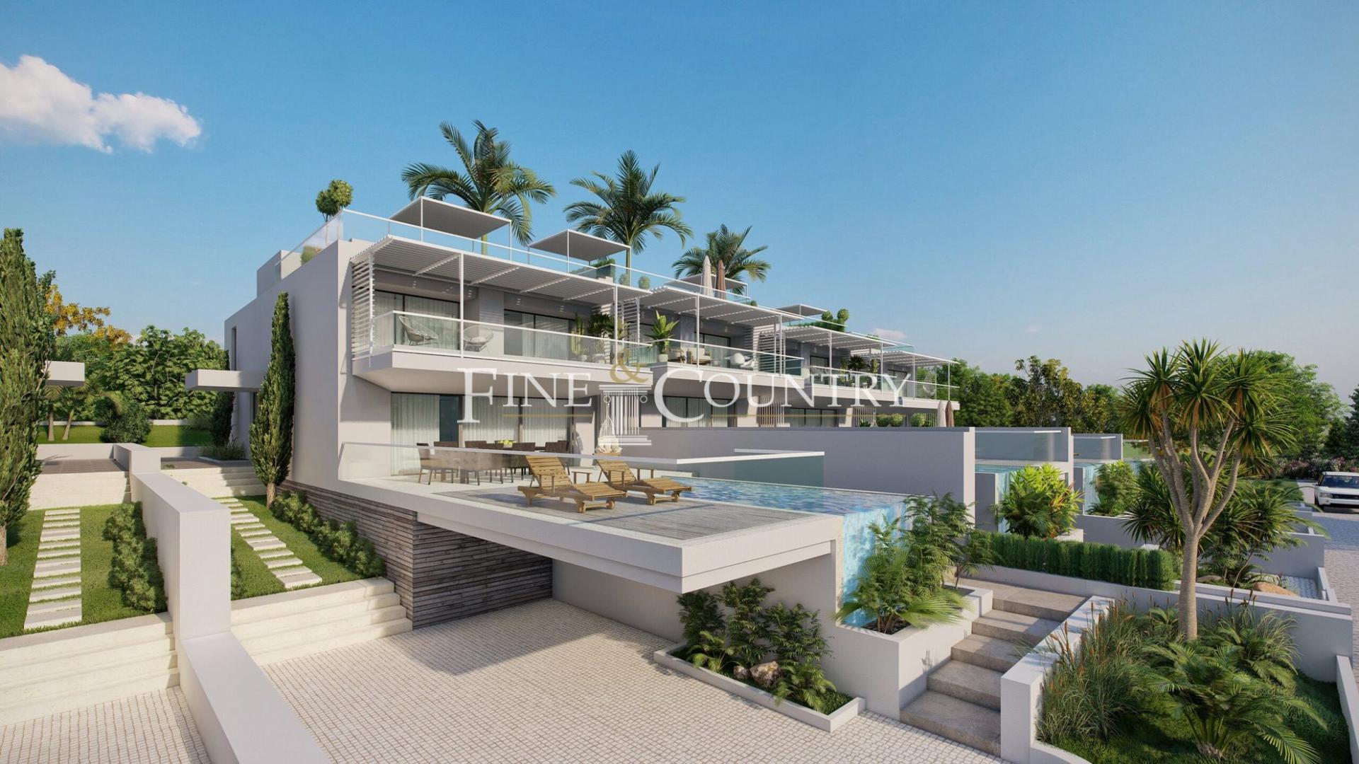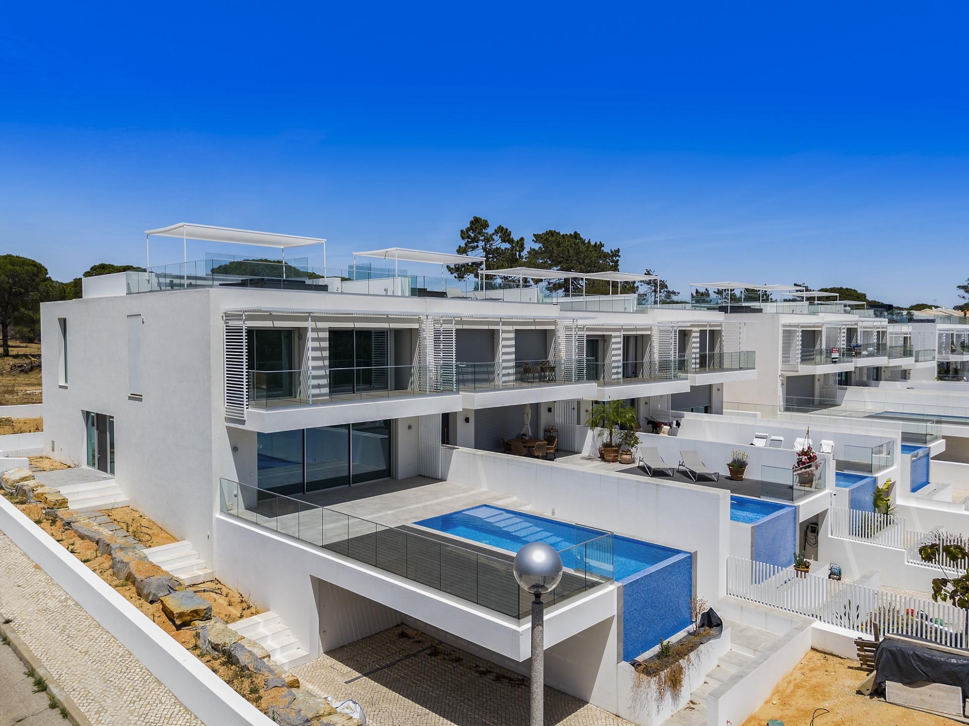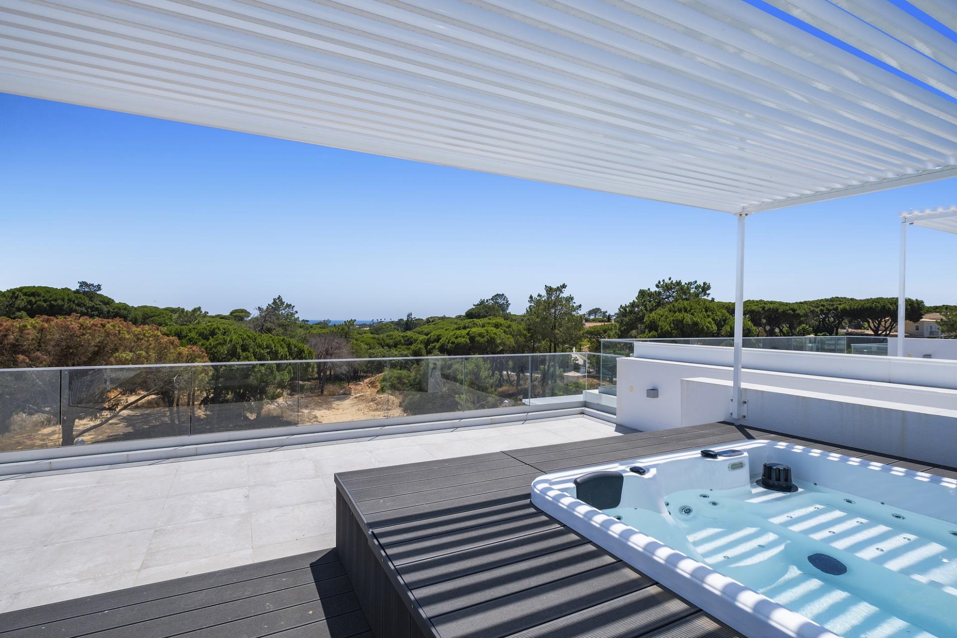 O design da moradia é uma celebração do viver moderno, distribuído por três níveis e apresentando três luxuosos quartos en-suite. O rés-do-chão é um tributo à elegância em plano aberto, com uma cozinha de última geração que se integra perfeitamente com uma área de estar e jantar luminosa, adornada por grandes janelas que convidam a luz e sol do Algarve. Subindo ao primeiro andar, os três quartos, todos en-suite e com acesso direto a rterraço na cobertura. Aqui, entre vistas magnificas, situa-se o seu Jacuzzi privado - um refúgio para relaxamento sob as estrelas.
