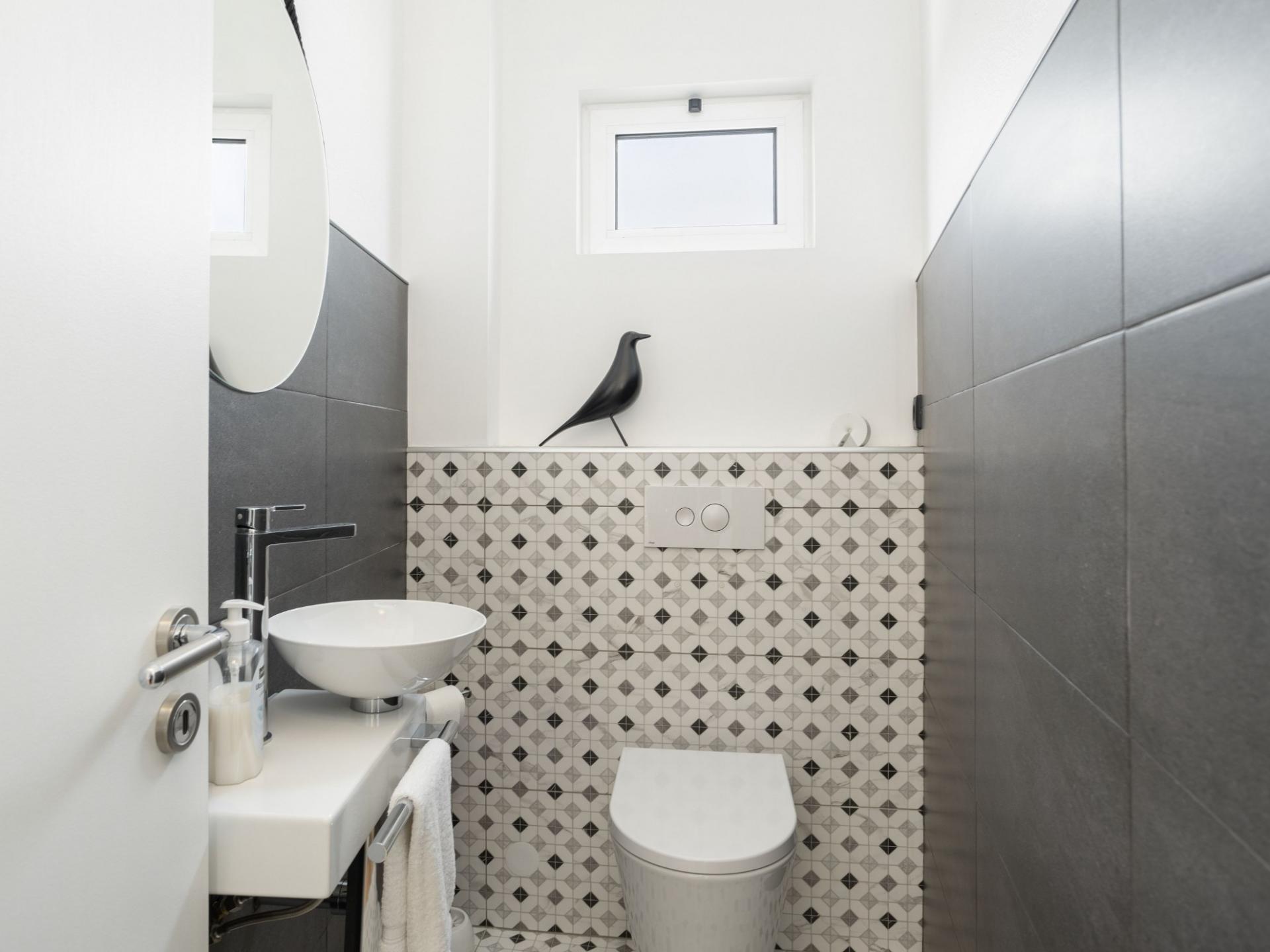 Die großzügige Garage unter dem Haus verfügt über ein WC, Dusche und reichlich Stauraum. Sie bietet Platz für mehrere Fahrzeuge und das Potenzial, ein separates Apartment zu schaffen, ohne die Garagenfunktion einzuschränken.