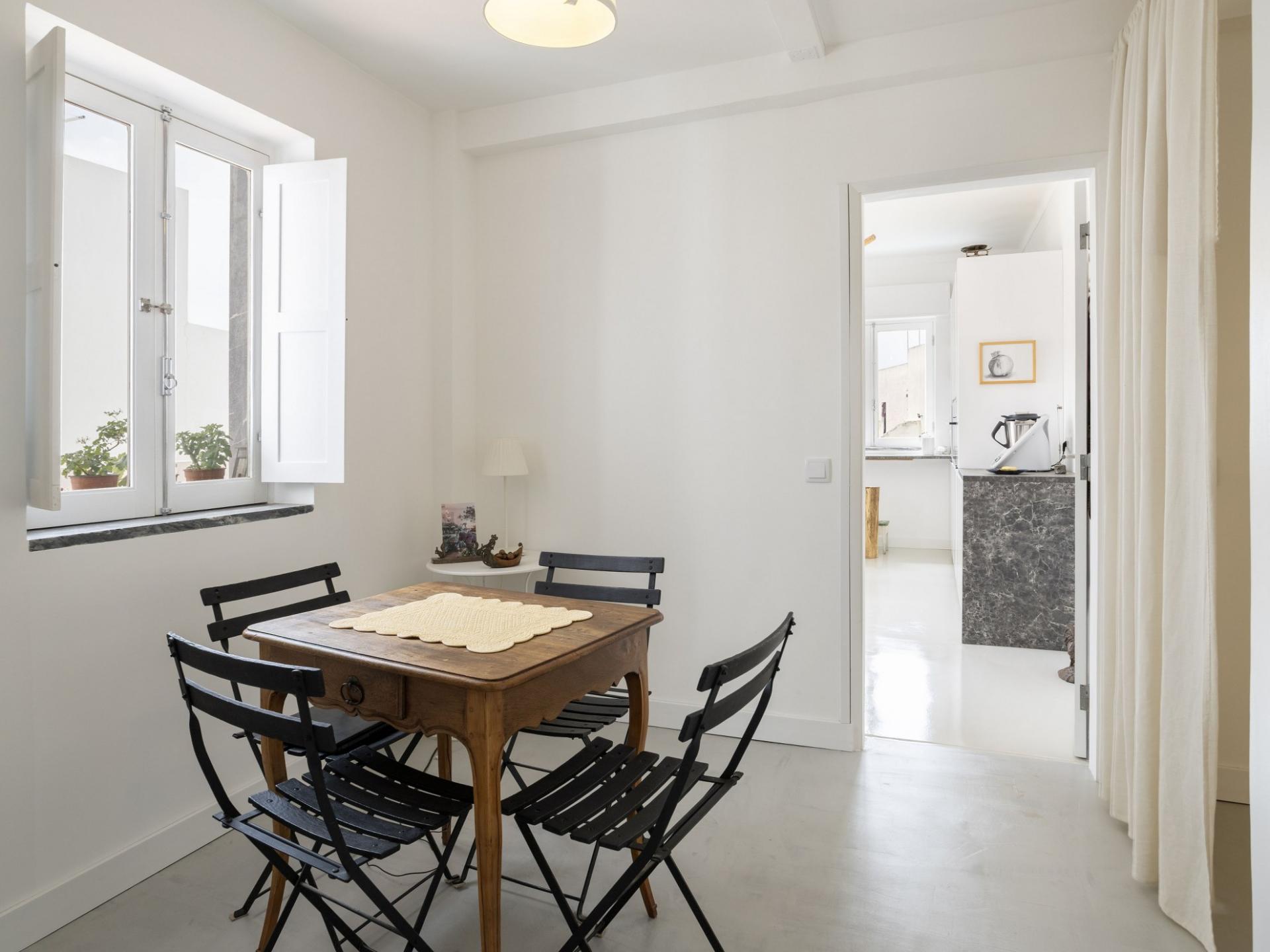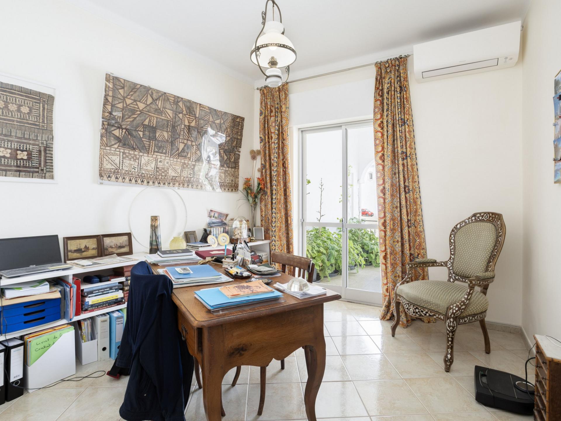 Im obersten Stockwerk öffnet sich ein weiteres Schlafzimmer mit Lounge-Bereich zur Dachterrasse mit Panoramablick auf die Ria Formosa und die Stadt – perfekt, um das Licht der Algarve den ganzen Tag über zu genießen. Ein gemeinsames Badezimmer, separates WC und praktische Stauräume ergänzen diese Ebene.