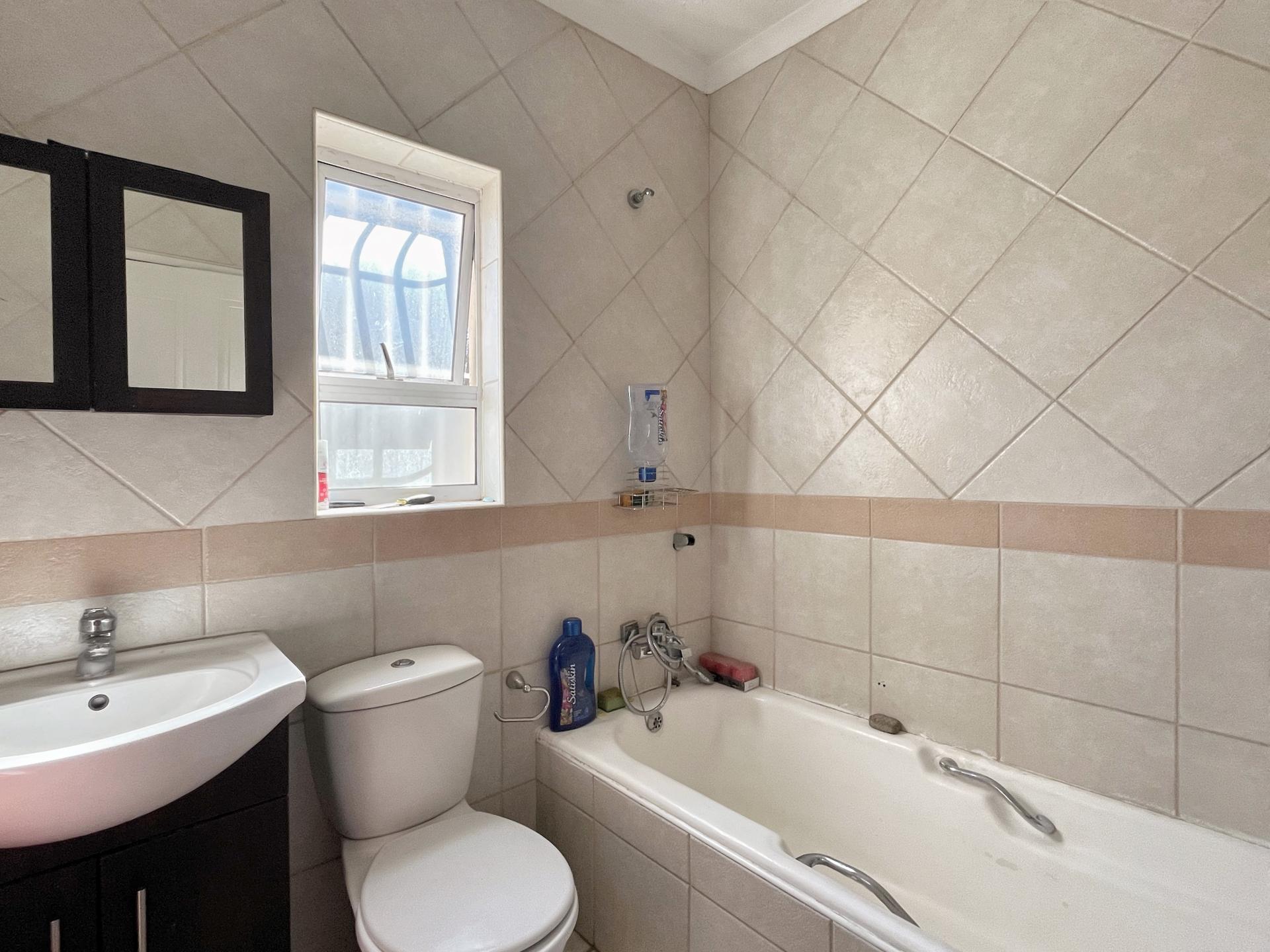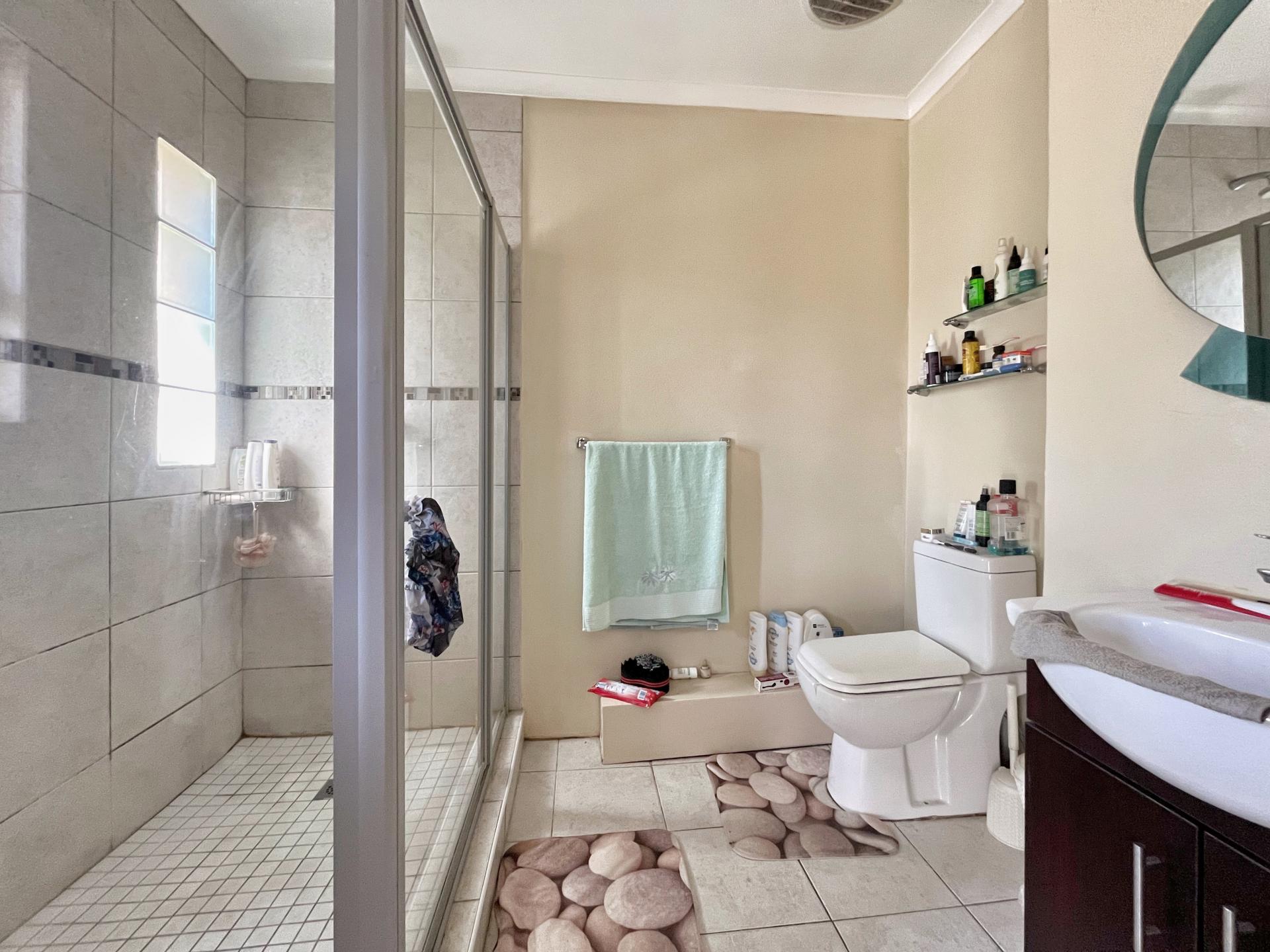 Inside, the living spaces are generous and welcoming. A sun-filled lounge and dining area flow easily into the kitchen, which offers ample cupboard space, room for all your appliances and access to a private courtyard with basin. A guest loo is tucked discreetly downstairs. Upstairs, you’ll find three well-sized bedrooms and two bathrooms (main en-suite). The main bedroom opens onto a private balcony with sweeping views – your own peaceful escape to start or end the day.