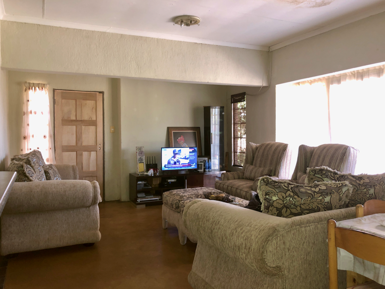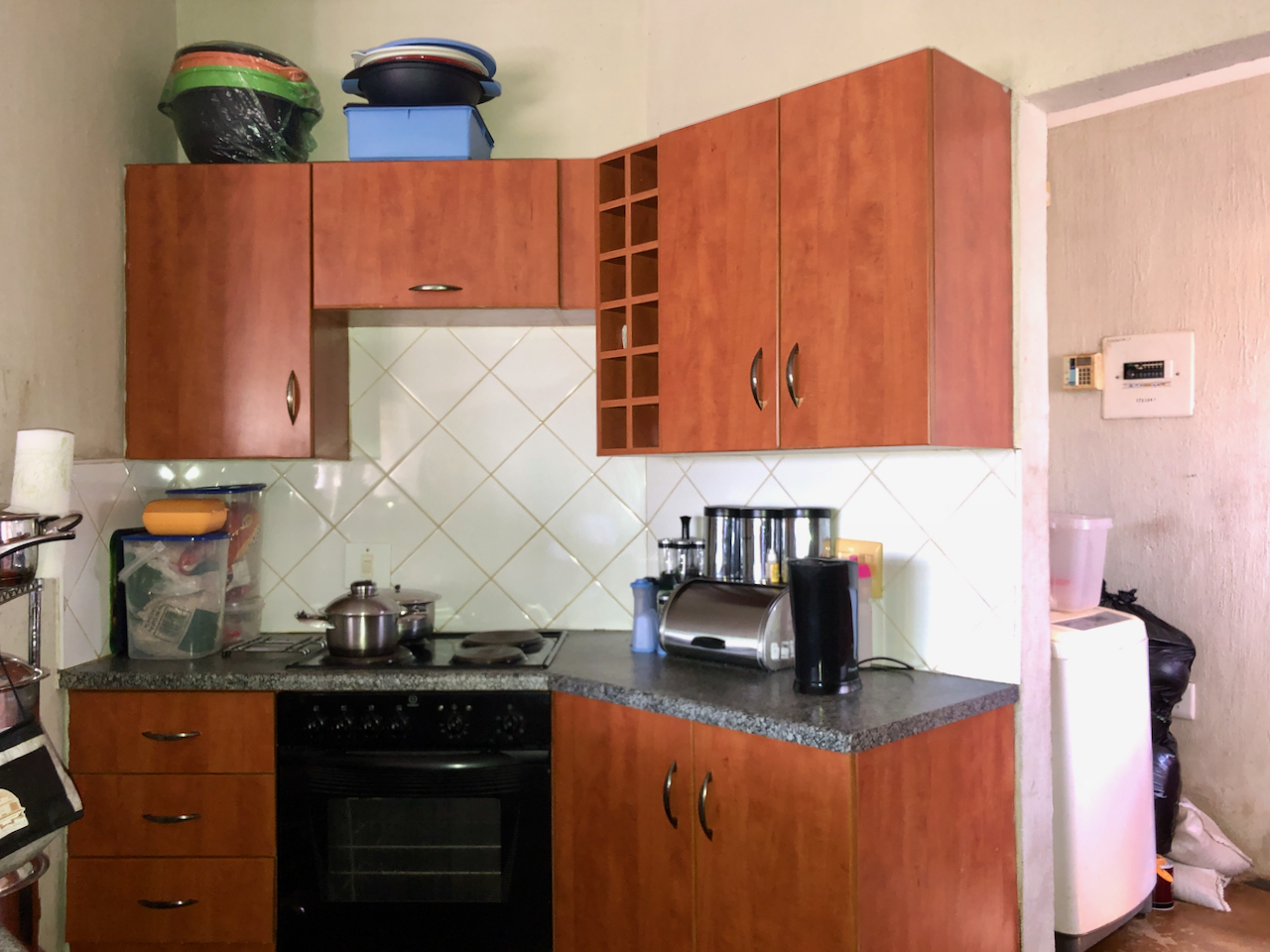 Step into a spacious open-plan lounge and dining area that flows into a well-sized kitchen, complete with ample cupboard space, a corner pantry, and a separate scullery – practical and ready for a stylish update.