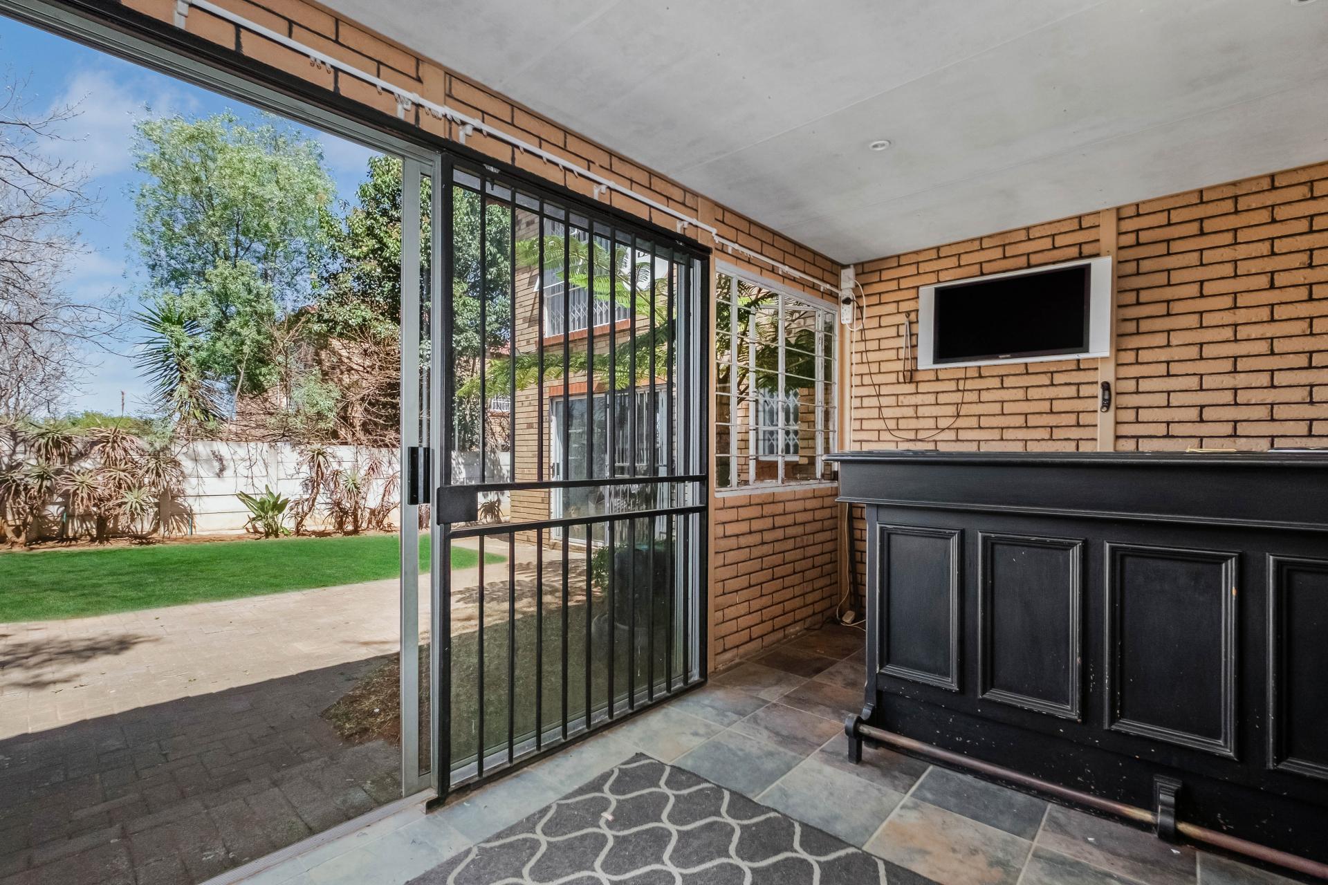 The open plan lounge and kitchen area is designed for modern living and effortless entertaining. The kitchen boasts ample cupboard space, providing all the storage you need for your culinary adventures. The open plan living area offers upgraded tiles and flows from the dining room to the lounge. Serviced with a well appointed guest toilet downstairs. Outside you’ll find a covered patio and built in braai and bar that overlooks the lush and manicured garden - an absolute haven for entertaining and family fun.