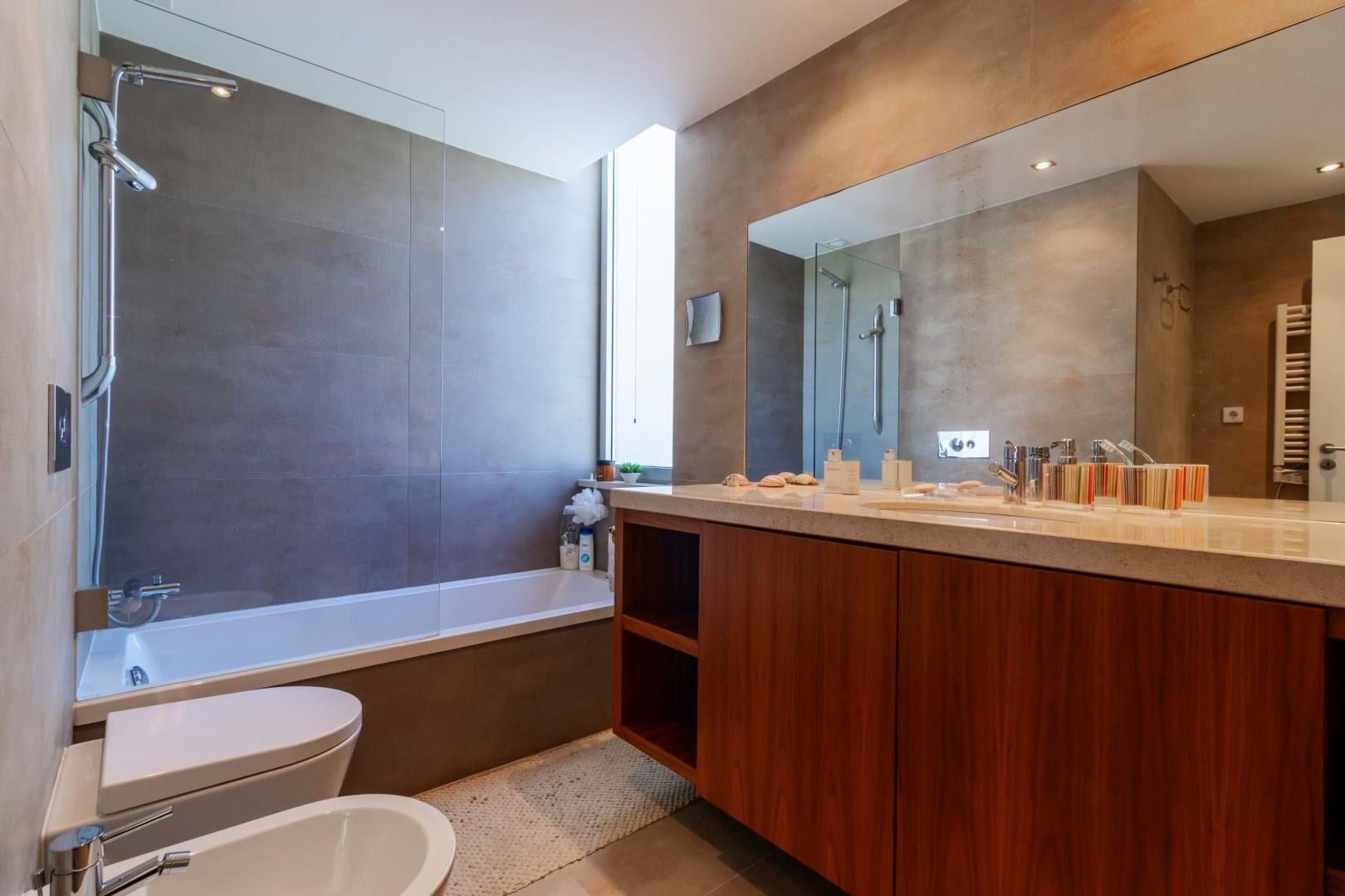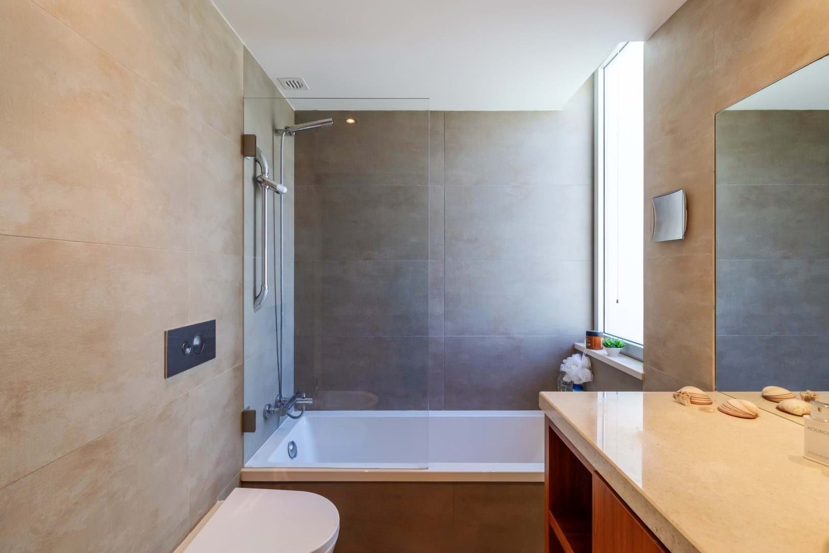 - A family bathroom with a bathtub serves the additional bedrooms.