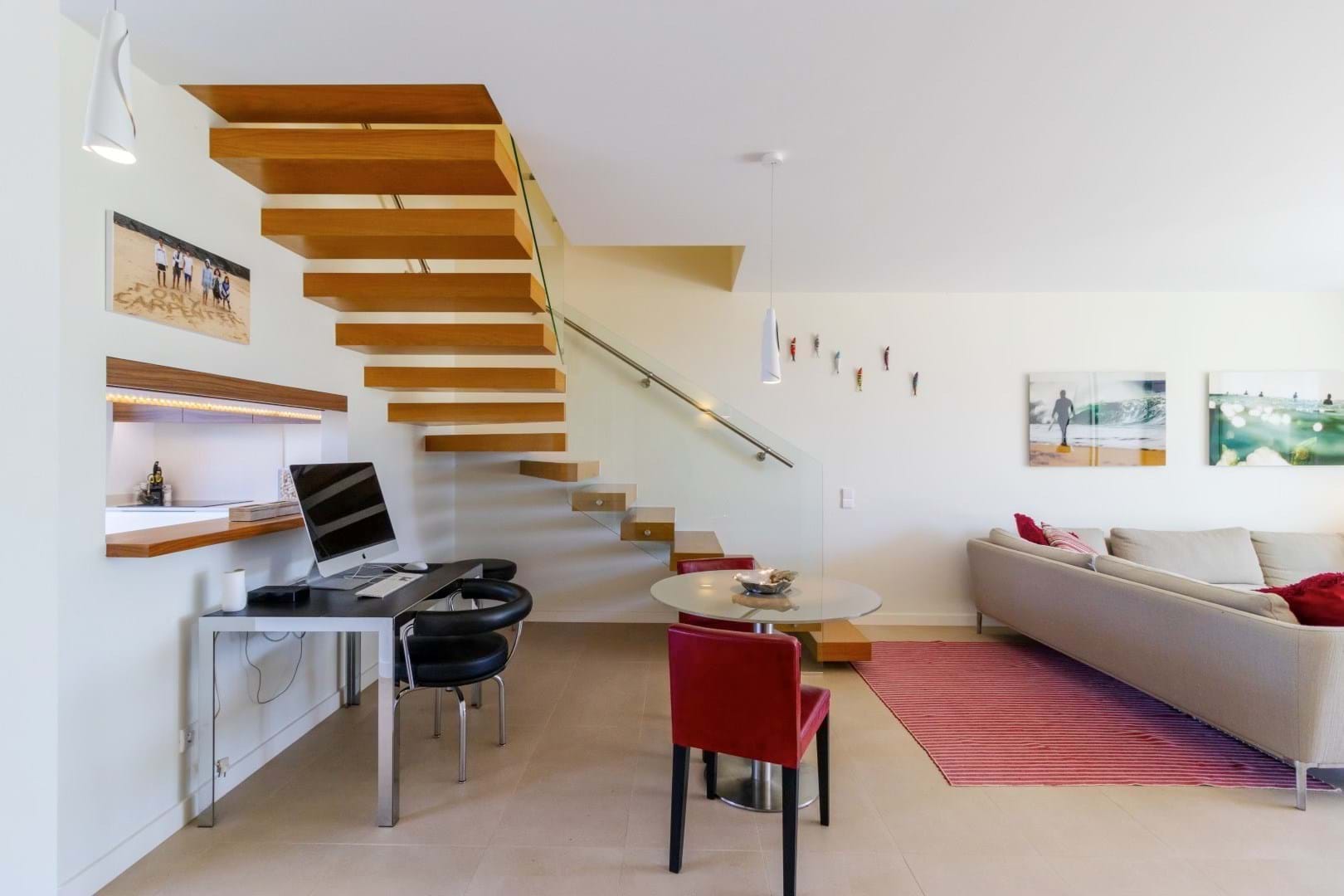 Upstairs, youll find three generously sized bedrooms, all with custom-built wardrobes and plenty of natural light.