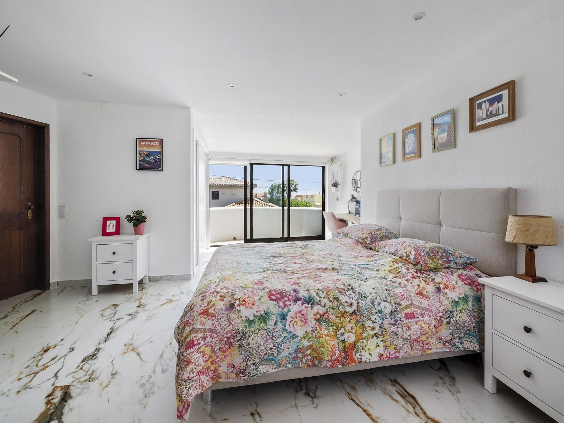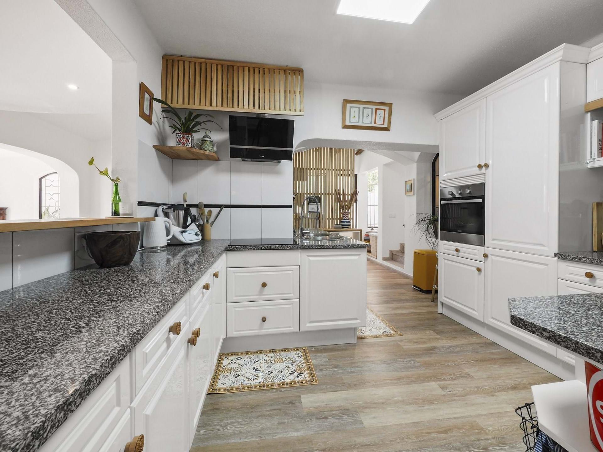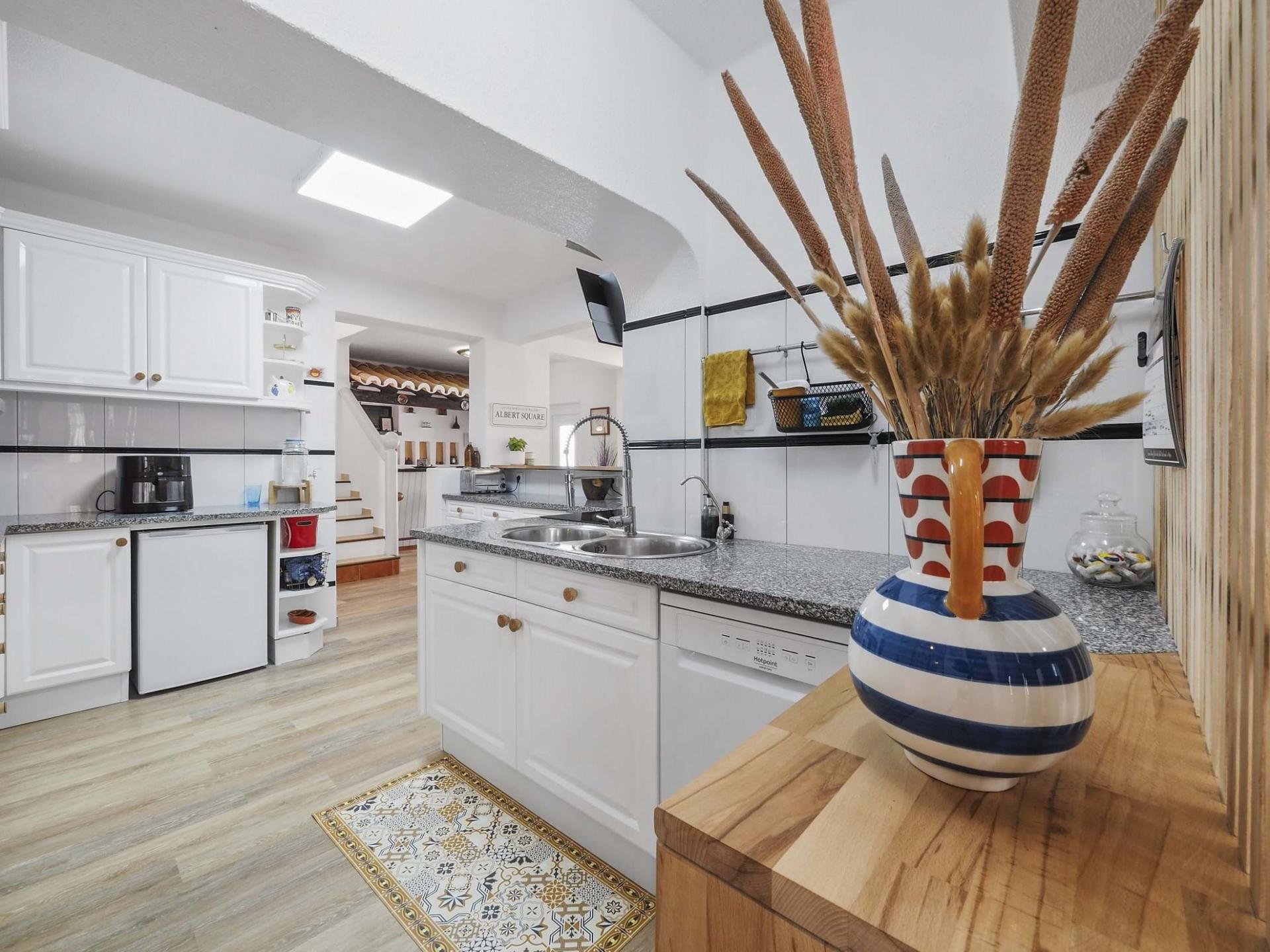 Built in 1988 and recently renovated, the home is in excellent condition. The layout features two bedrooms on the ground floor sharing a modern bathroom with shower and the spacious master suite on the first floor, which has a distant sea view, a small balcony, and a walk-in closet.