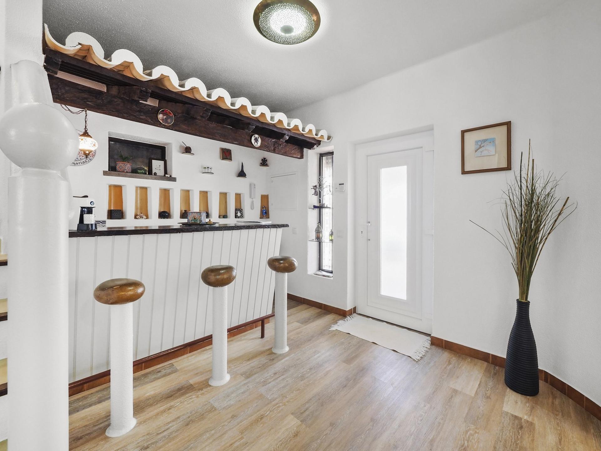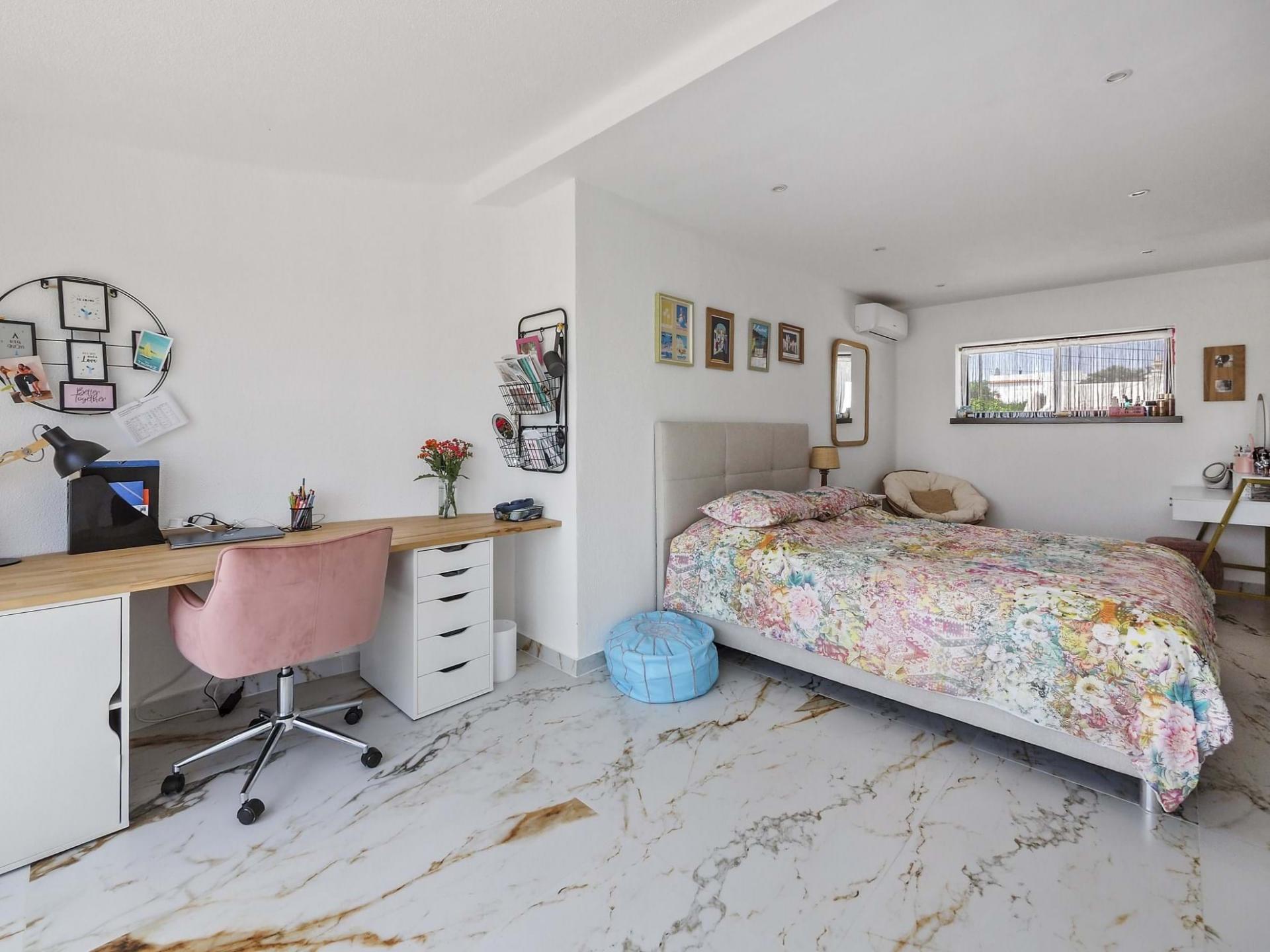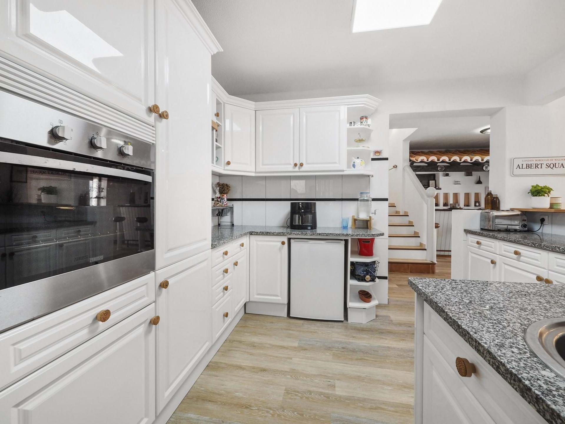 Built in 1988 and recently renovated, the home is in excellent condition. The layout features two bedrooms on the ground floor sharing a modern bathroom with shower and the spacious master suite on the first floor, which has a distant sea view, a small balcony, and a walk-in closet.