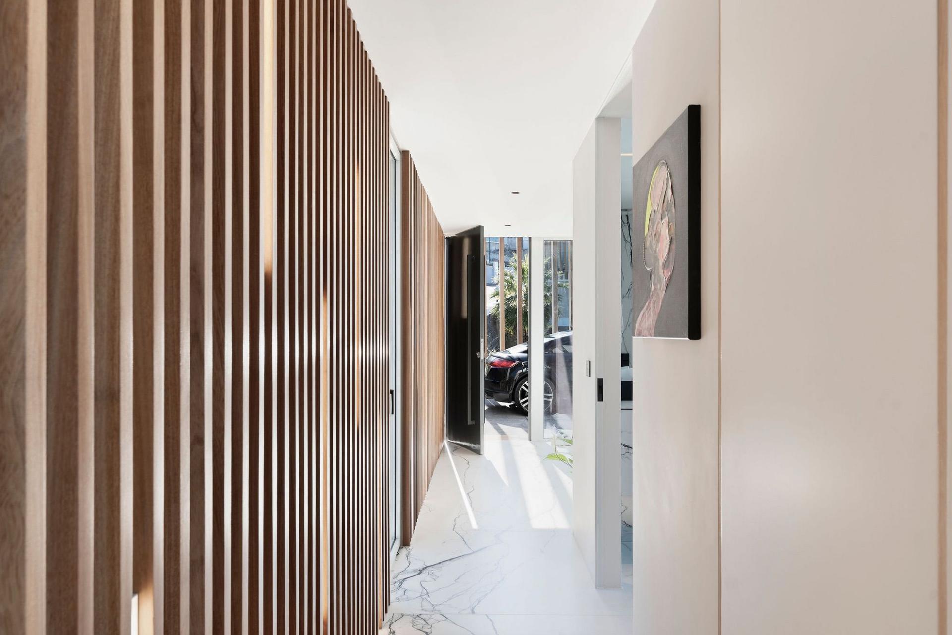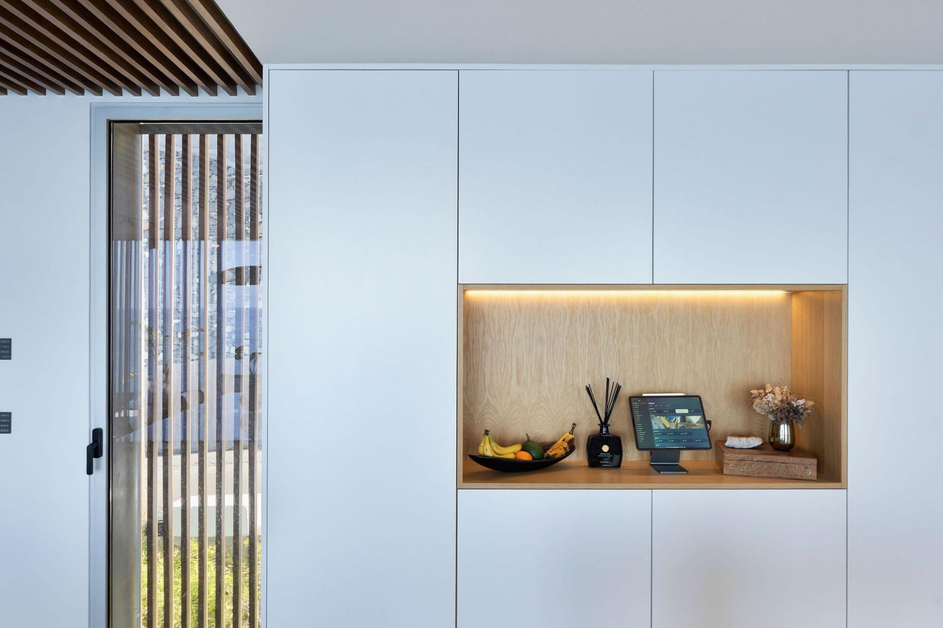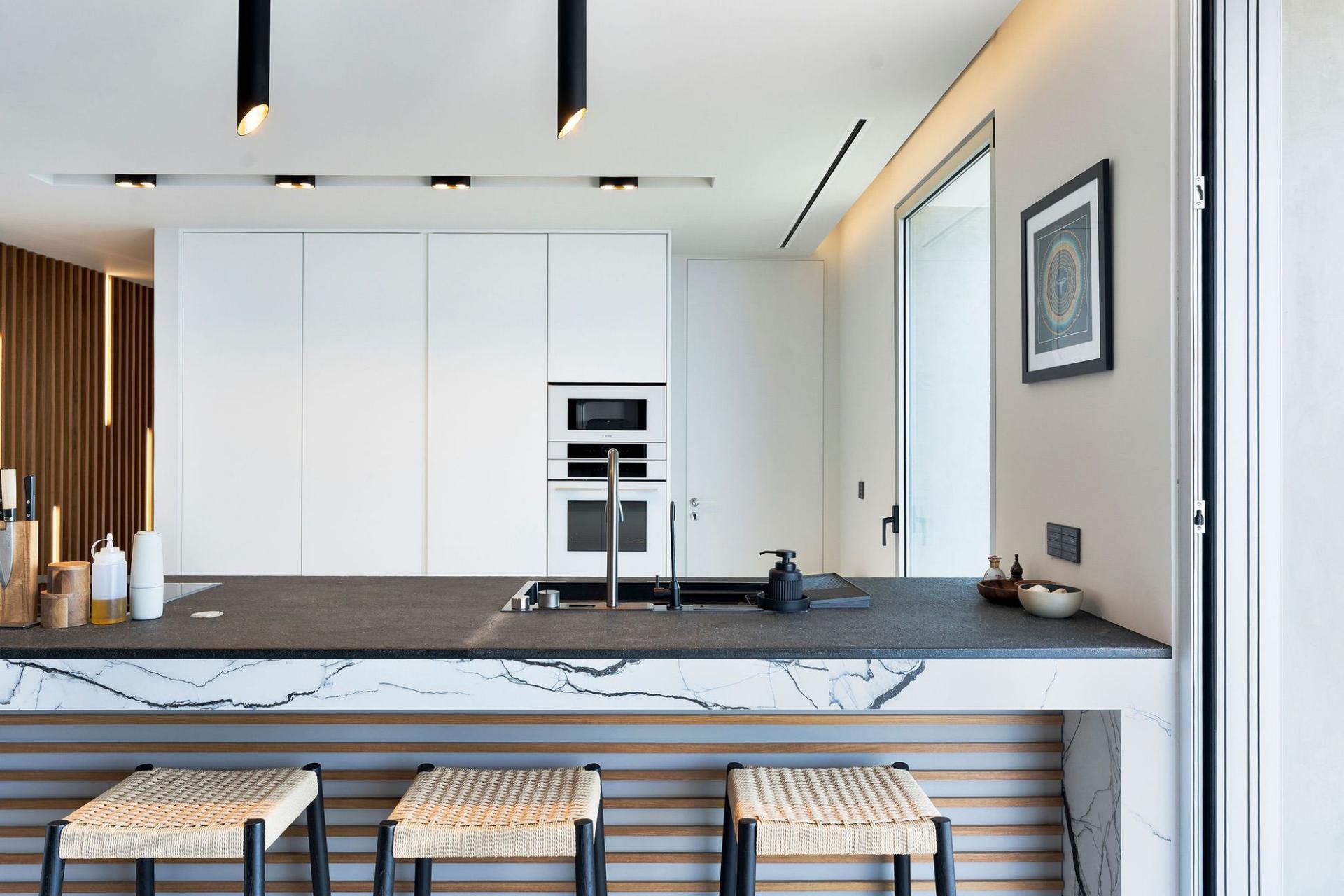 Step inside to find a spacious open-plan living, dining, kitchen, and library area bathed in natural light. Three double en-suite bedrooms, offering comfort and privacy. The master suite includes a Roman spa bath and rain shower. A convenient home elevator serves all three levels, making the villa fully accessible.