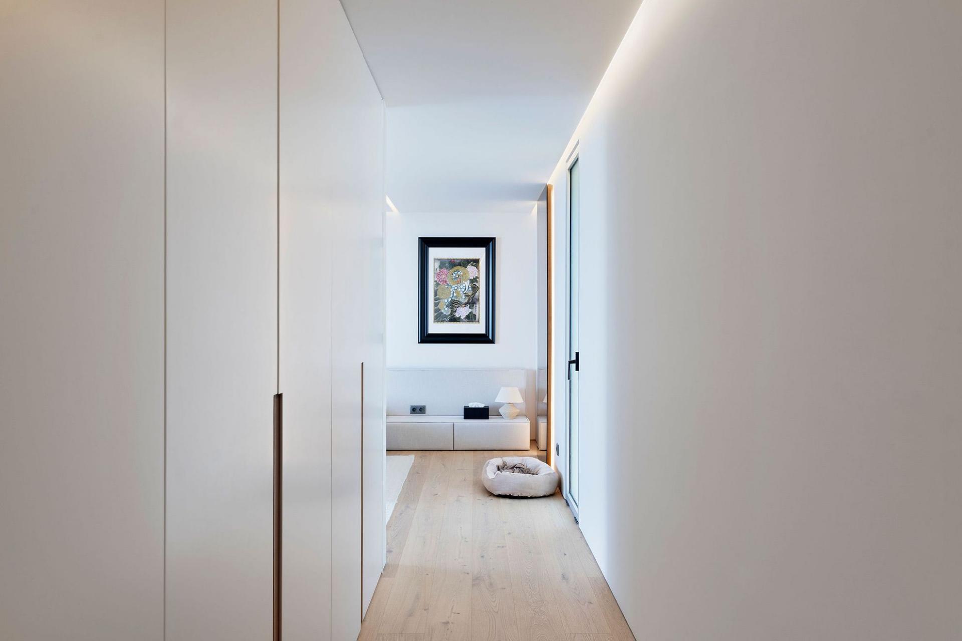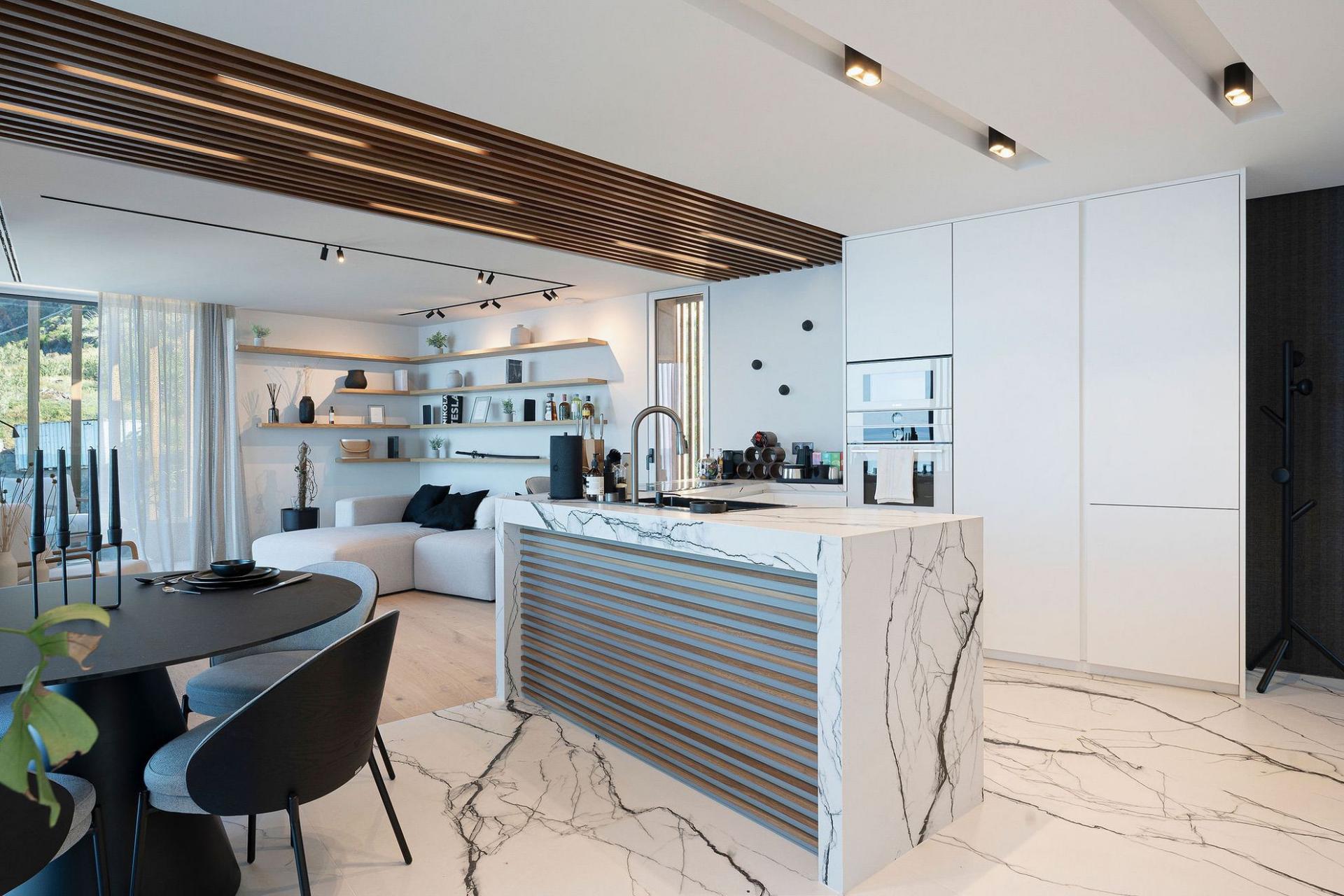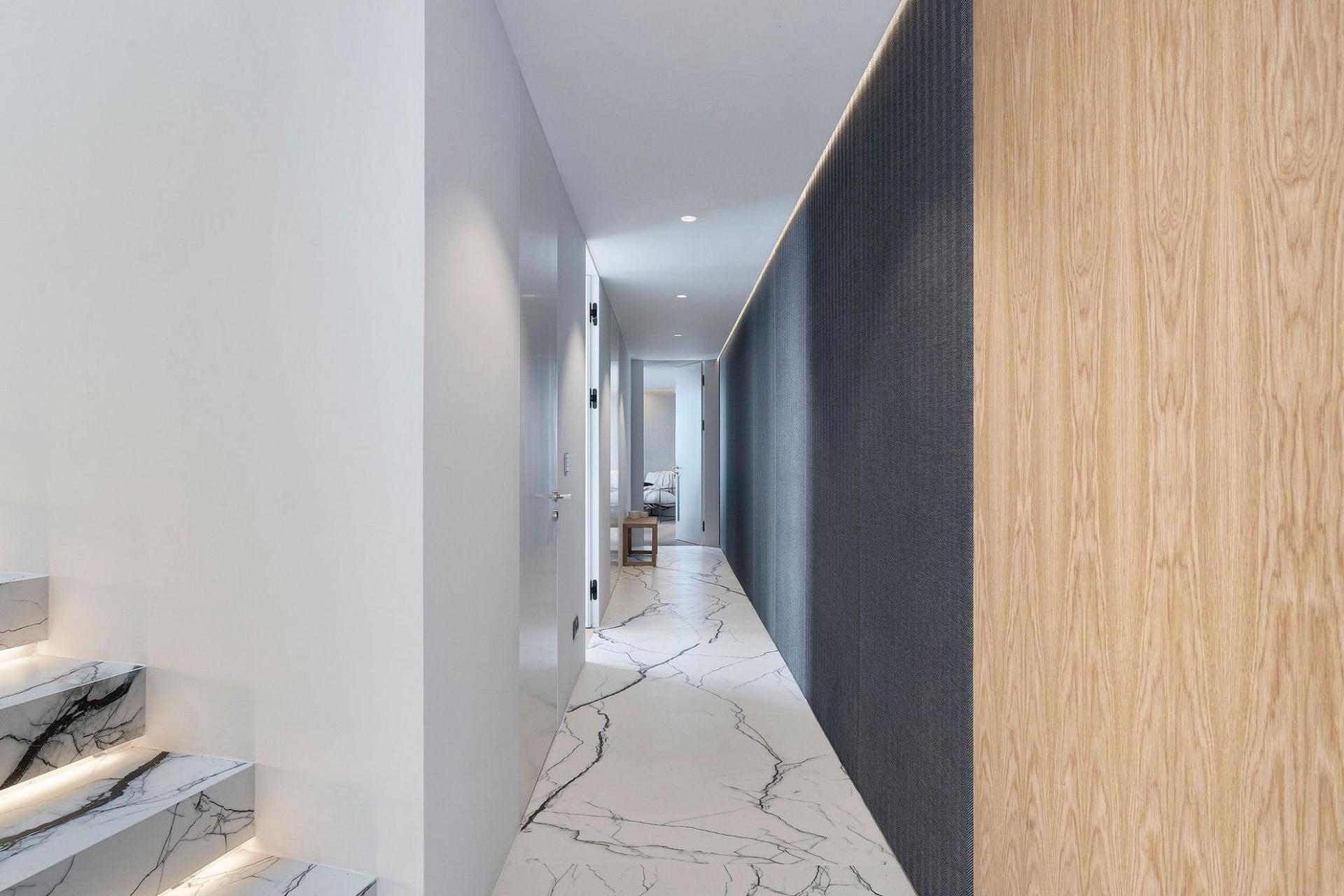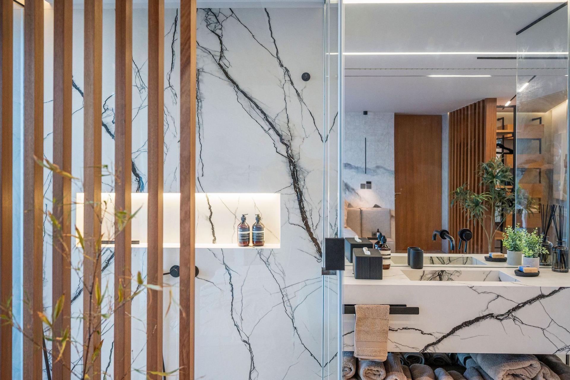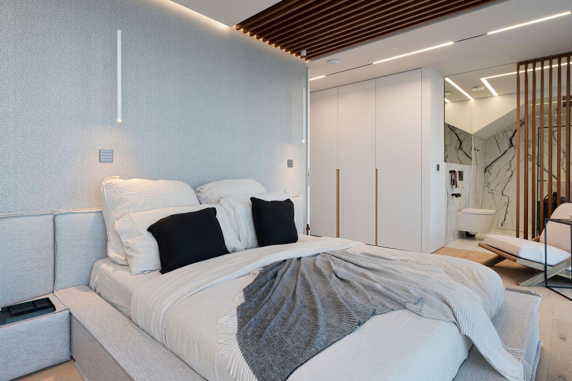 Entertainment is effortless here: the lower floor hosts a 36 m² infinity pool with immersed sun loungers, an outdoor cinema, gas fireplace, BBQ bar, and multi‑level garden lounges. Smart-home technology (with Siri voice control), ambient lighting, and a private study/library enhance daily living. A heated jacuzzi, plunge pool, private laundry room, garage, and guest parking complete the package.