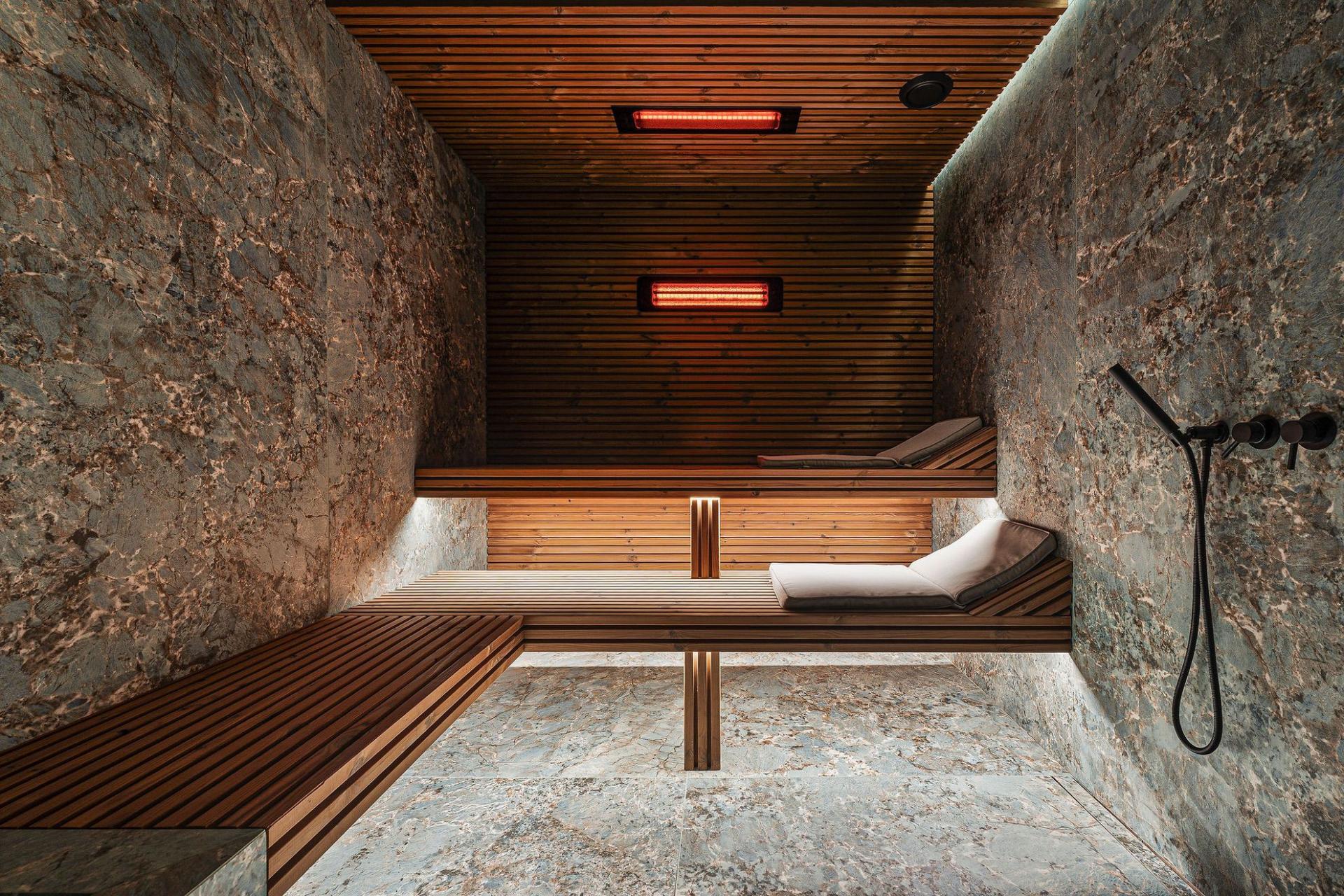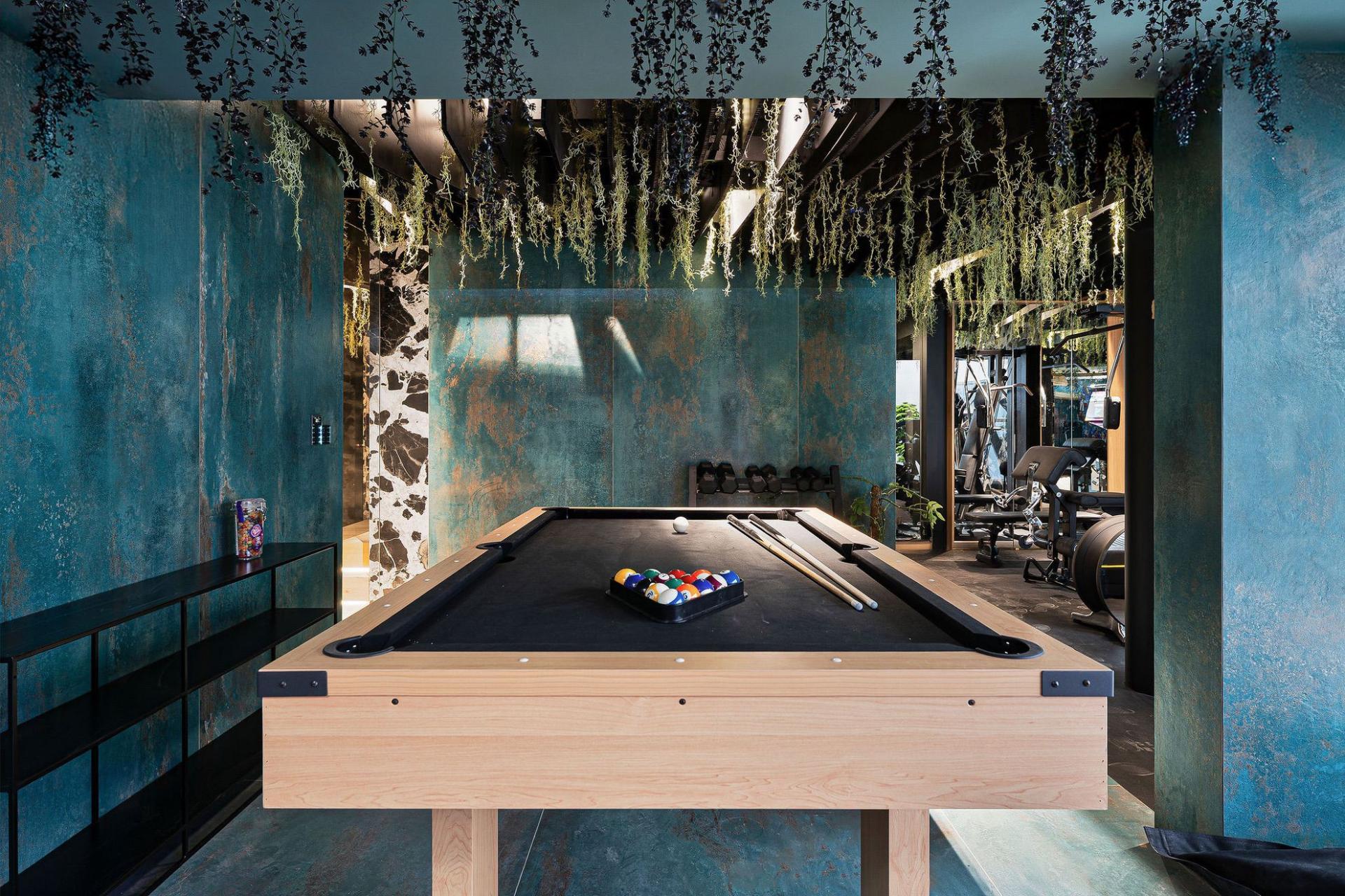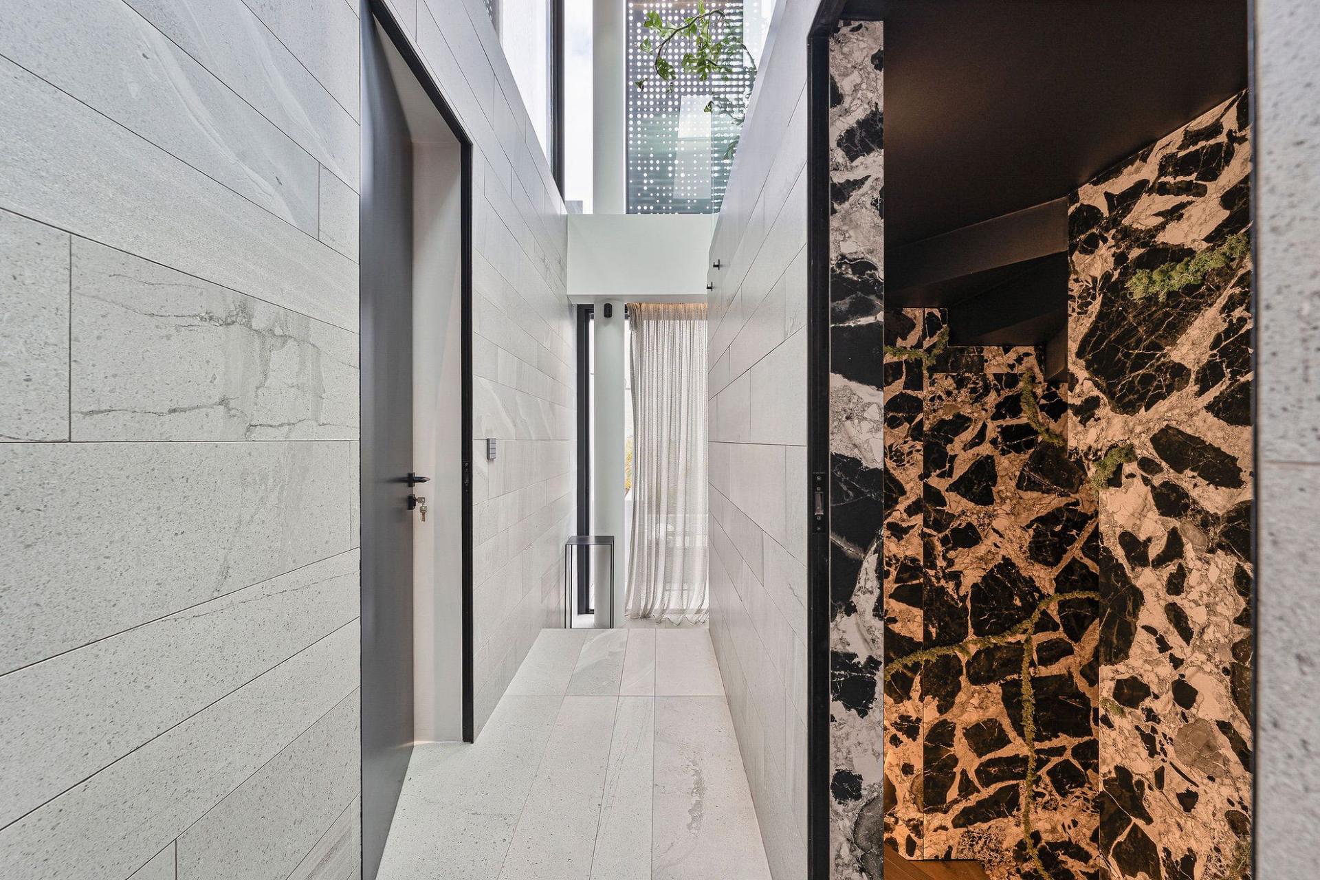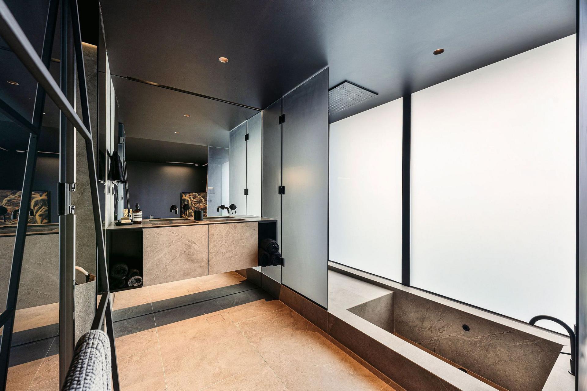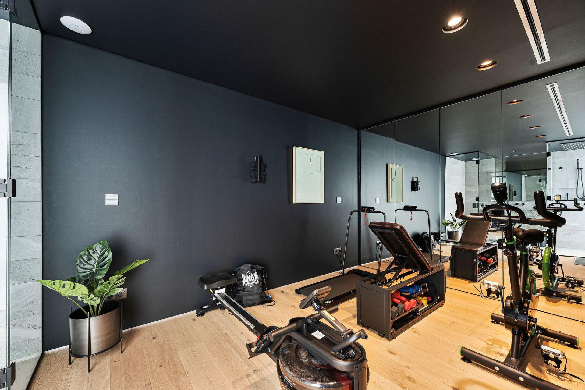 Inside, the open-plan layout includes a spacious living area, dining space, kitchen, private library, gym, and sauna. Each of the three bedrooms features its own en-suite bathroom, with the master suite offering a Roman spa experience. Entertainment is elevated with an indoor-outdoor cinema setup, full smart home integration (Face ID entry, Siri voice control, iPad panels), motorized blinds, and custom climate control throughout.