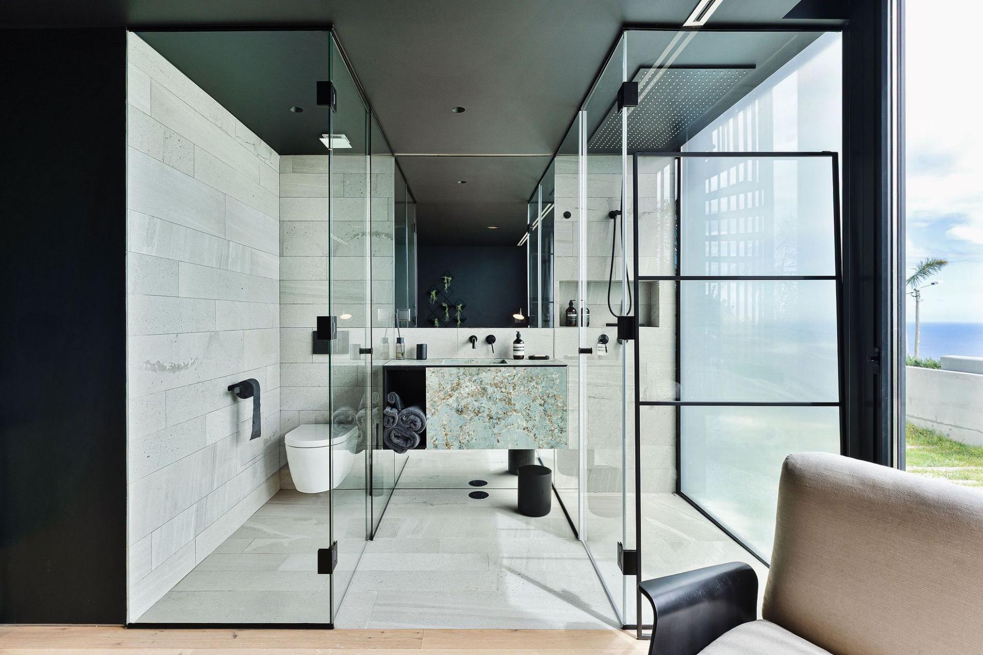 • zen-inspired architecture with mirrored glass facing the Atlantic