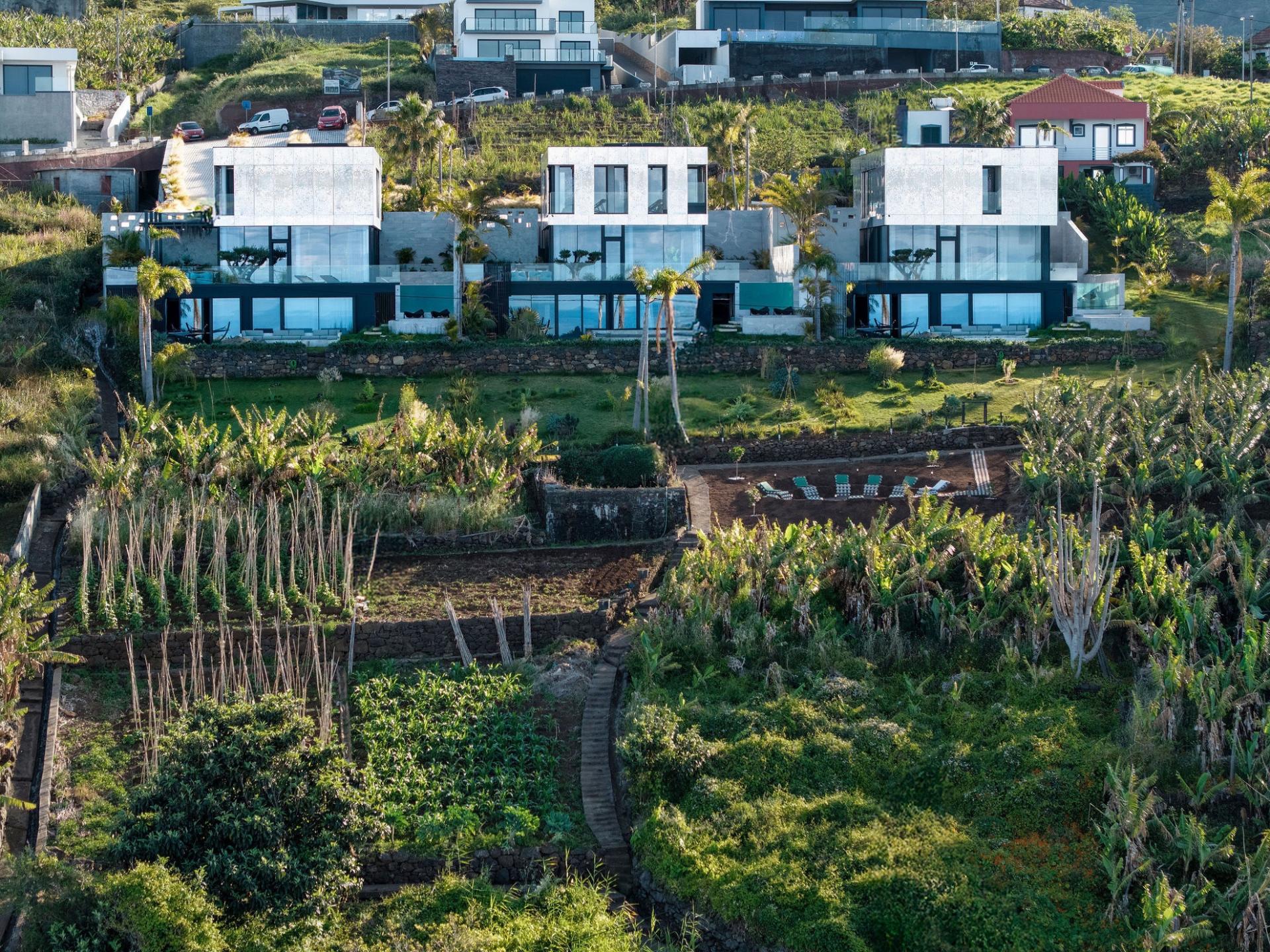 Willkommen in Saudade, einer futuristischen 3‑Schlafzimmer-Villa auf der Steilküste von Ribeira Brava, Madeira. Spiegelnde Glasfassaden und ein Zen‑Design verschmelzen mit dem umgebenden Bananenplantagen‑Charme, während sich beeindruckende Blicke auf den Atlantik und die Berge eröffnen