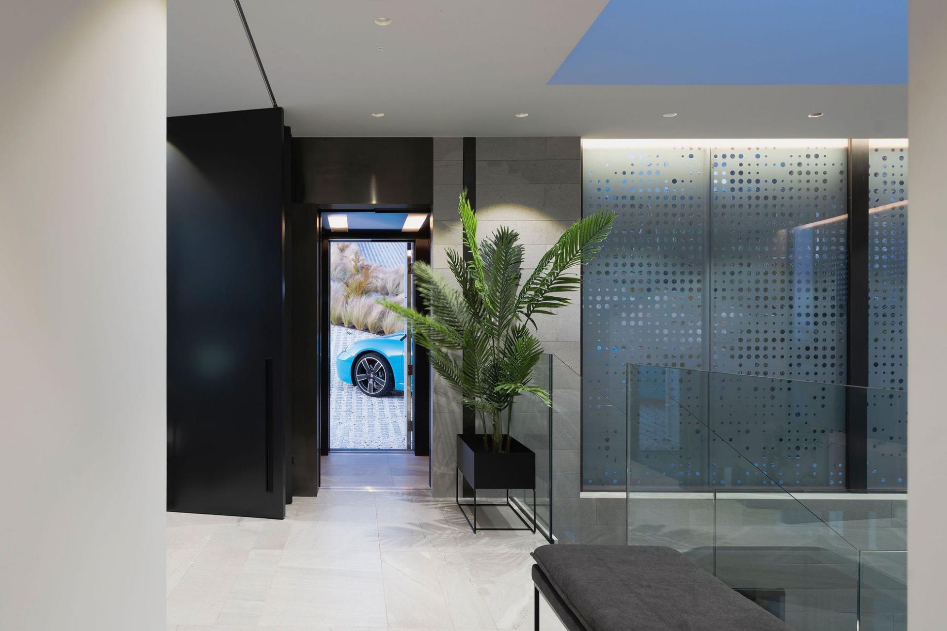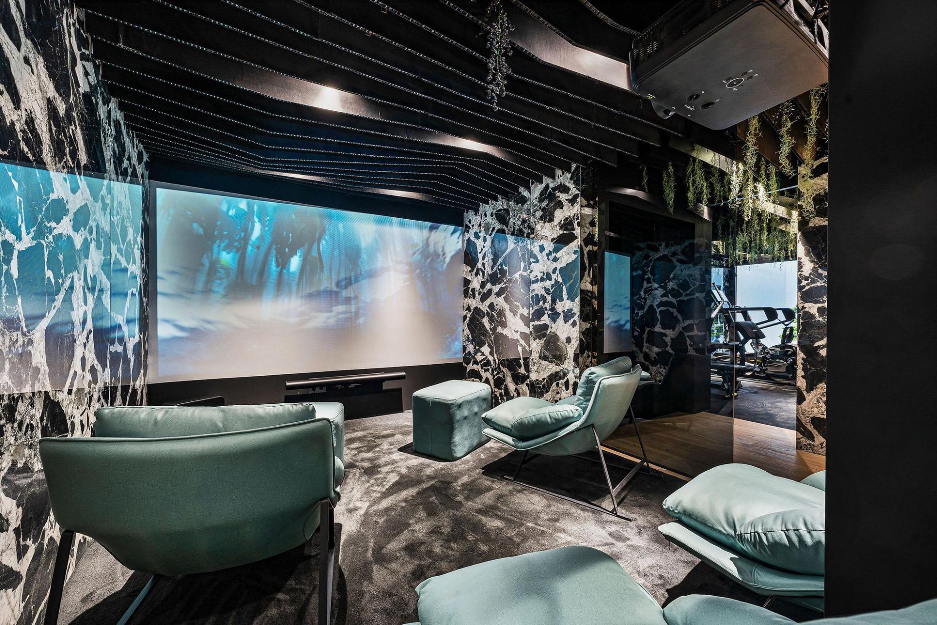 Inside, the open-plan layout includes a spacious living area, dining space, kitchen, private library, gym, and sauna. Each of the three bedrooms features its own en-suite bathroom, with the master suite offering a Roman spa experience. Entertainment is elevated with an indoor-outdoor cinema setup, full smart home integration (Face ID entry, Siri voice control, iPad panels), motorized blinds, and custom climate control throughout.
