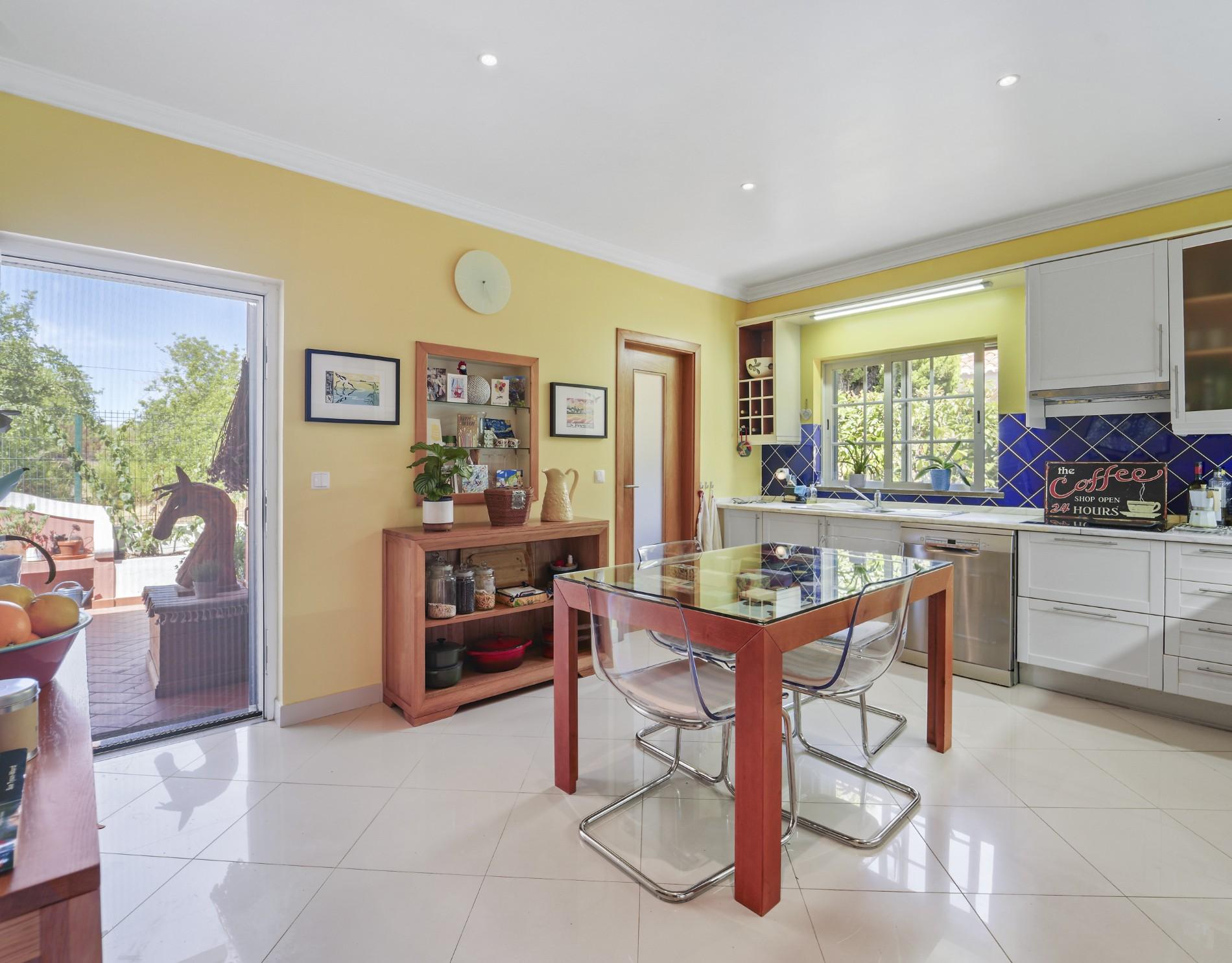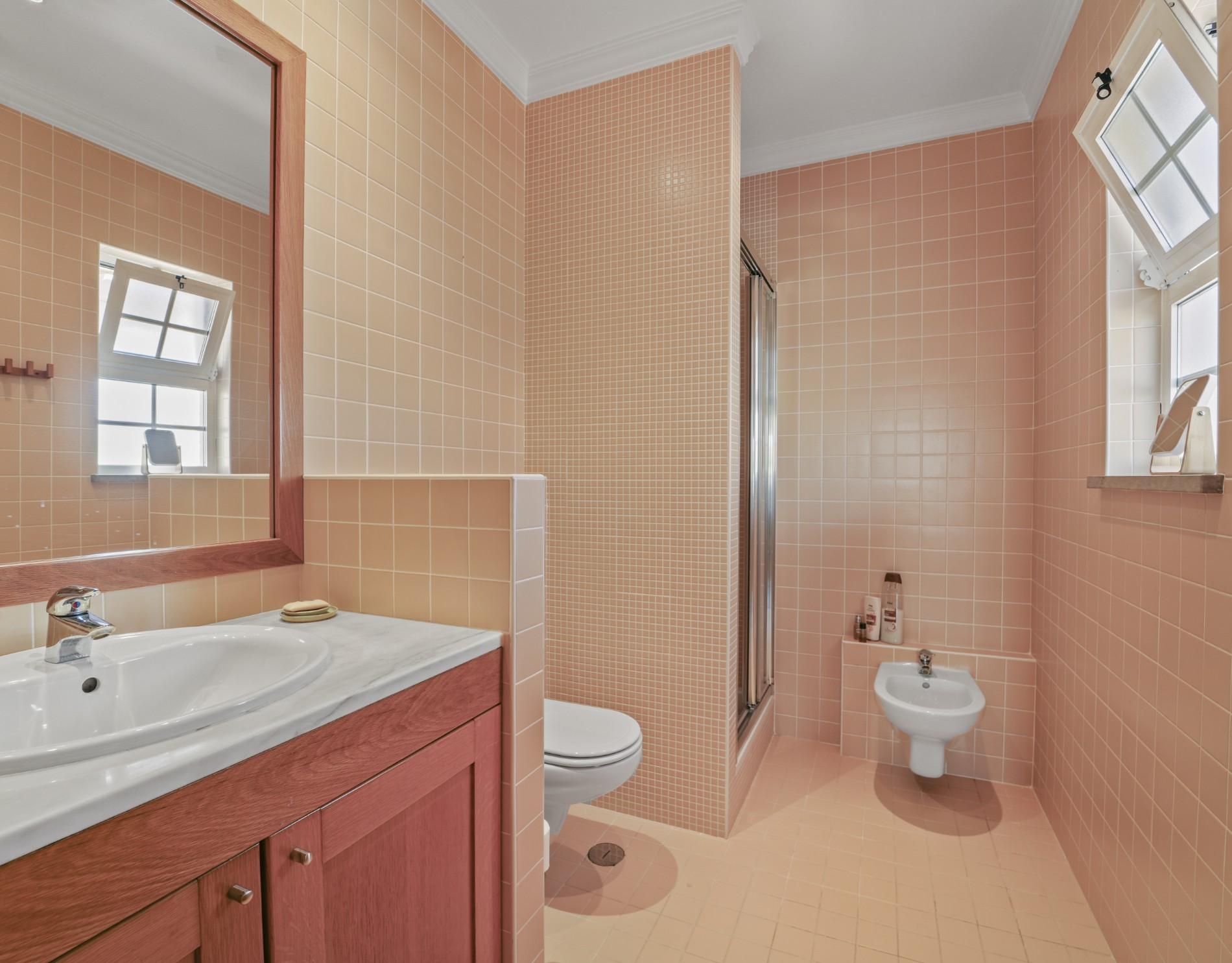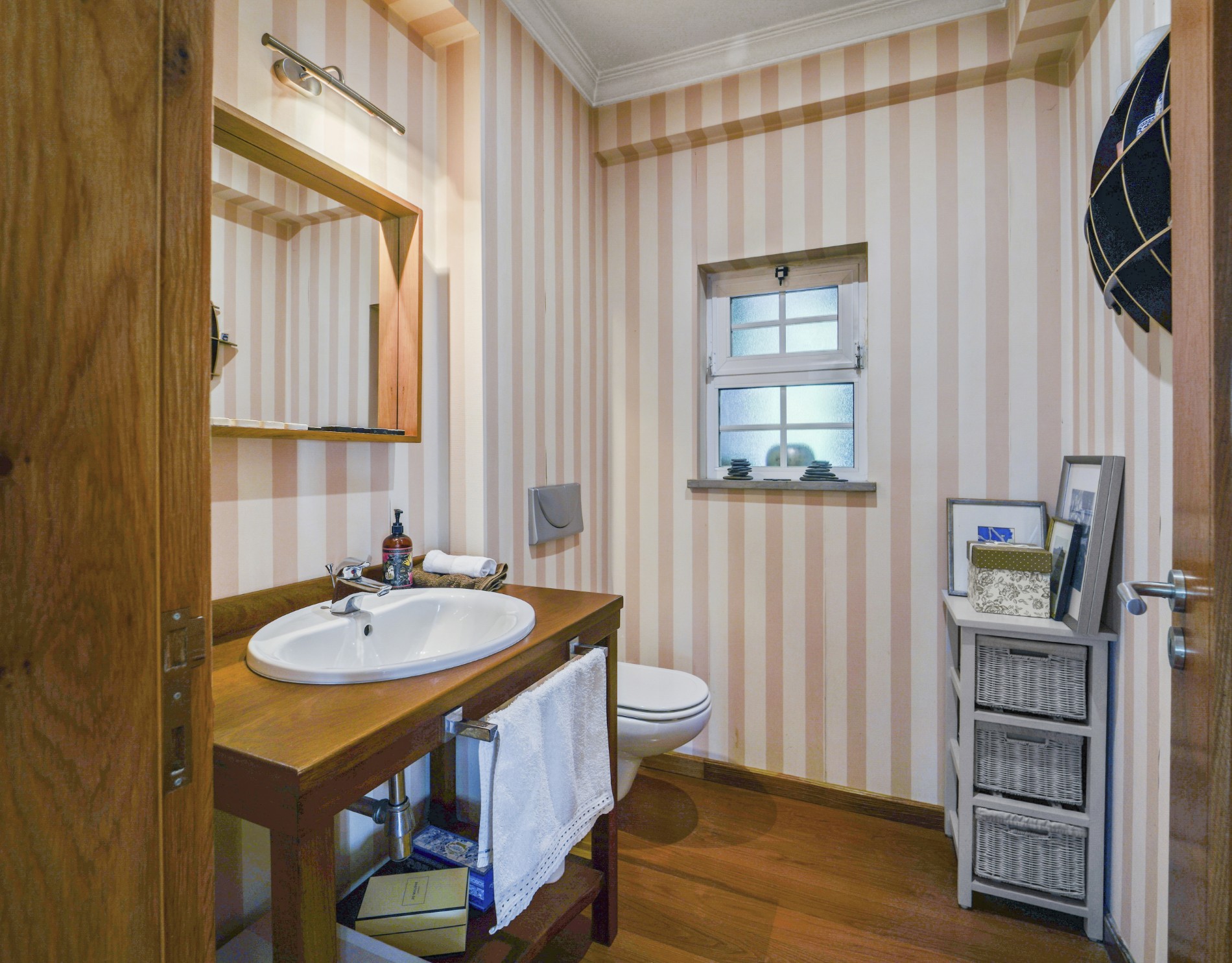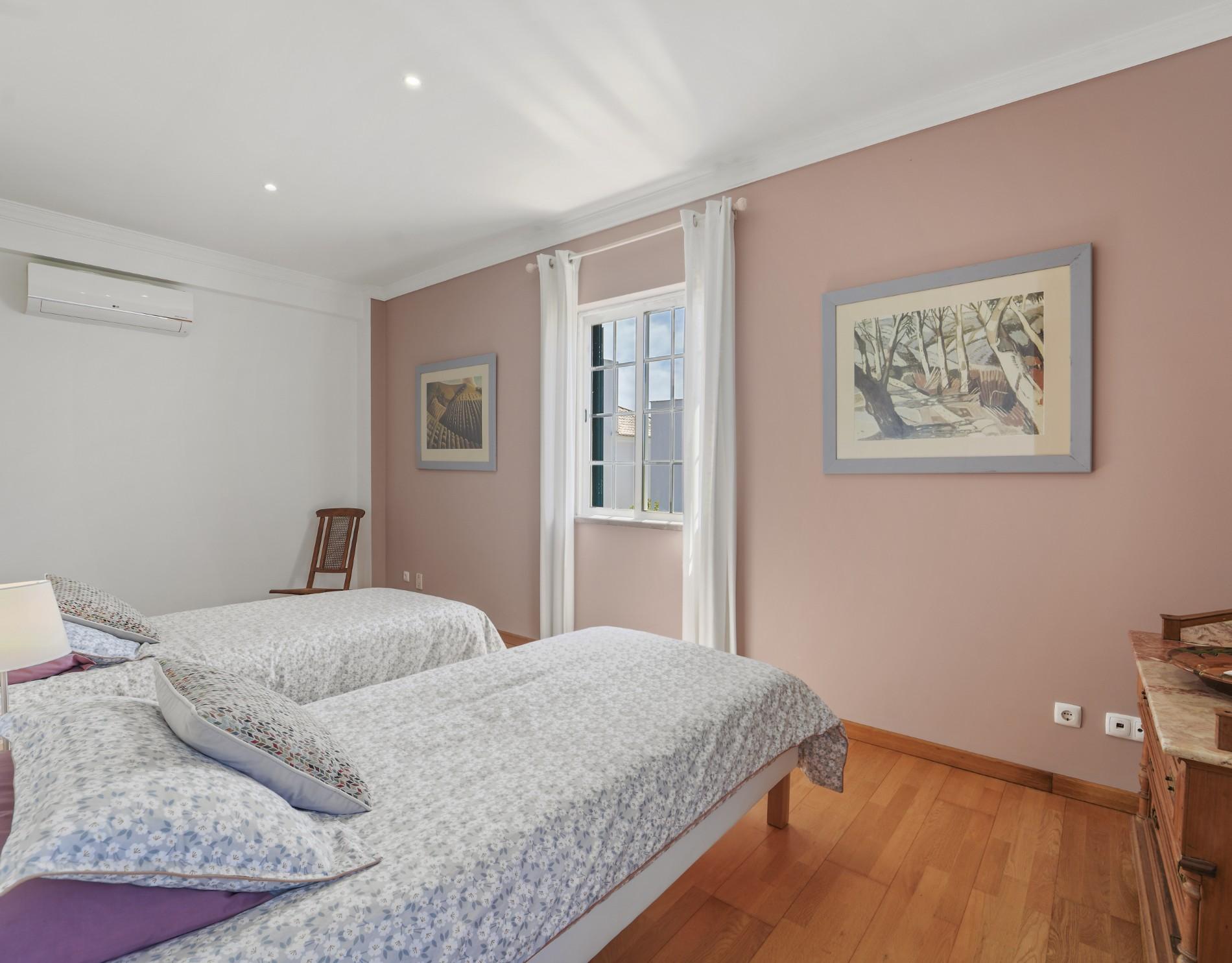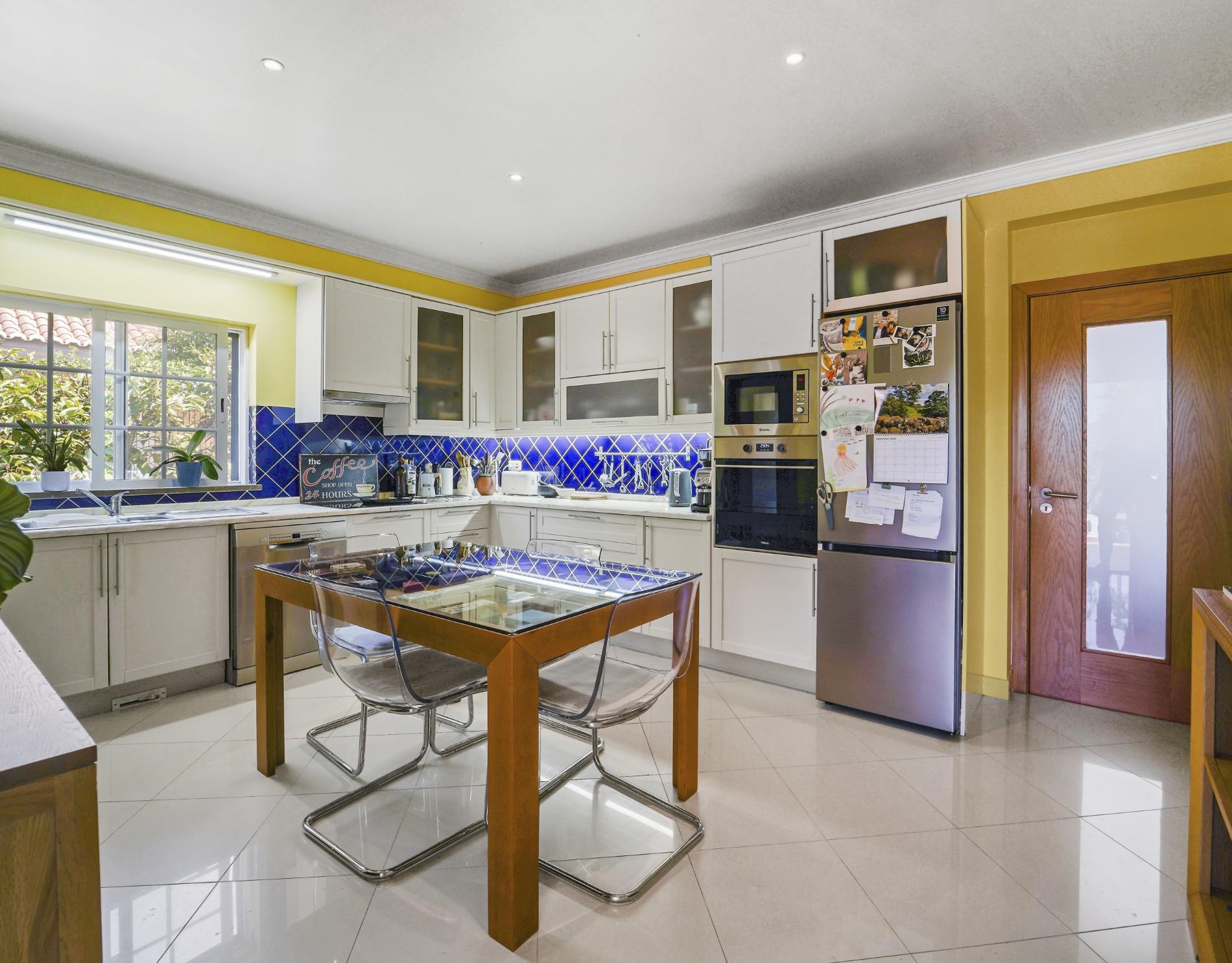 O rés-do-chão inclui uma luminosa sala de estar com lareira e acesso direto ao terraço envolvente. A sala de jantar é valorizada por uma janela de grandes dimensões que proporciona bastante luz natural, enquanto a cozinha equipada, com acesso ao exterior, está ligada a uma lavandaria independente. Ambos os quartos neste piso têm acesso direto ao terraço: a suíte principal dispõe de casa de banho com duche e a suíte de hóspedes oferece uma casa de banho completa. Uma casa de banho social completa este nível.