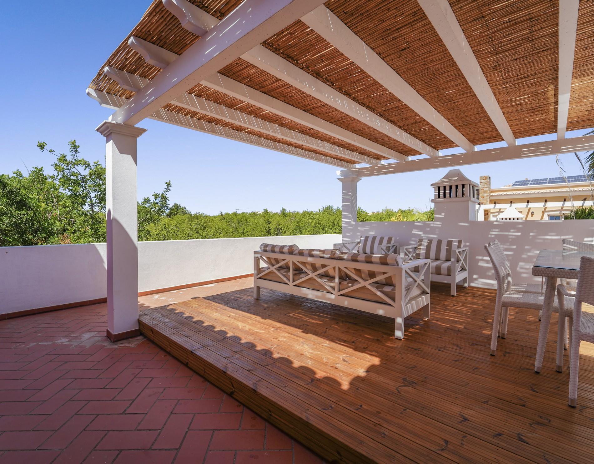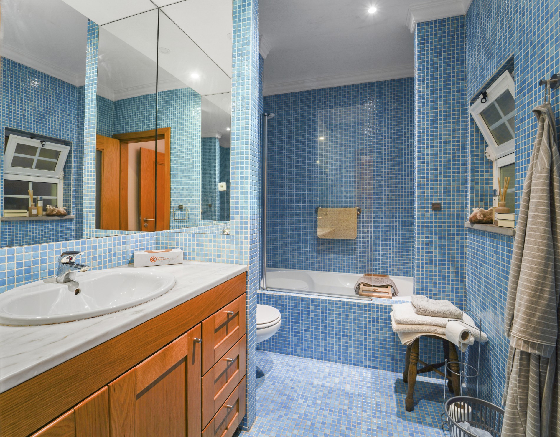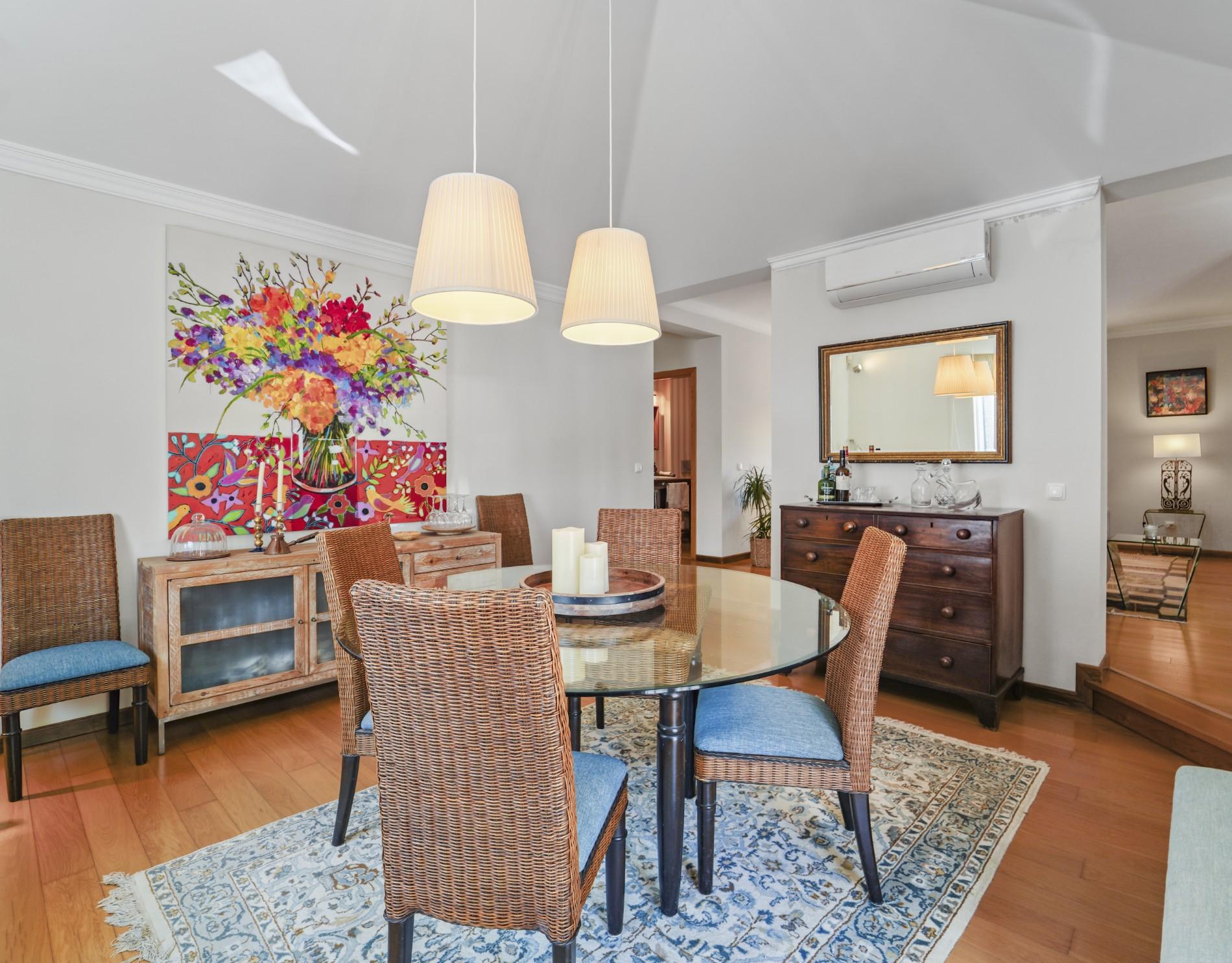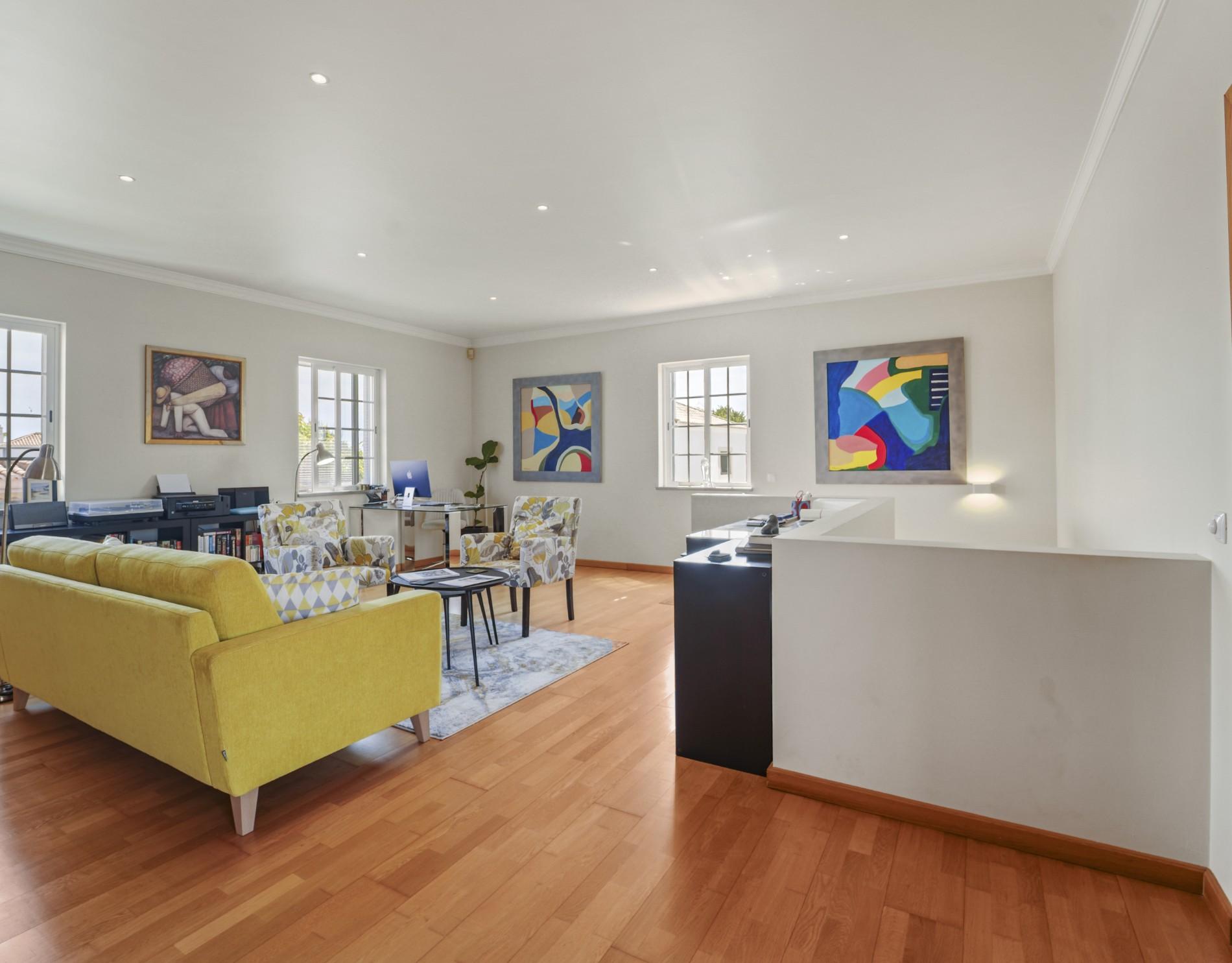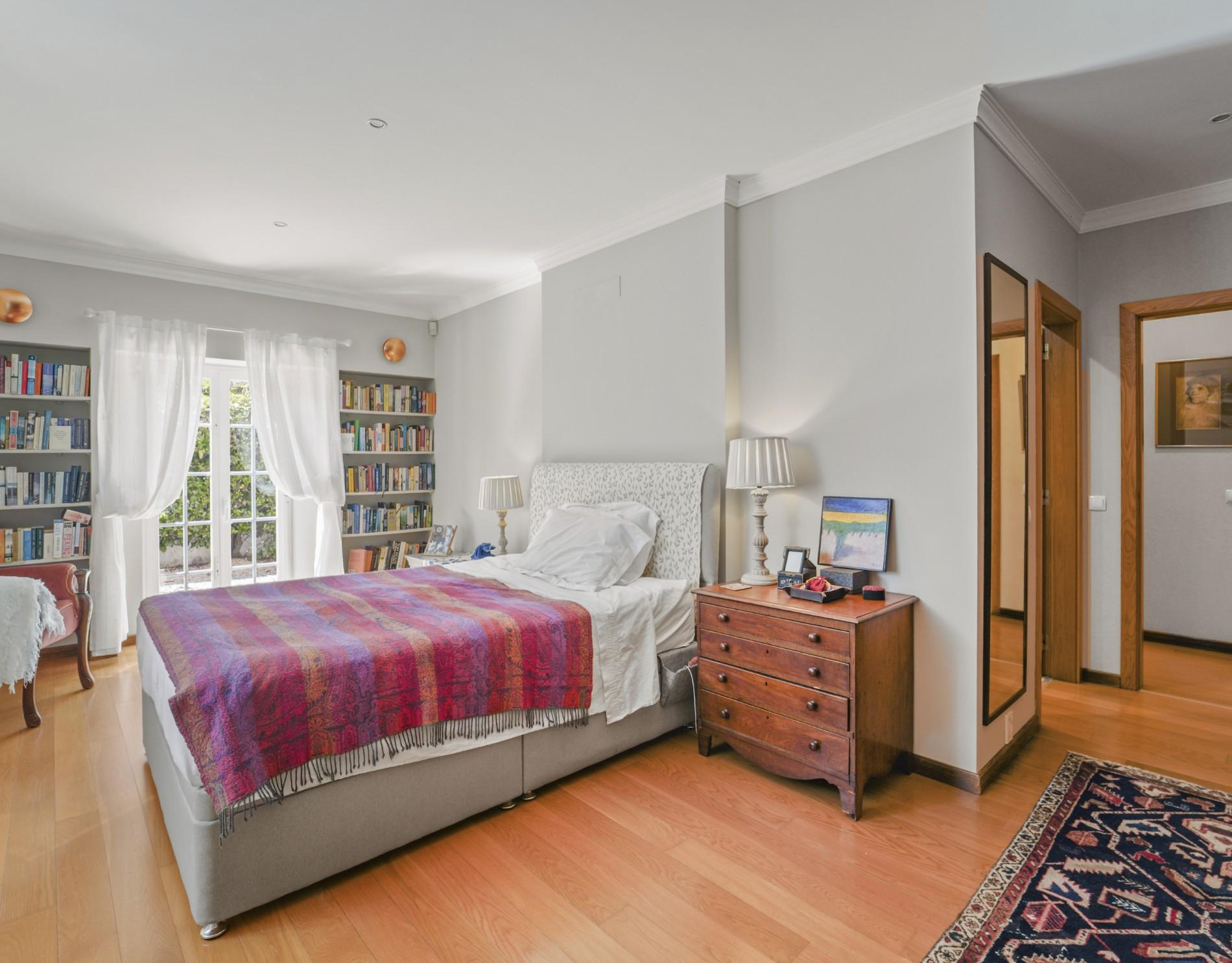 No primeiro piso encontra-se uma espaçosa sala de estar com área de escritório, beneficiando de janelas de dupla orientação que inundam o espaço de luz natural. Esta área abre-se para um grande terraço com pérgola e zona de estar coberta com vista para a zona verde envolvente. O terceiro quarto, também com janelas de dupla orientação, dispõe de uma casa de banho privativa com duche.