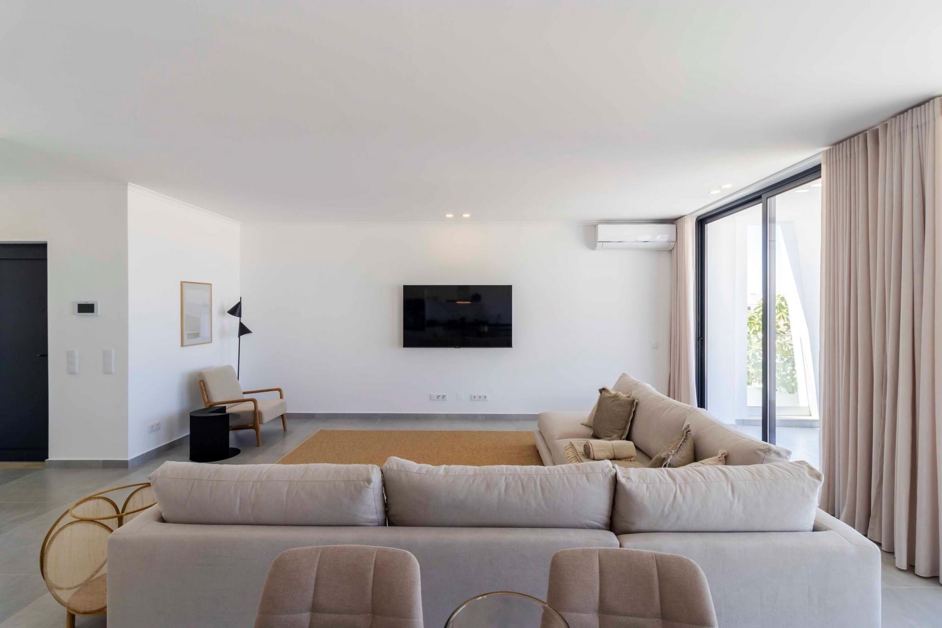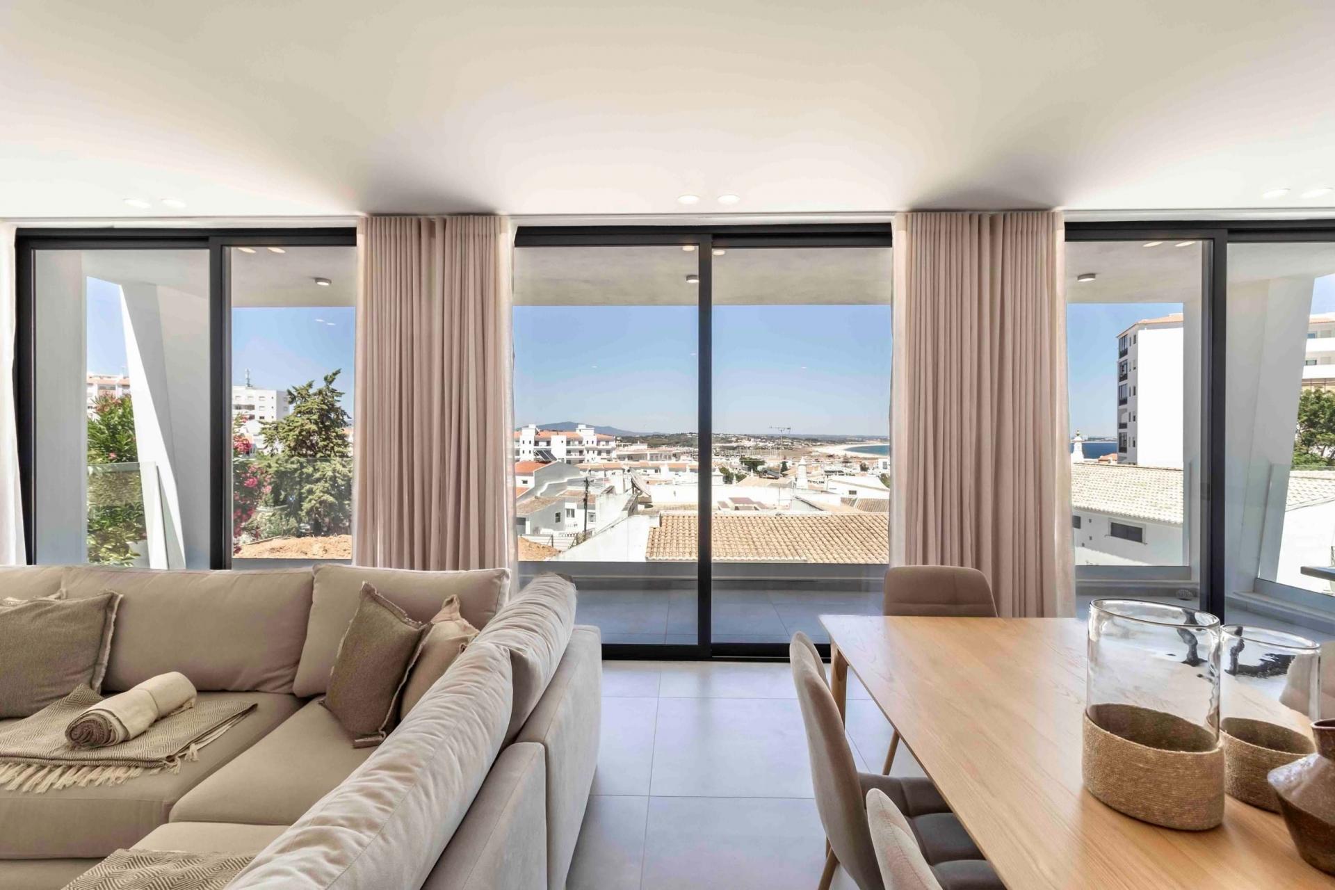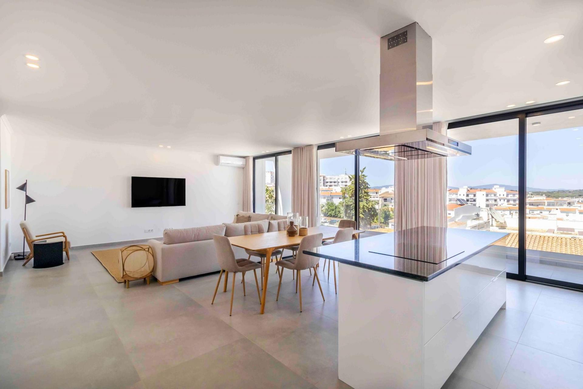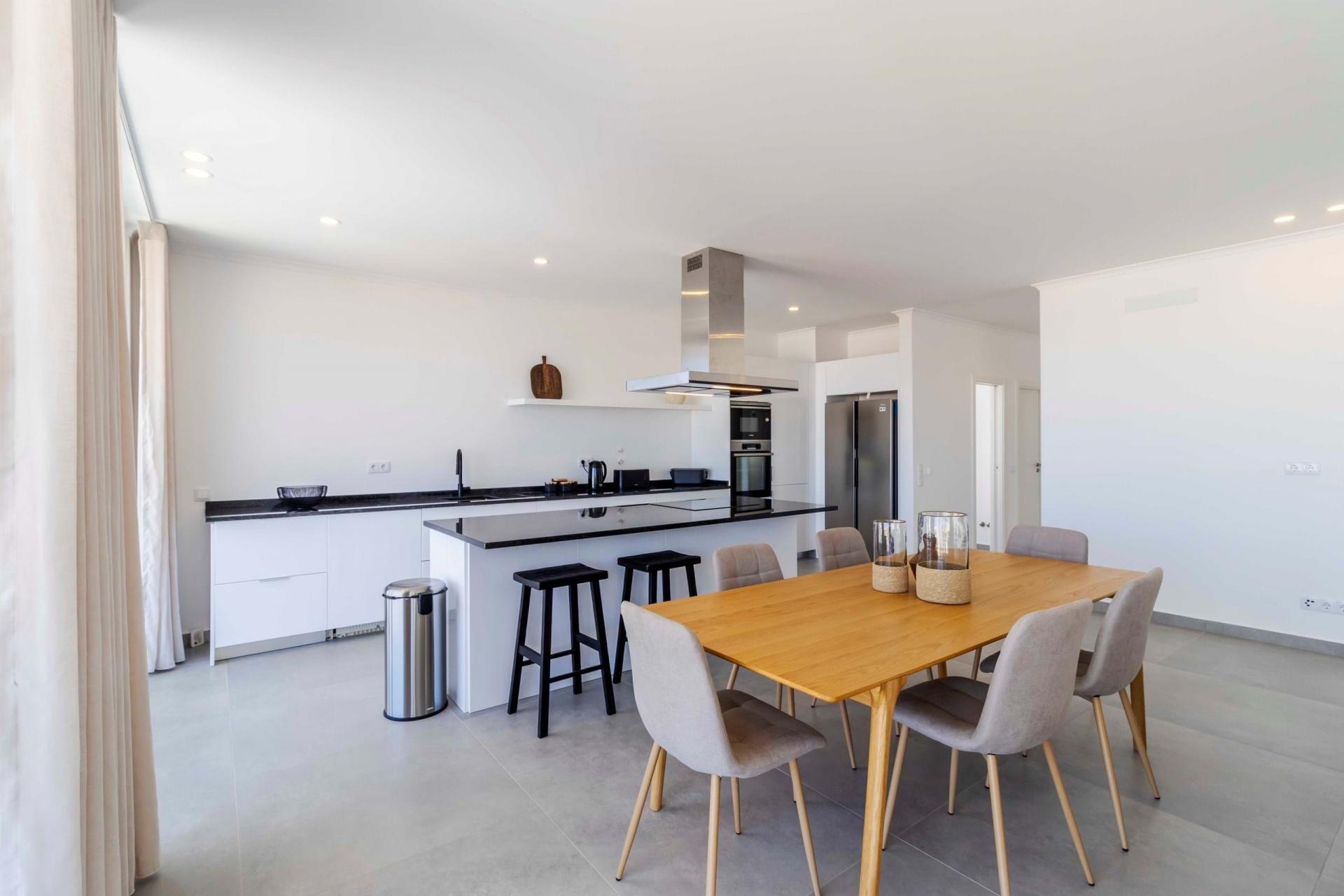 You enter the villa at the upper level where you have a spacious open plan lounge / dining / kitchen, which is fronted by wall-to-wall and floor-to-ceiling glass windows which maximize the view over Lagos and to the beach of Meia Praia.