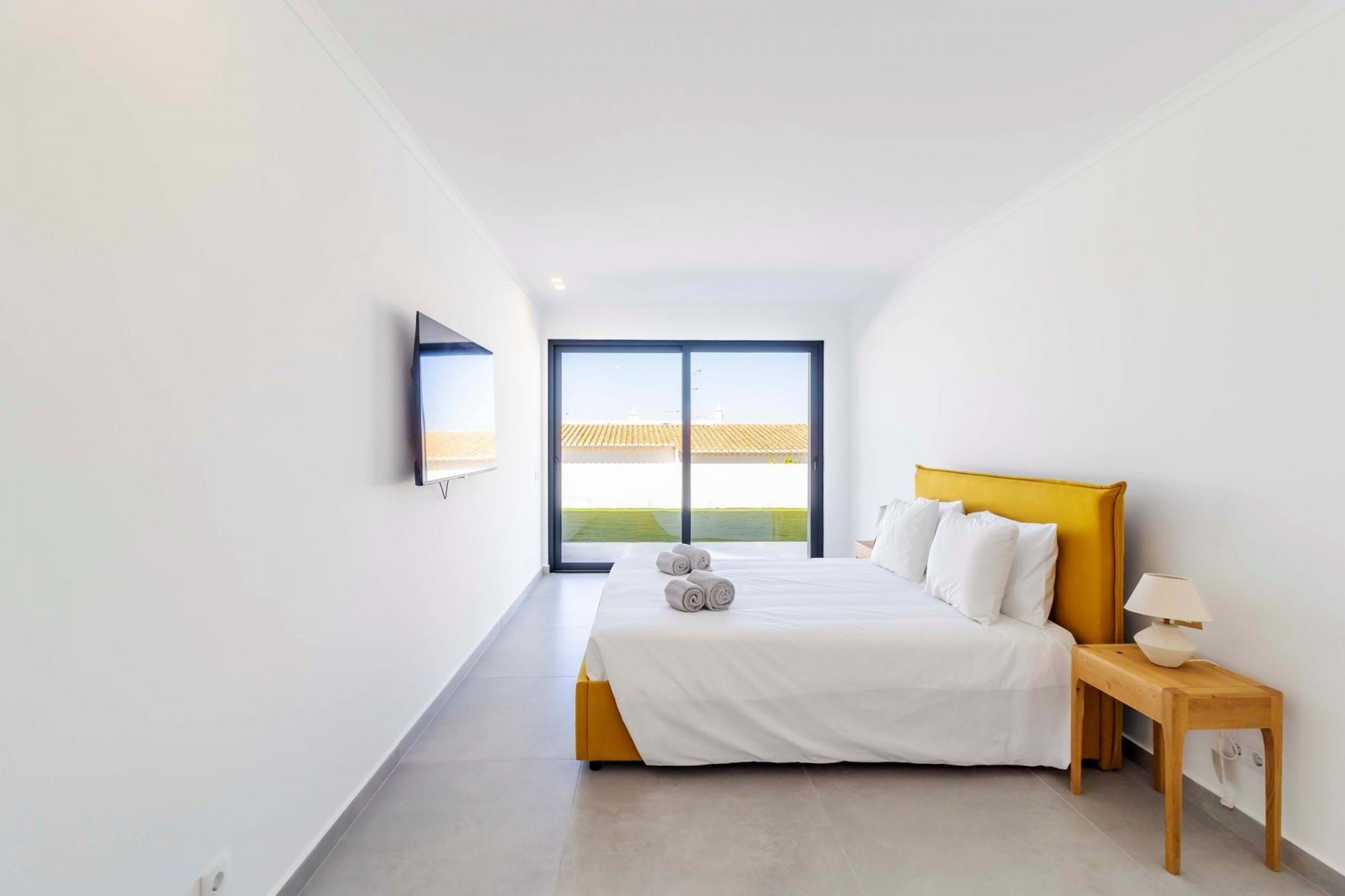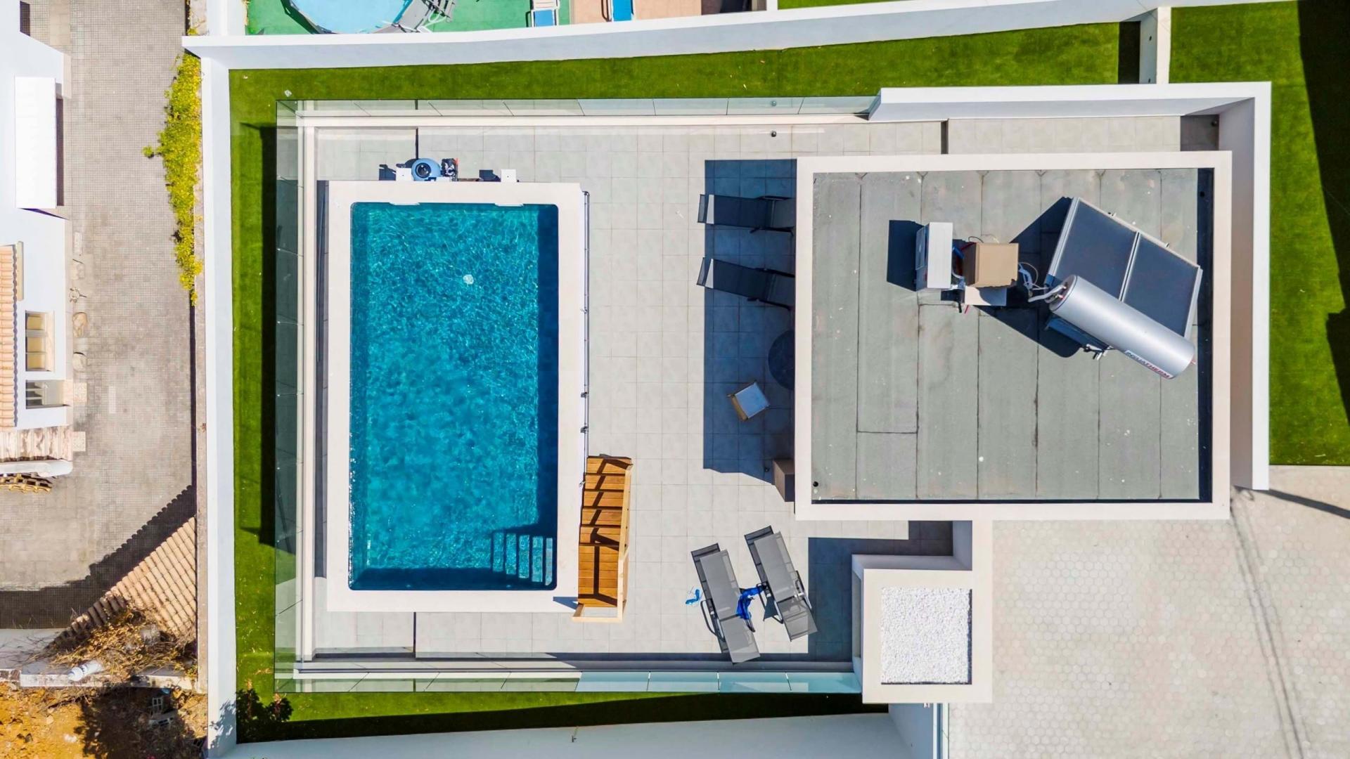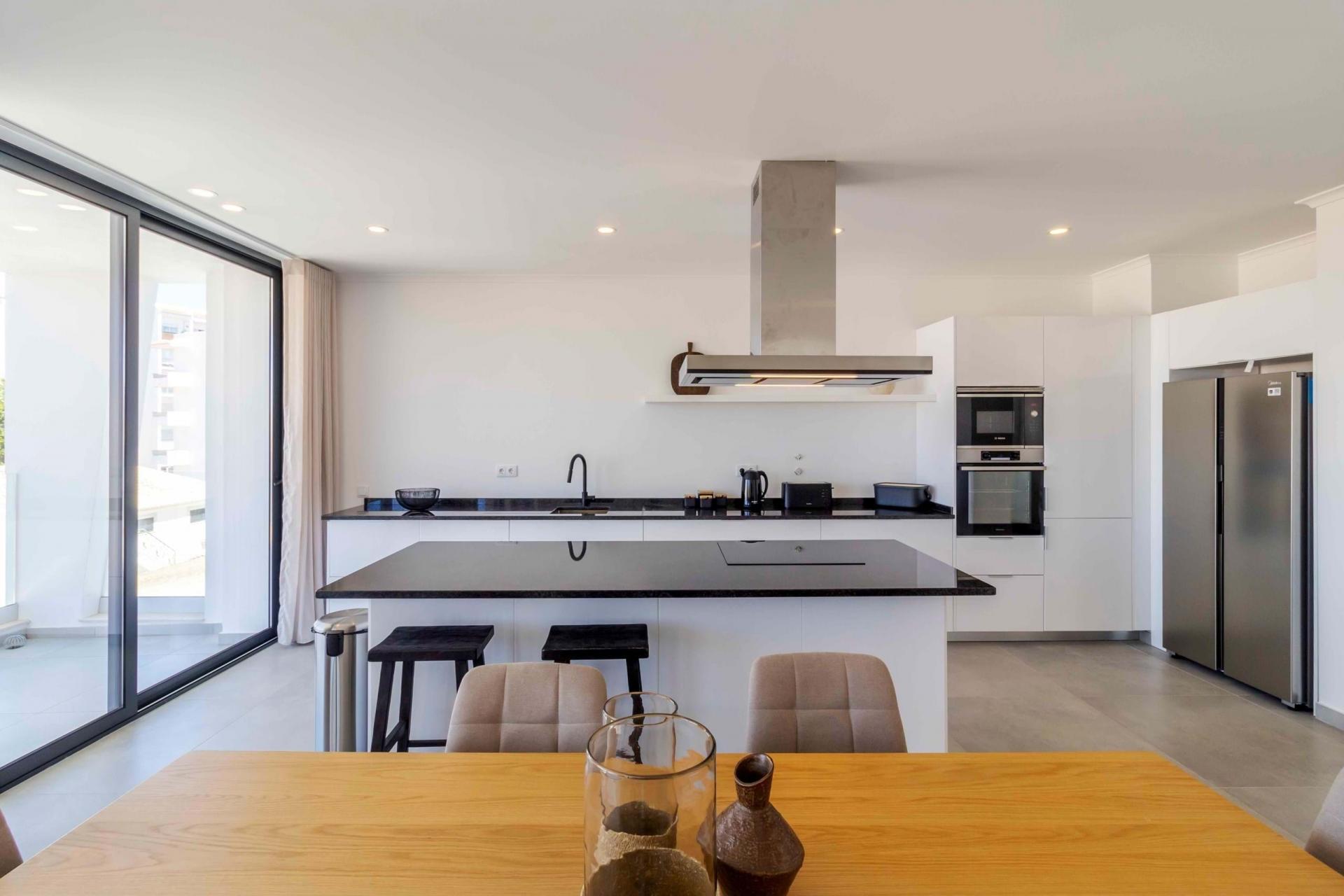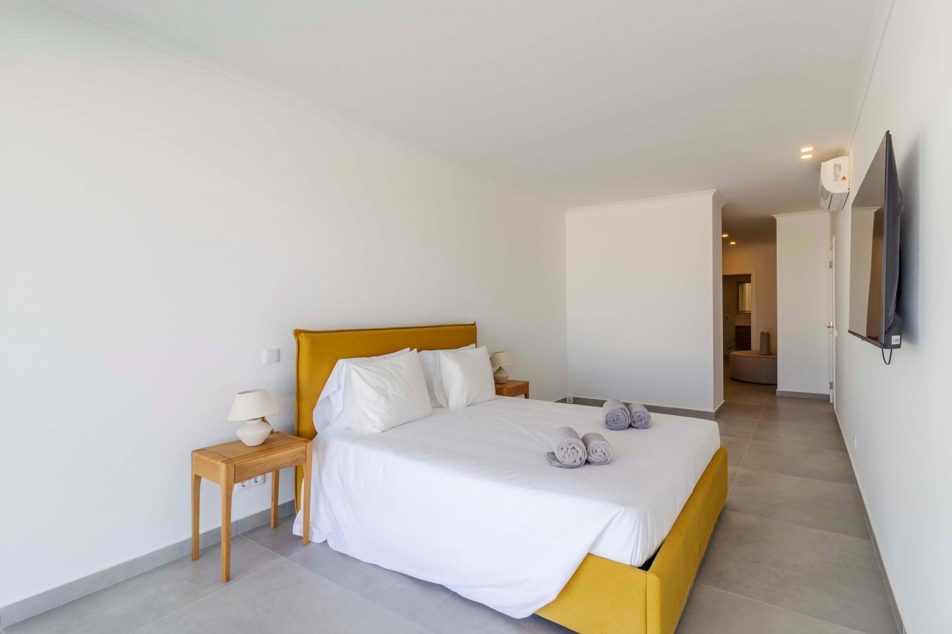 You enter the villa at the upper level where you have a spacious open plan lounge / dining / kitchen, which is fronted by wall-to-wall and floor-to-ceiling glass windows which maximize the view over Lagos and to the beach of Meia Praia.
