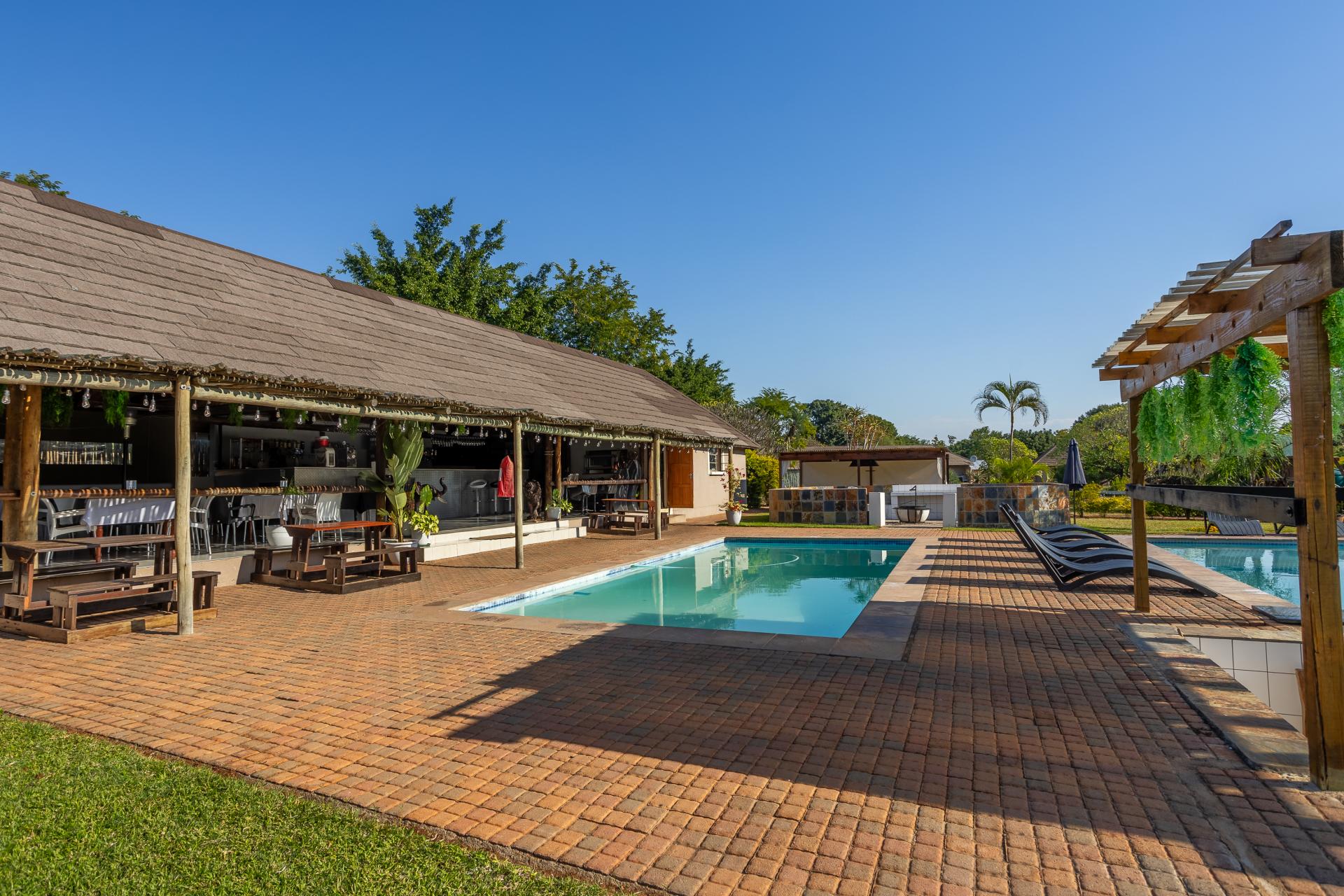 This property offers a fully licensed and operational restaurant and bar serving both in-house guests and the public, along with two swimming pools—a serene riverfront pool with a viewing deck and a family-friendly garden pool. Guests enjoy a sundowner deck overlooking Kruger Park, popular for its stunning sunsets and wildlife views, as well as an elevated wildlife viewing deck for daily sightings of elephants, hippos, and more. Additional amenities include a mini golf course, an outdoor gym set in nature, and a newly added entertainment boma featuring a bar, dining area, bonfire pit, HD TV, and pool table. The grounds are beautifully maintained with secure parking, Wi-Fi, and full staff infrastructure.
