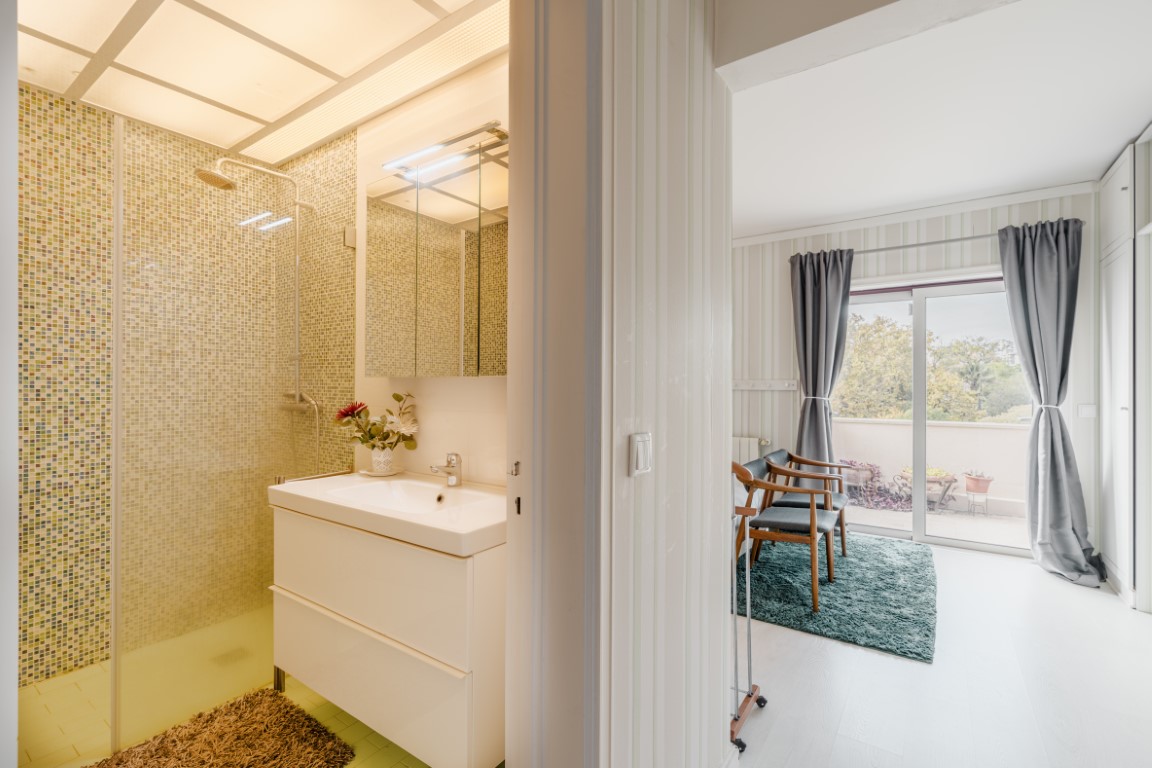 This apartment has recently been renovated, with updates to the electrical and plumbing systems, as well as a modern central heating system. The bathrooms have underfloor heating, providing comfort in all seasons.