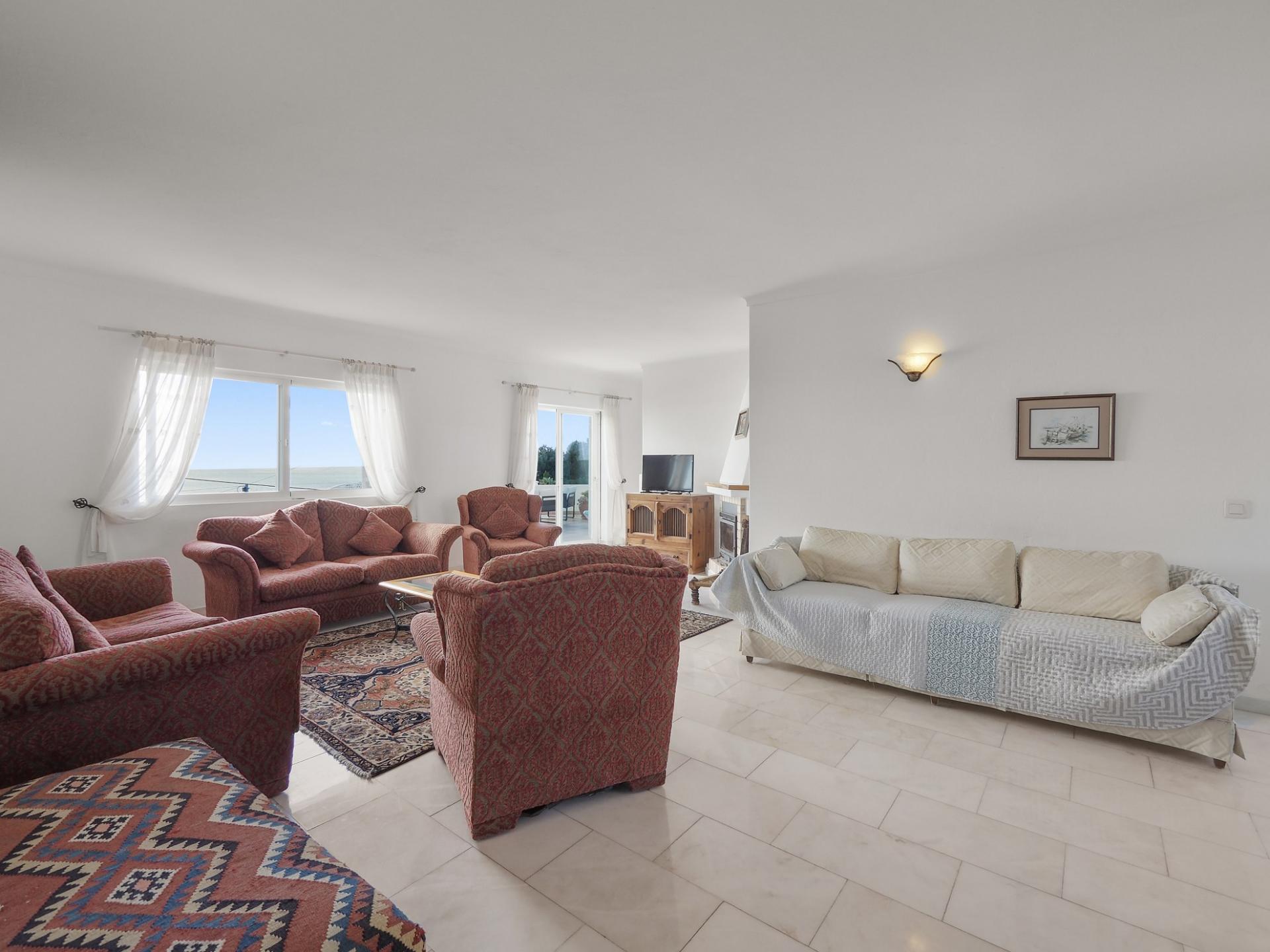 Designed for seamless indoor-outdoor living, the ground floor features an open-plan living, dining, and kitchen area, all opening onto a sun-drenched terrace with a private pool, barbecue area, and breathtaking ocean views. This level also includes a double bedroom ensuite and a twin bedroom with family bathroom. There is another room here currently used a storage room could be a fifth bedroom. Upstairs, a second lounge opens onto a large private terrace, while another double and twin bedroom—each with en-suite bathrooms—boast private balconies with uninterrupted sea views. Adding to its charm, the villa’s back garden provides direct access to Monte Carvoeiro’s selection of restaurants and bars. On the lower level there is a double garage and parking space with extra storage.