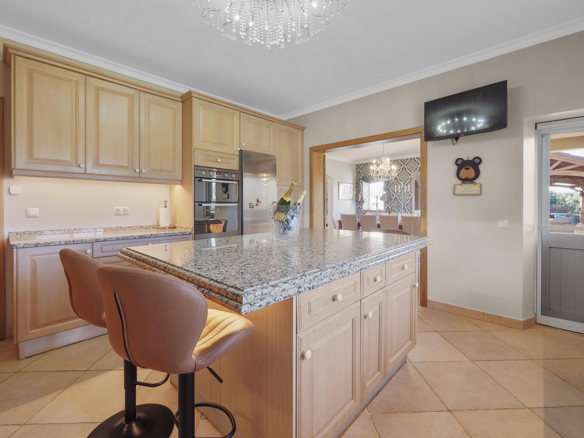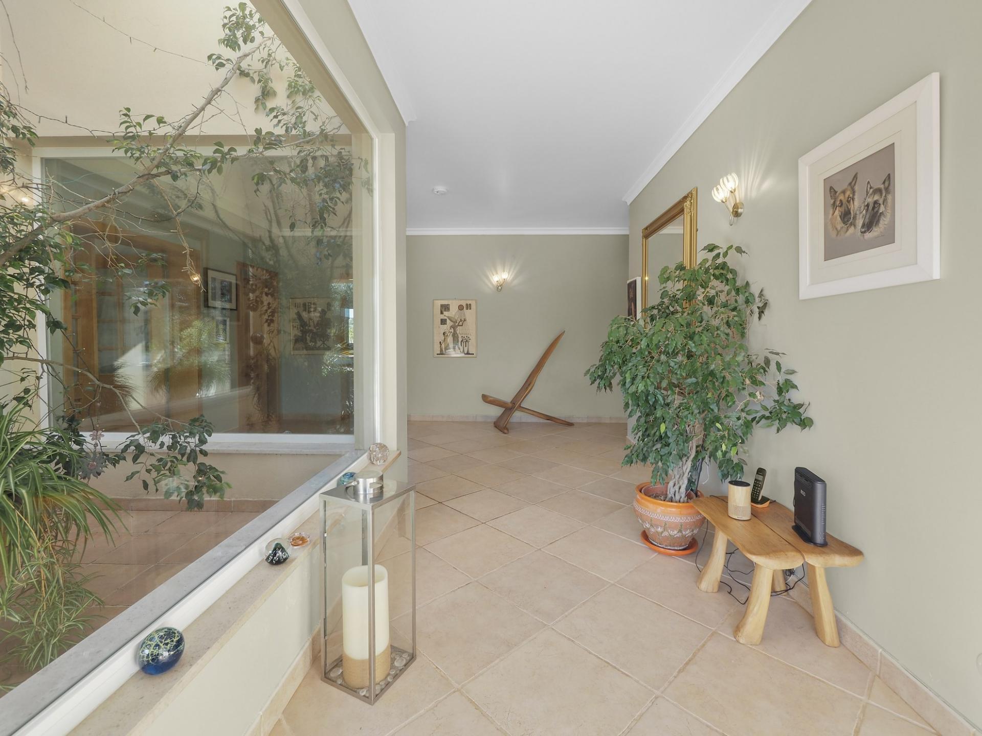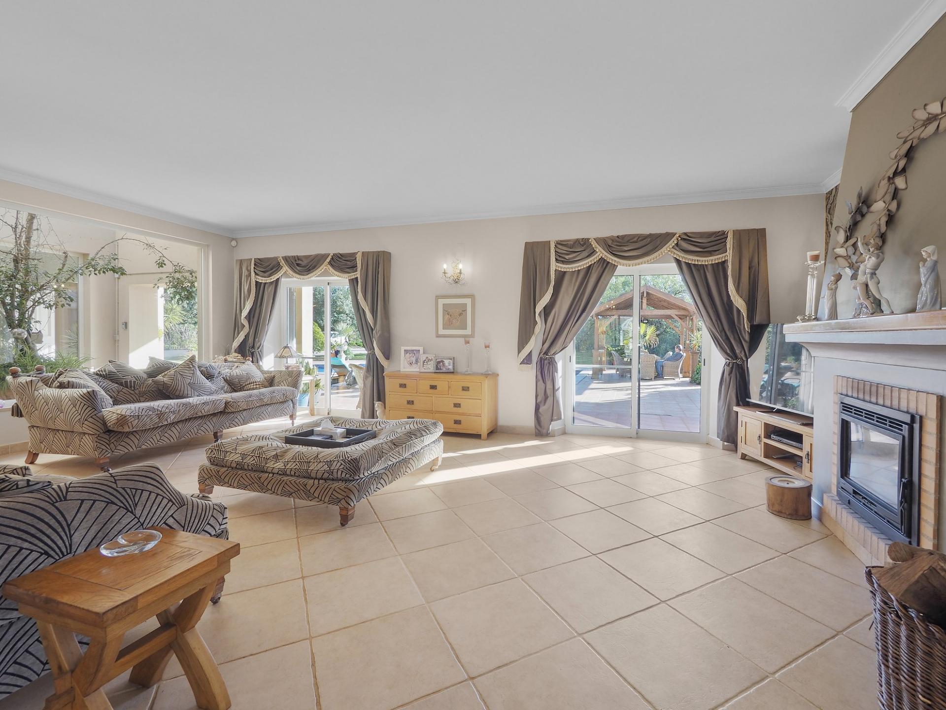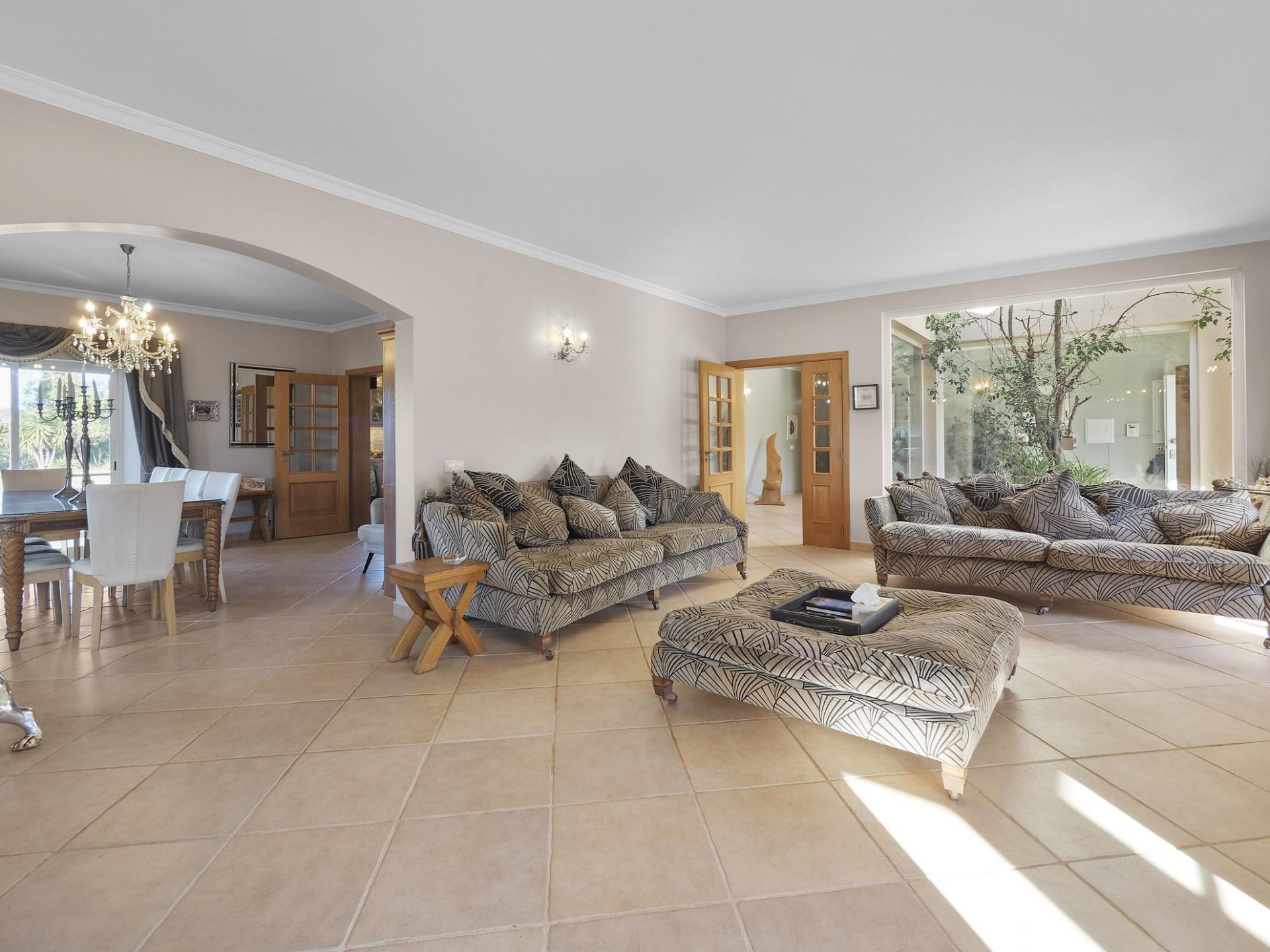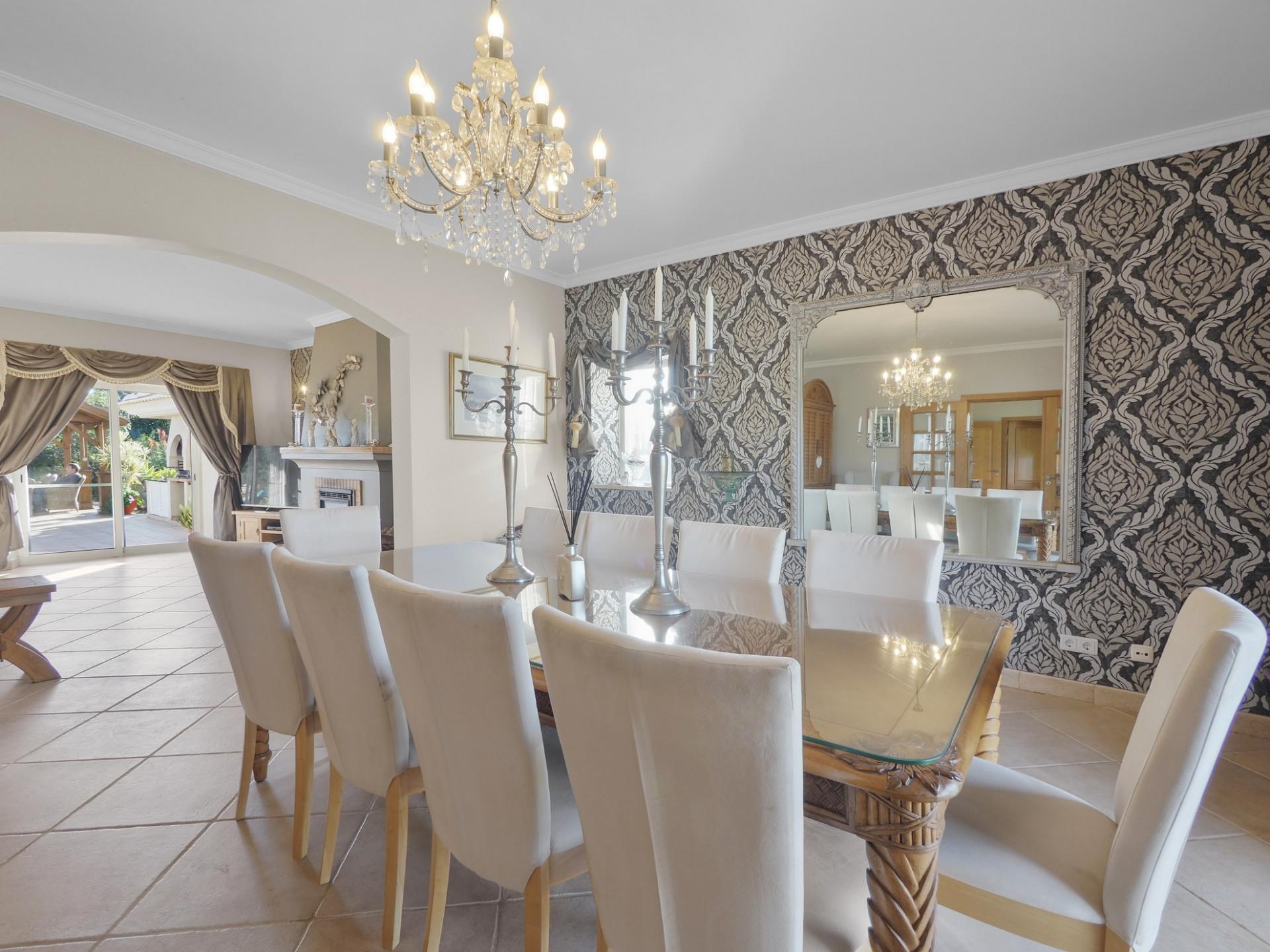 Ein gepflegter Zufahrtsweg aus Kies führt zur Villa, die mit einer lichtdurchfluteten, nach Süden ausgerichteten Lounge mit Kamin und direktem Zugang zur Poolterrasse begeistert. Das großzügige Esszimmer eignet sich ideal für gesellige Abende, während die voll ausgestattete Küche mit zentraler Kochinsel, Weinkühler und separatem Hauswirtschaftsraum höchsten Wohnkomfort bietet.