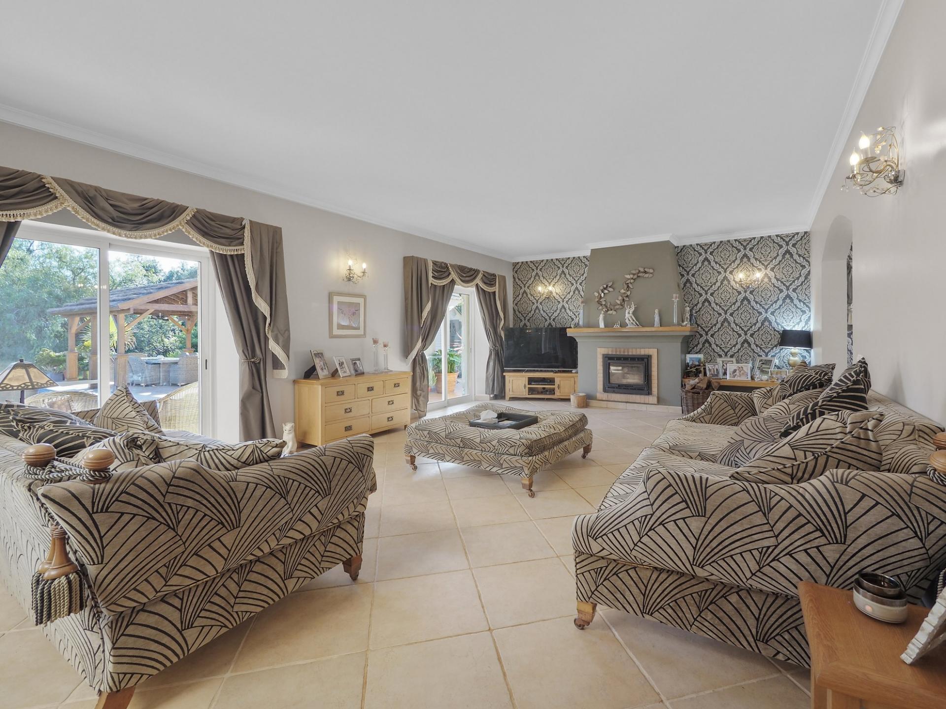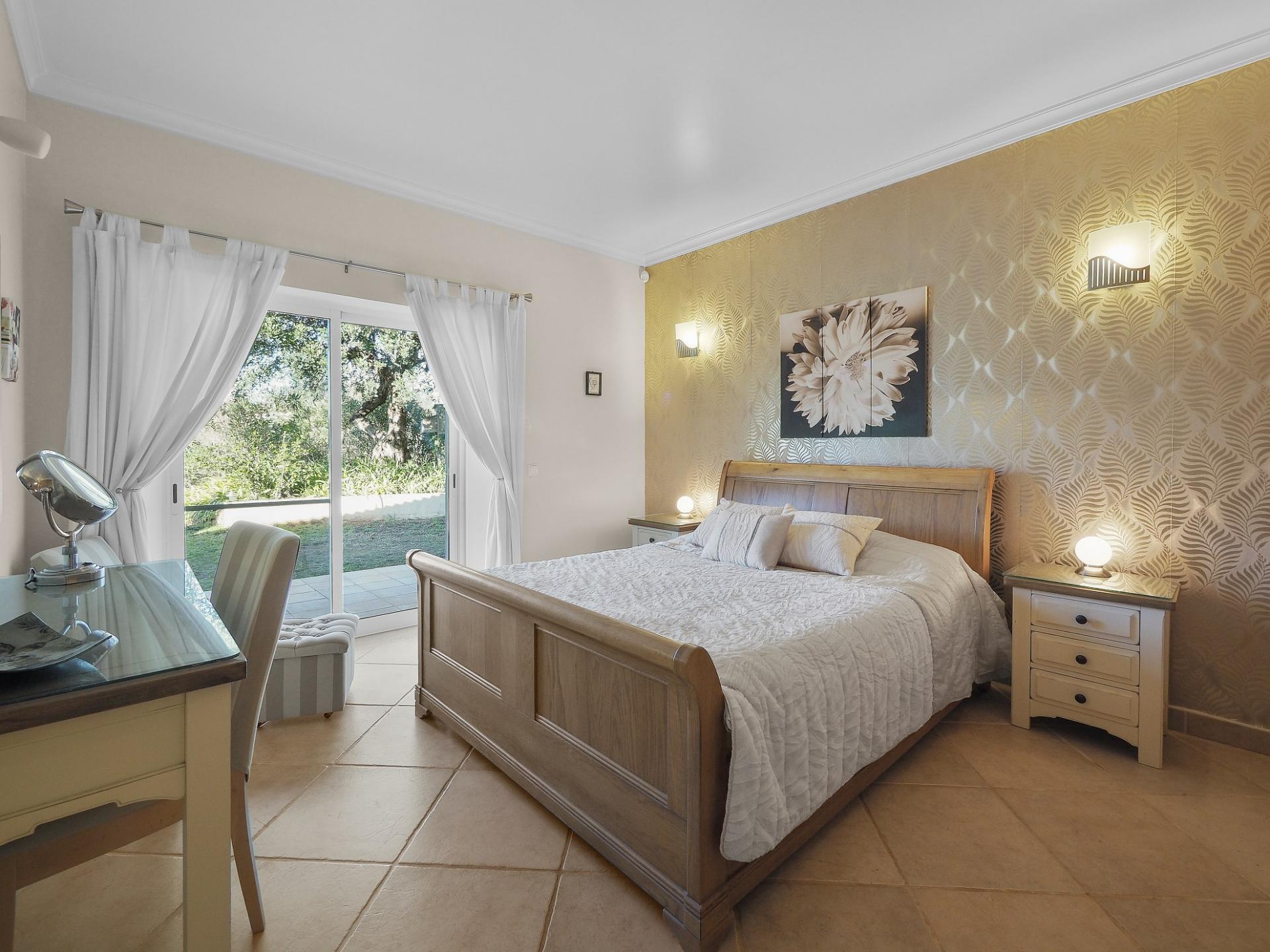 Uma acolhedora entrada conduz à propriedade, onde se encontra uma luminosa sala de estar virada a sul, equipada com lareira e portas deslizantes com acesso ao terraço da piscina. A espaçosa sala de jantar é perfeita para receber convidados, enquanto a cozinha totalmente equipada, com ilha central, frigorífico para vinhos e lavandaria, alia funcionalidade a um design sofisticado. A suíte principal dispõe de casa de banho privada com duche, enquanto 2 quartos adicionais contam com roupeiros encastrados, partilham uma casa de banho e oferecem belas vistas para o jardim. Um quarto extra pode ser utilizado como escritório ou espaço adicional, conferindo versatilidade à casa. Existe ainda uma licença de construção aprovada para a adição de mais casas de banho privadas, caso necessário ou desejado.