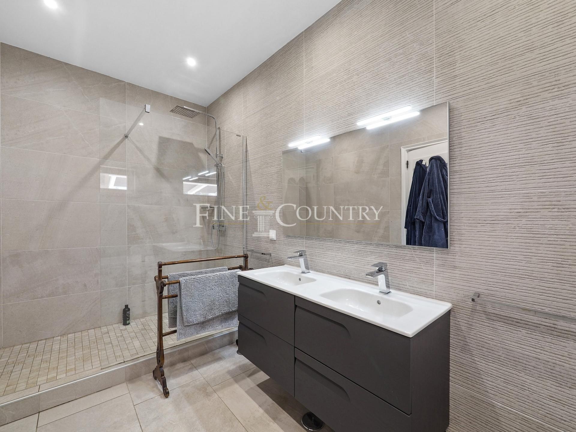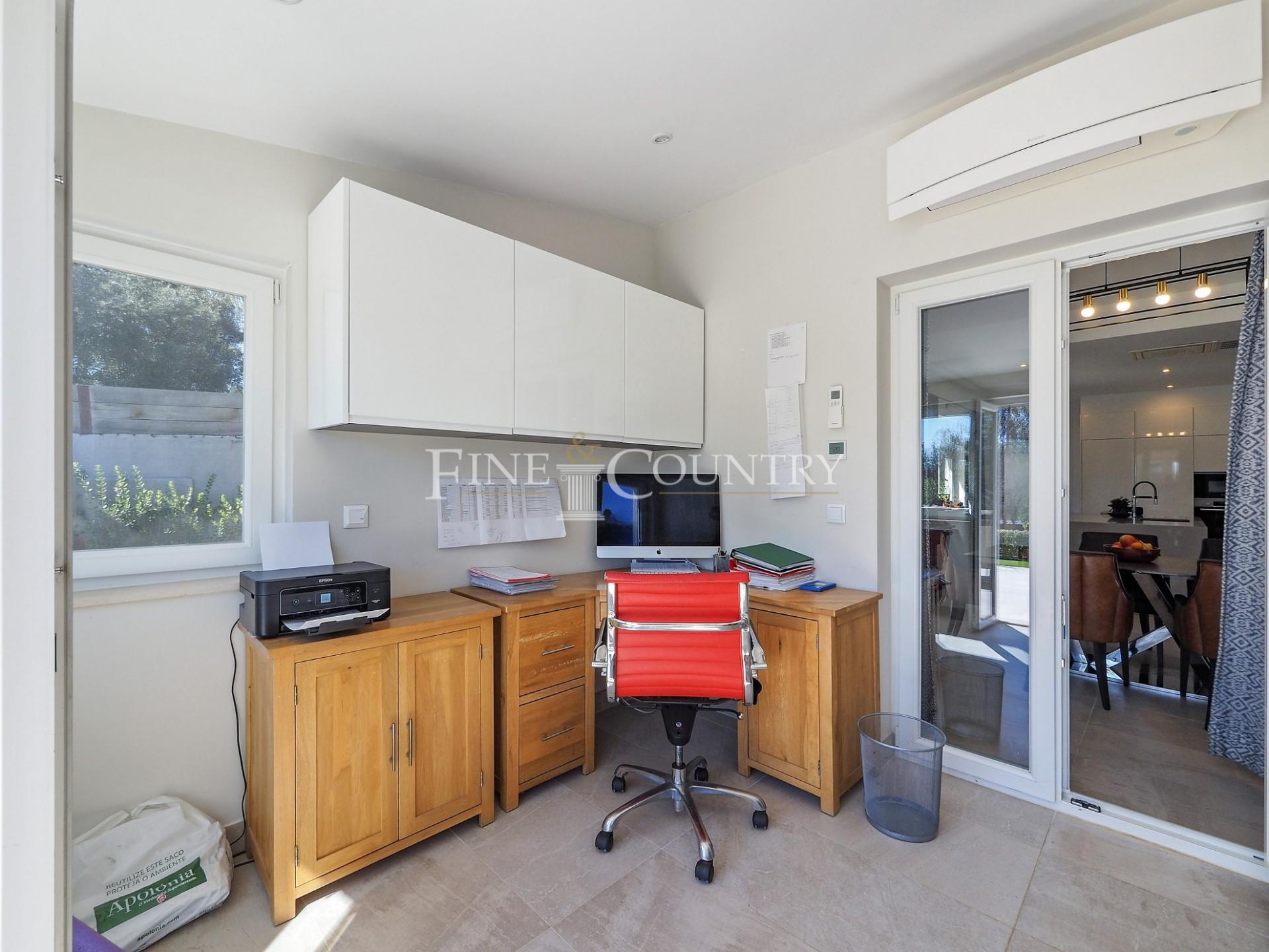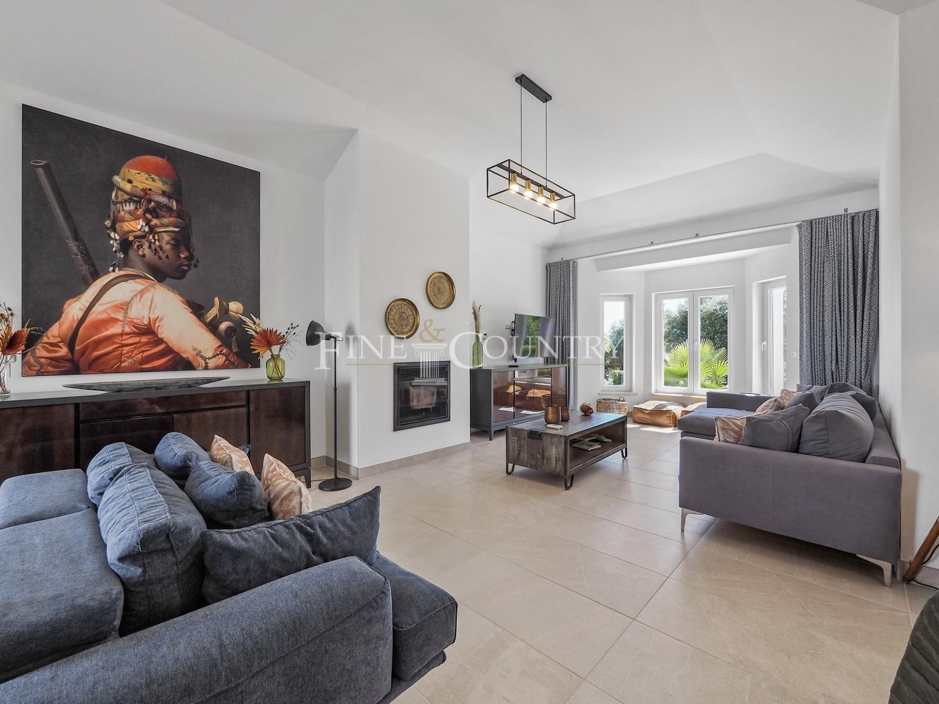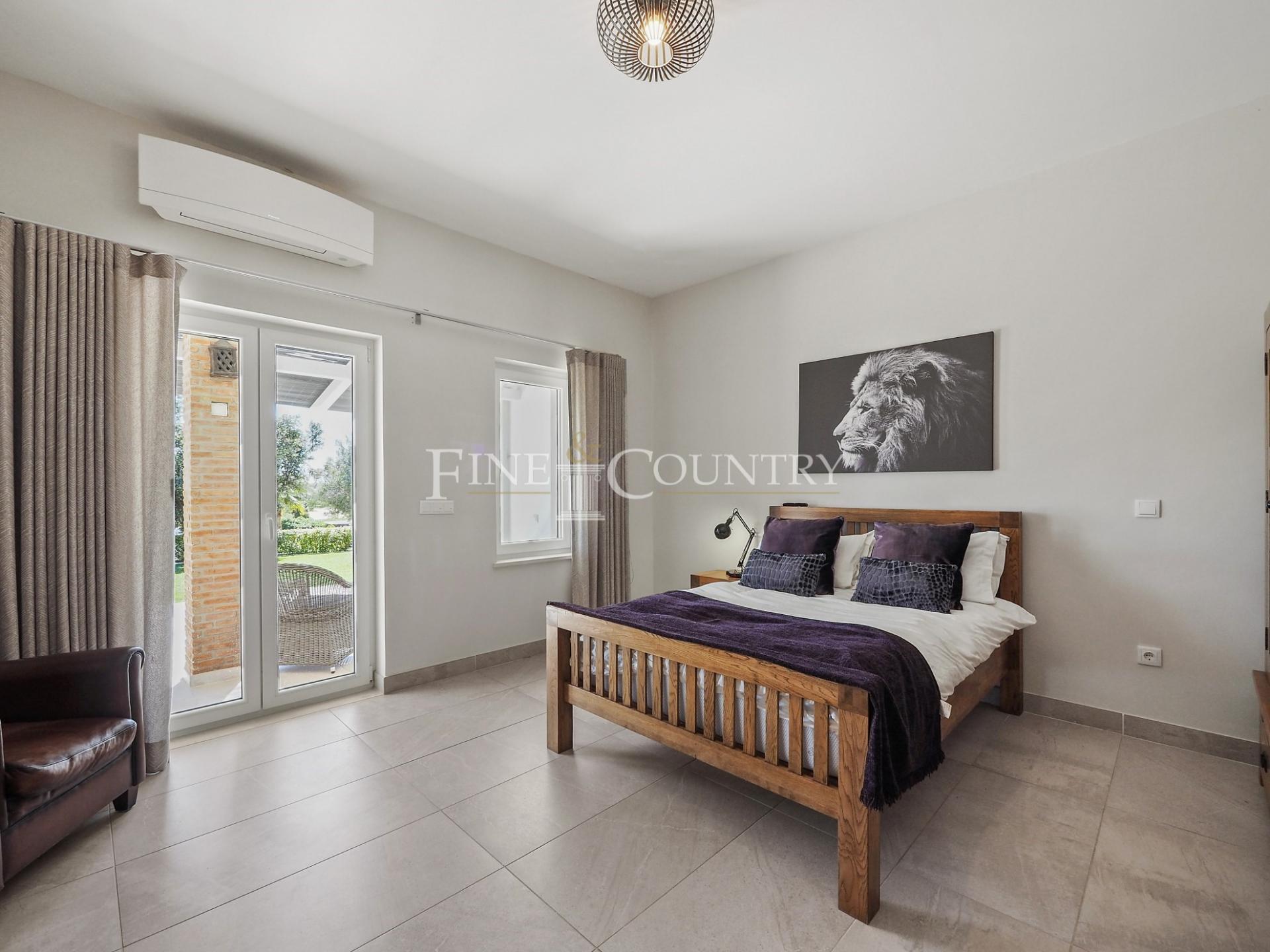 The outdoor entertainment space is magnificent with an outdoor kitchen and BBQ area, kids playground and a Pétanque pitch, which is in the shade of a carob tree. The property has four double bedrooms all en-suite, a large living dining area and a modern open-plan kitchen with larder and utility area. Entrance to the villa is via stylish courtyard with a fountain. The property also features underfloor heating/cooling, a small studio guesthouse, ideal for visiting family and friends, large outdoor kitchen and built in bbq area. Located just a short dive to the international schools and the beaches.
