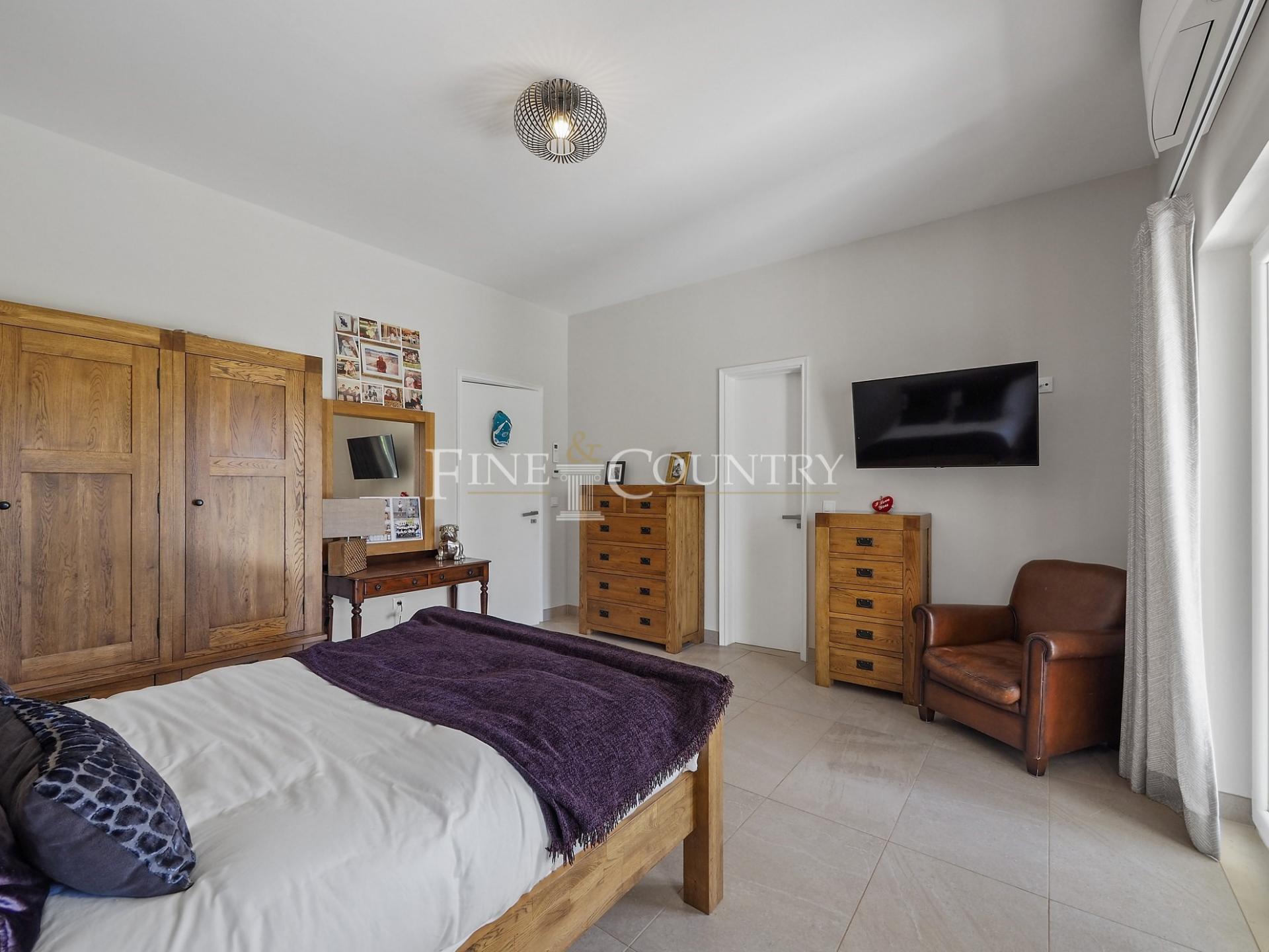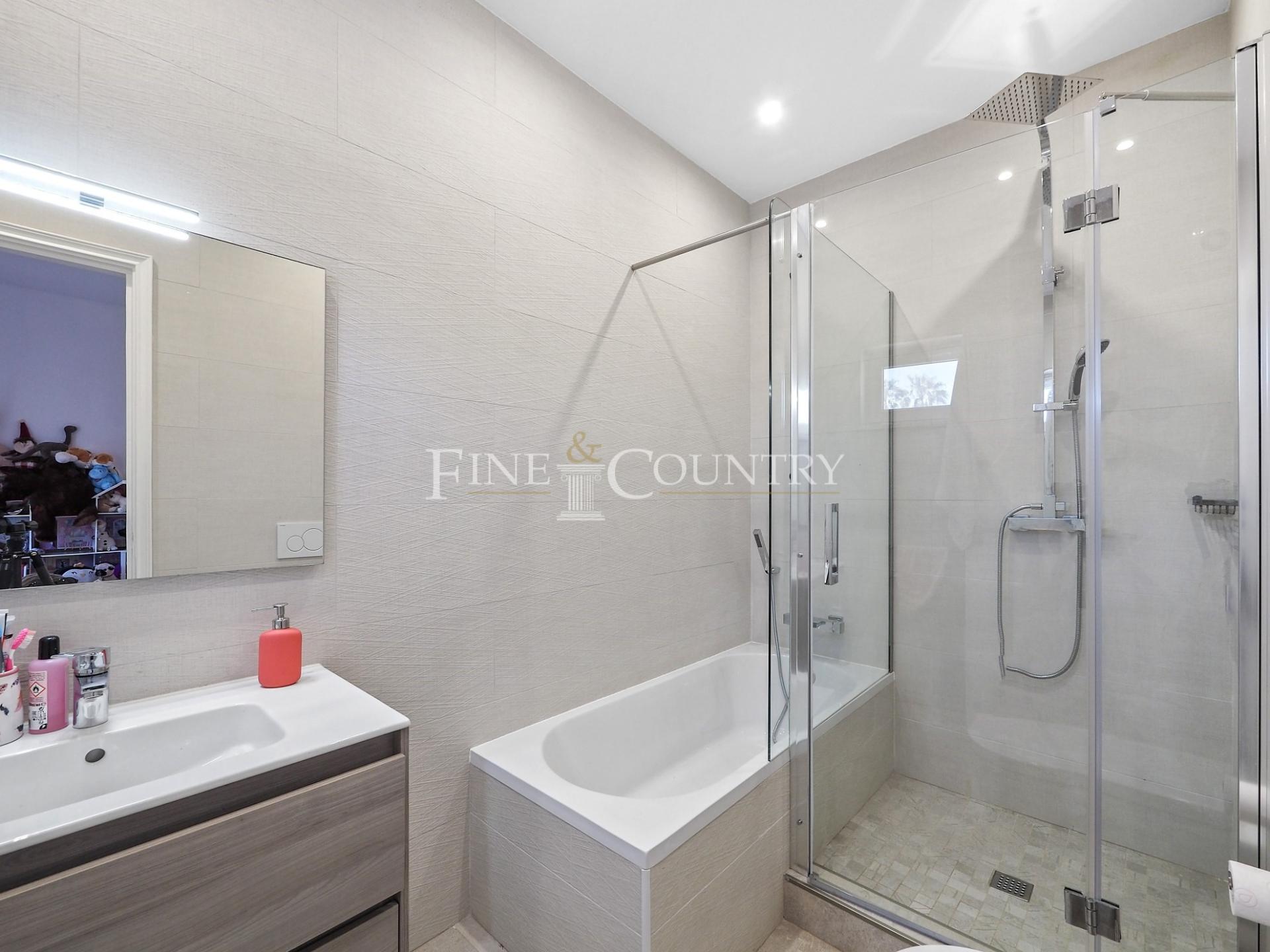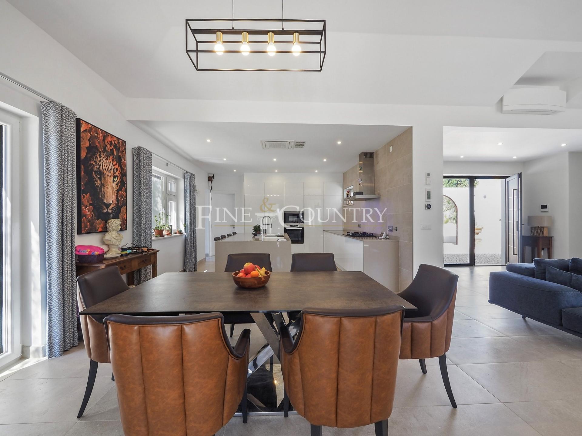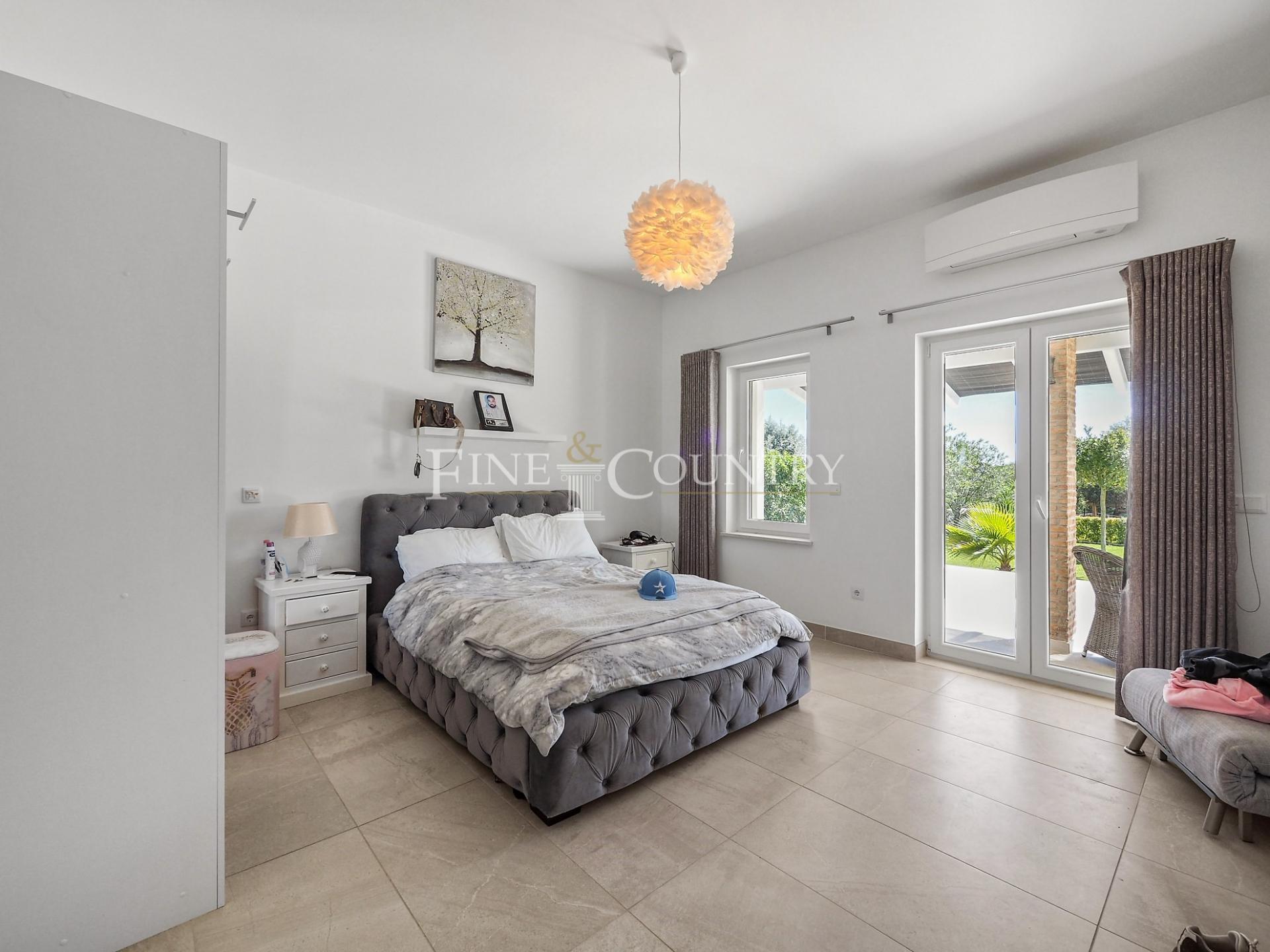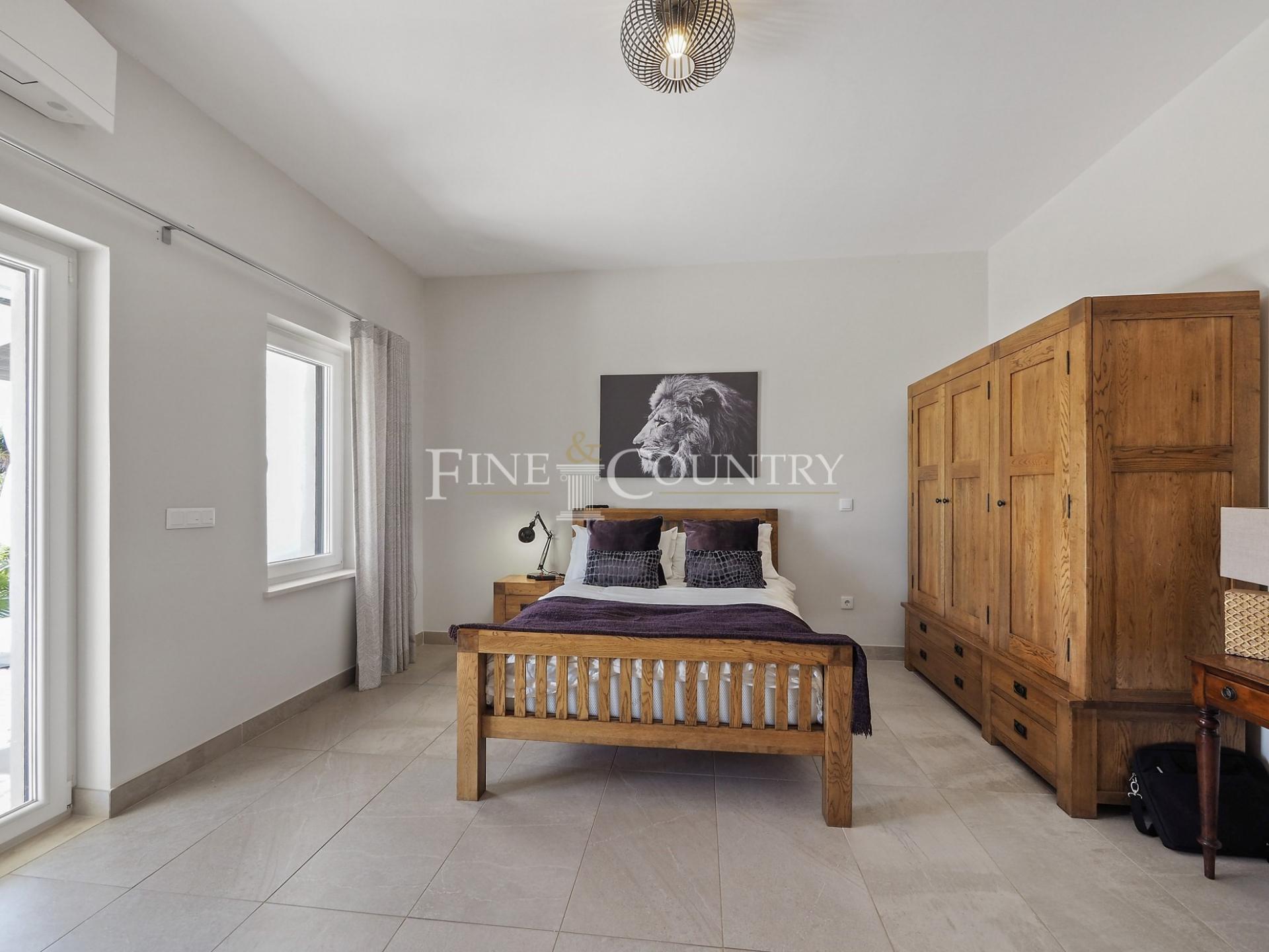 The outdoor entertainment space is magnificent with an outdoor kitchen and BBQ area, kids playground and a Pétanque pitch, which is in the shade of a carob tree. The property has four double bedrooms all en-suite, a large living dining area and a modern open-plan kitchen with larder and utility area. Entrance to the villa is via stylish courtyard with a fountain. The property also features underfloor heating/cooling, a small studio guesthouse, ideal for visiting family and friends, large outdoor kitchen and built in bbq area. Located just a short dive to the international schools and the beaches.
