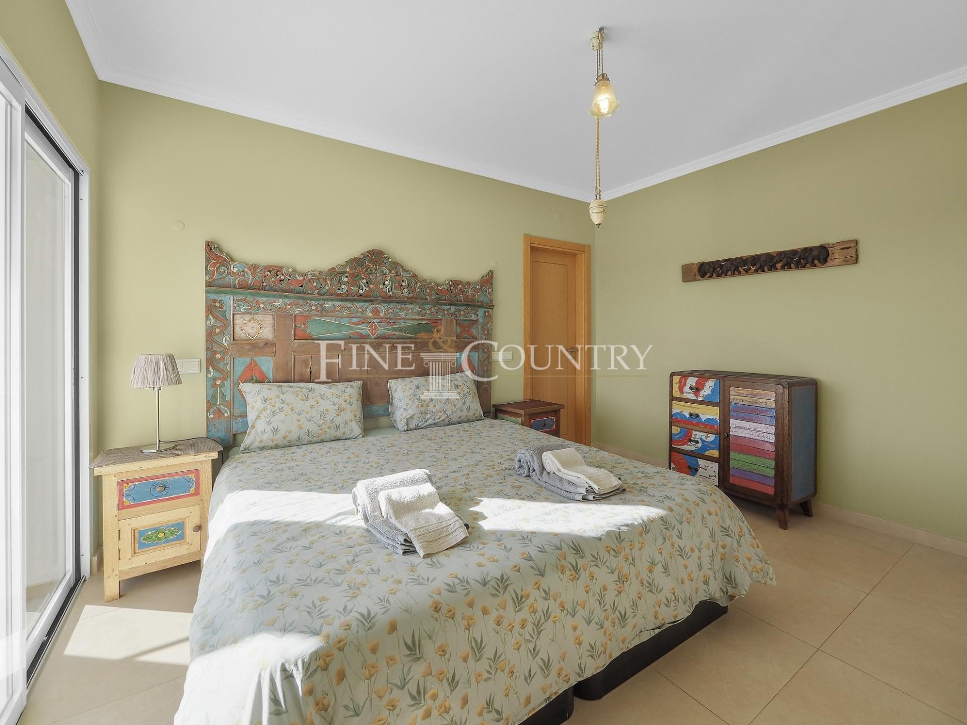 A moradia encontra-se inserida num terreno de 770 m² virado a sul, com vista mar. Foi projetada pensando na vida moderna, composta por quarto principal com casa de banho privada no nível superior - o mesmo andar da cozinha totalmente equipada e da área de jantar. Este piso inclui ainda um amplo terraço com vista para a costa, perfeito para refeições ao ar livre ou simplesmente para apreciar o pôr do sol.