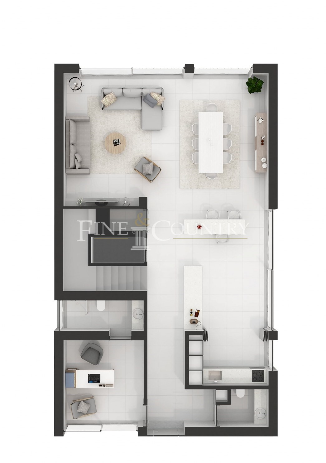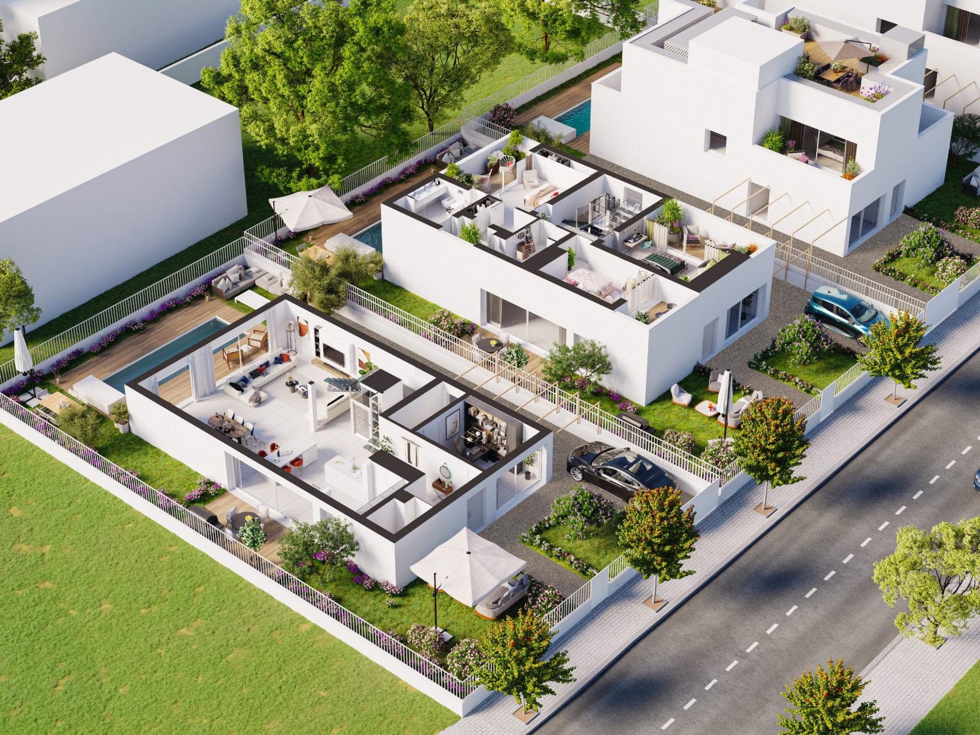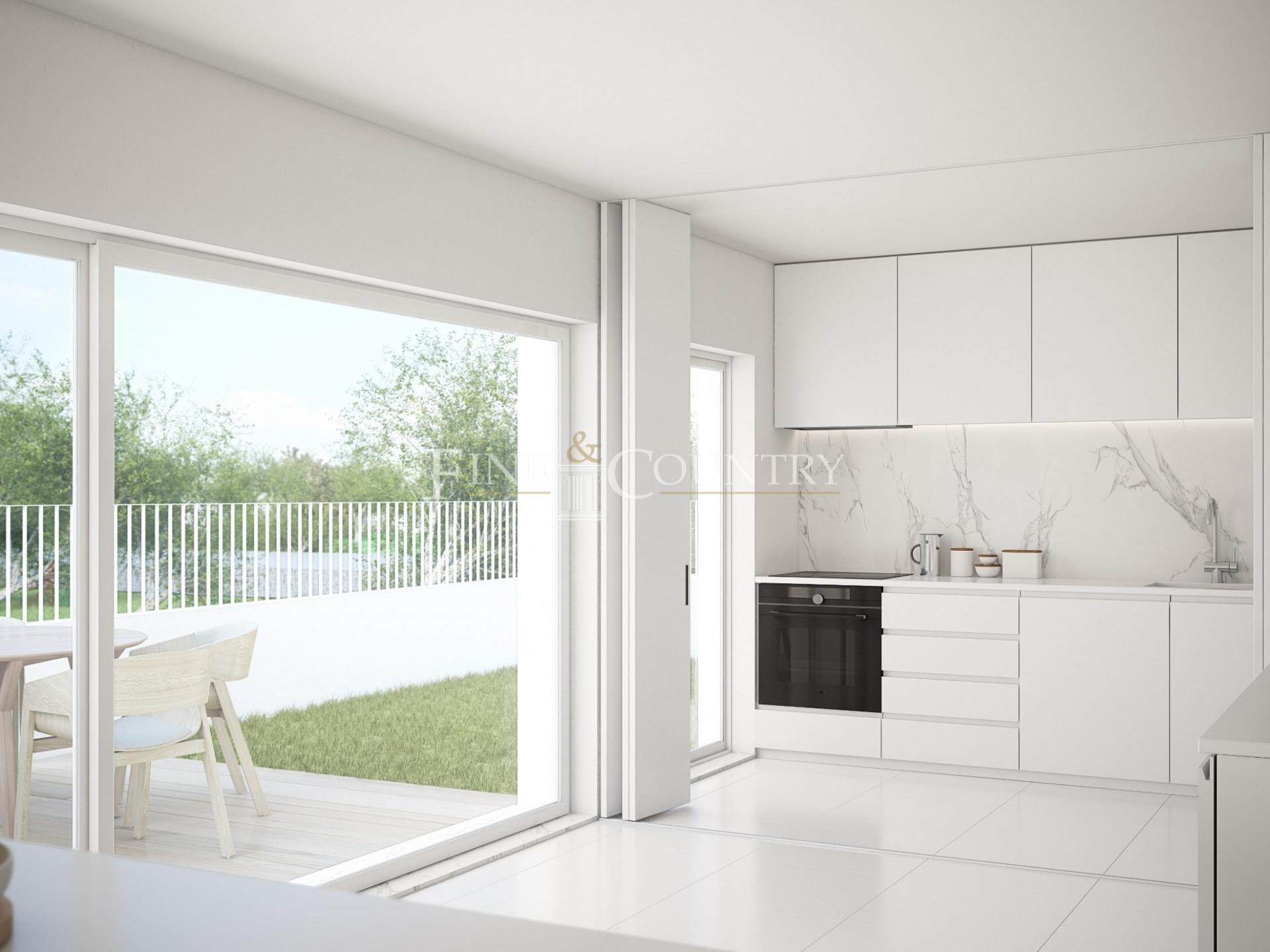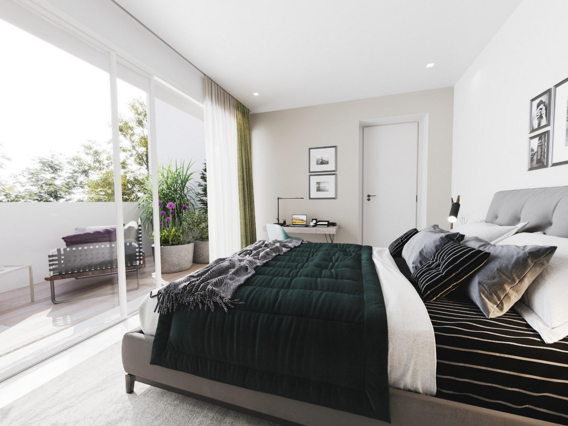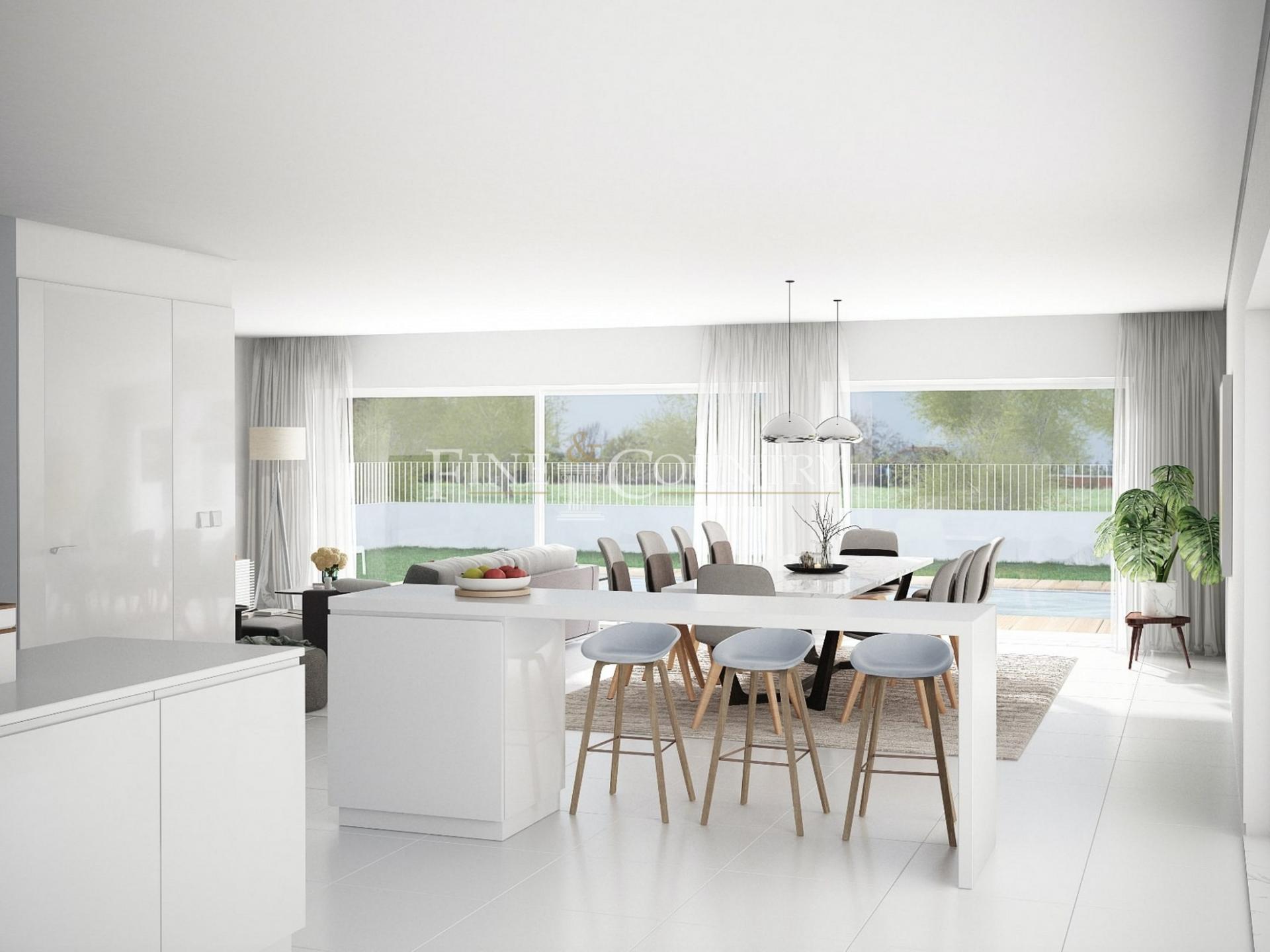 Cuidadosamente projetada em três andares, a moradia dispõe de uma espaçosa área de estar e jantar em plano aberto, perfeitamente ligada a uma cozinha totalmente equipada, com acesso direto ao jardim paisagístico e à piscina privada. Um escritório com casa de banho privada no rés-do-chão oferece um espaço versátil, ideal como quarto adicional.
