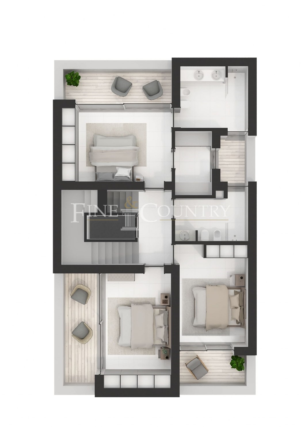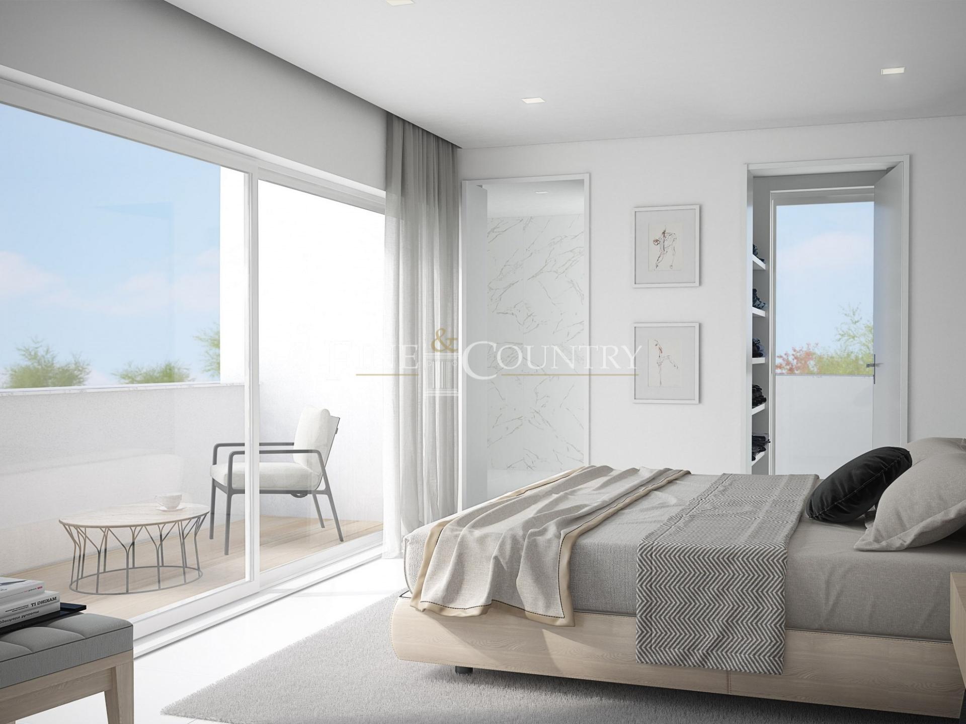 No piso superior, a suíte principal inclui um closet e casa de banho privativa, enquanto dois quartos adicionais partilham uma casa de banho bem equipada. Cada quarto tem acesso a varandas privadas perfeitas para aproveitar o sol algarvio. Um elevador panorâmico conduz ao amplo terraço na cobertura, onde vistas deslumbrantes sobre Tavira e a costa proporcionam um cenário encantador para momentos de lazer e entretenimento ao ar livre.
