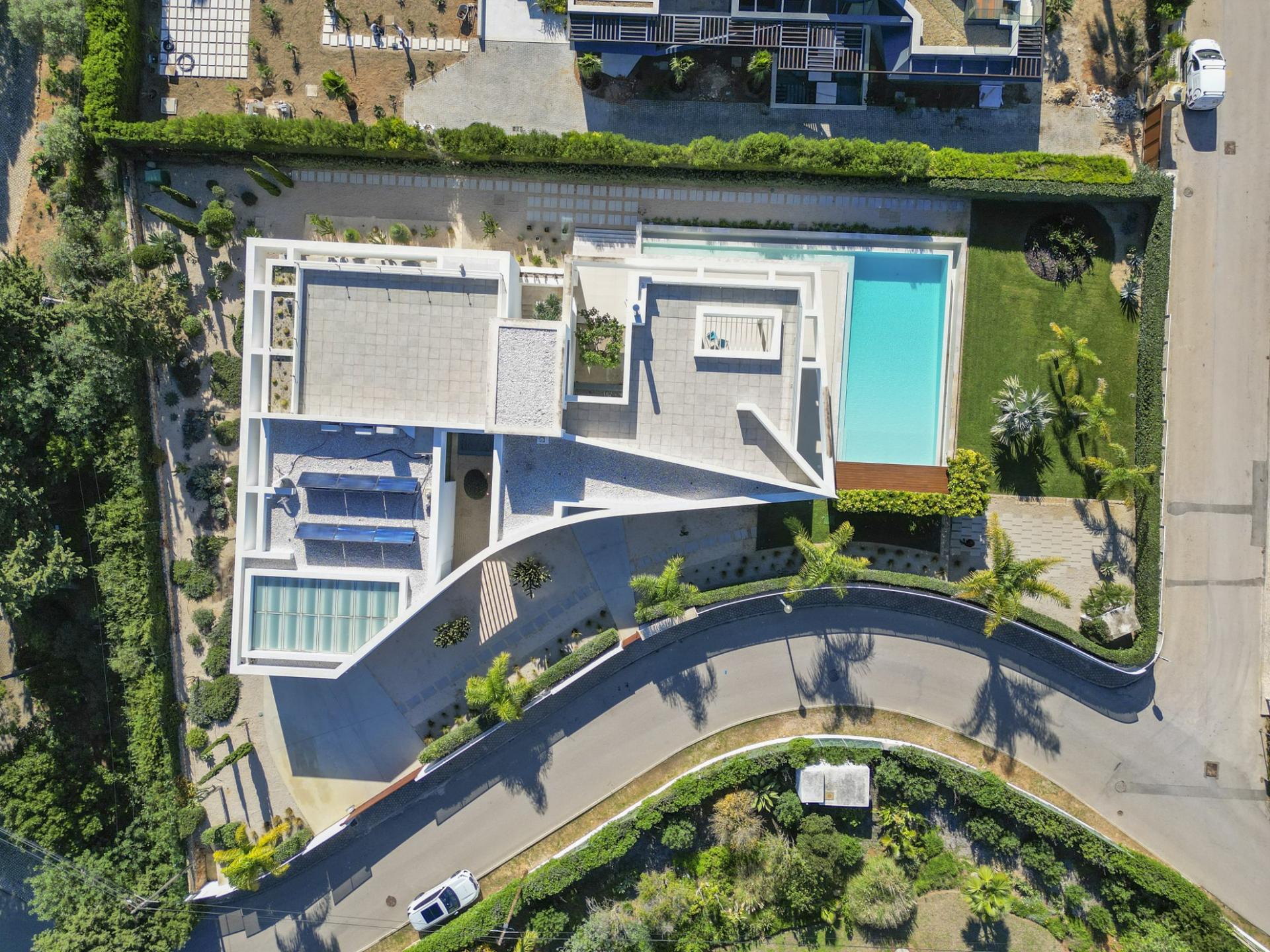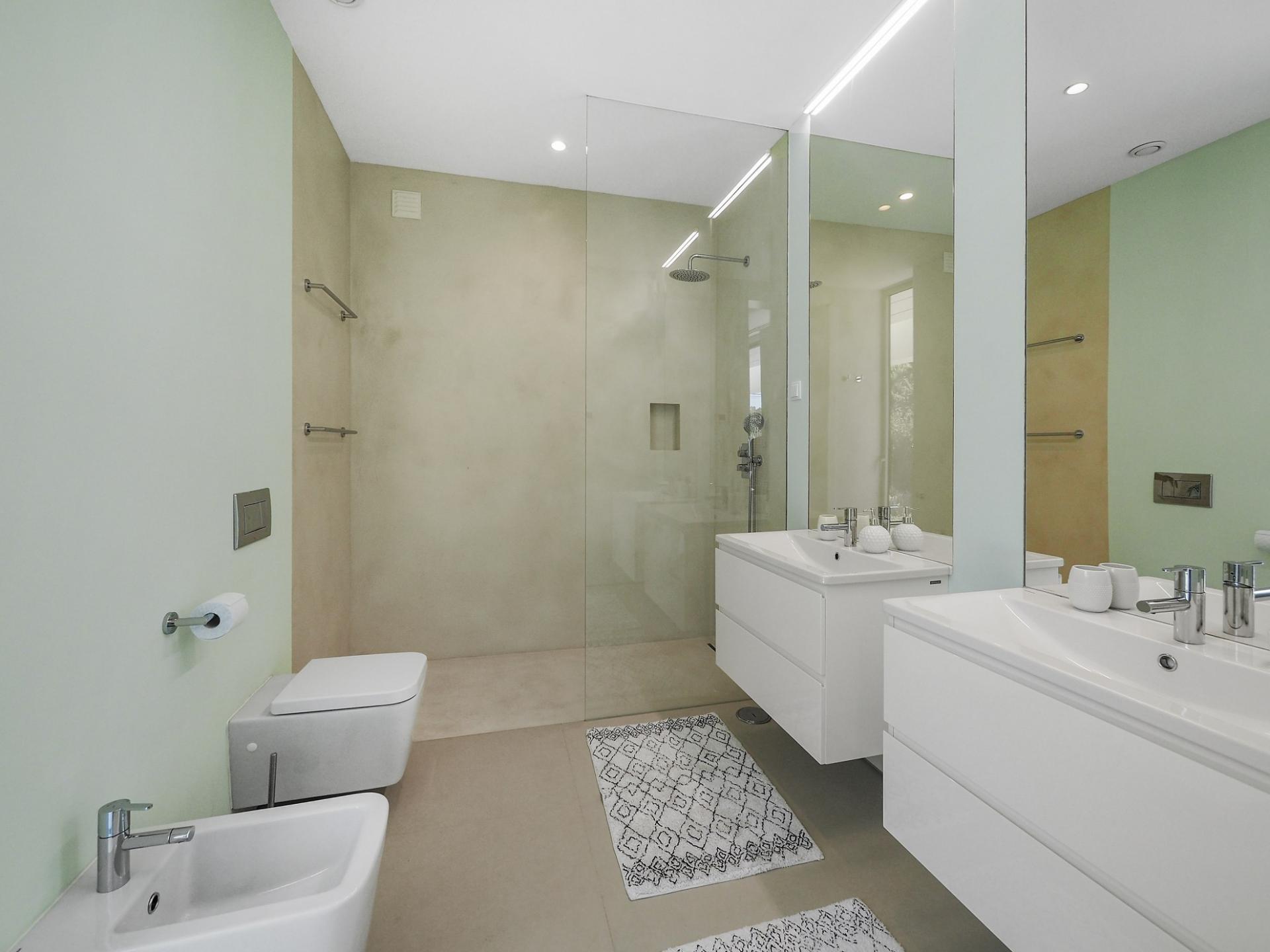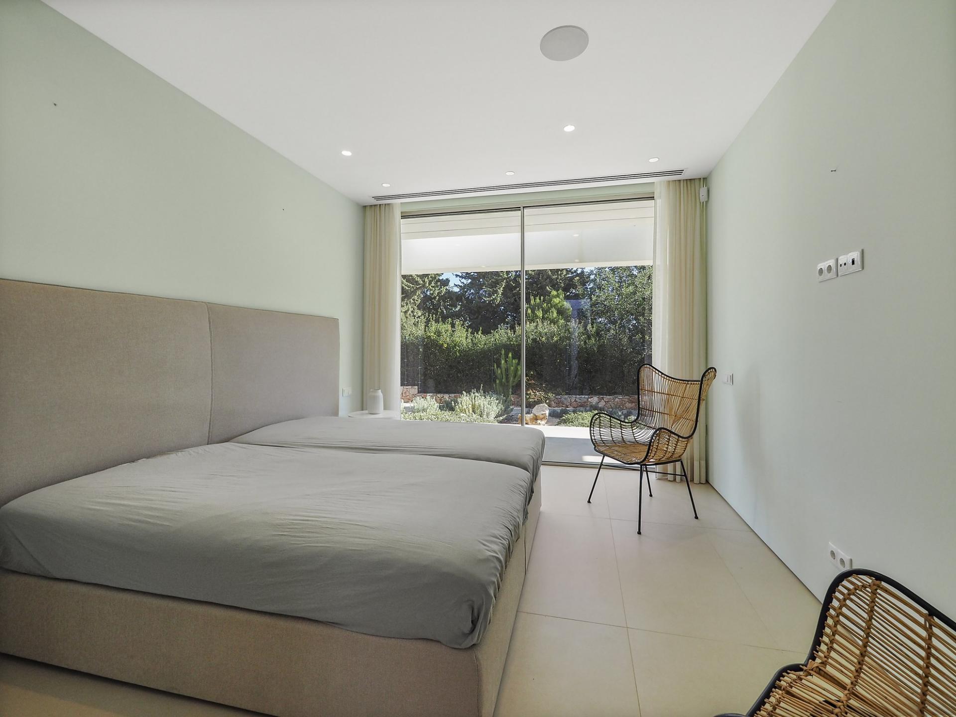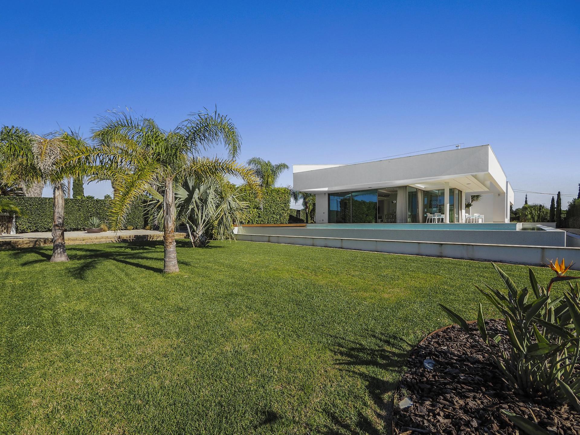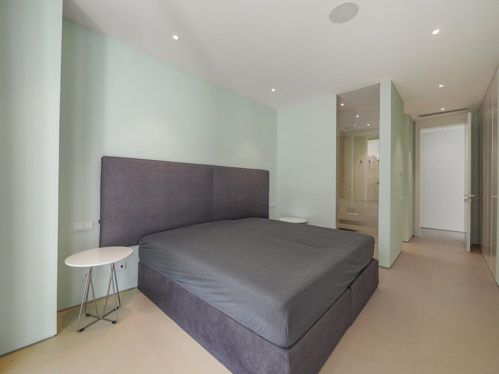 With a generous and well-distributed area, the villa has 4 bedrooms, all with en-suite, offering a peaceful and elegant environment. The spacious and bright living room features large picture windows offering views of the garden, pool and sea. The kitchen, fully equipped with high quality appliances, effuses the concept of the indoor/outdoor living with all windows folding back to expose the terrace and infinity pool. The property has underfloor heating and an integral air conditioning system.