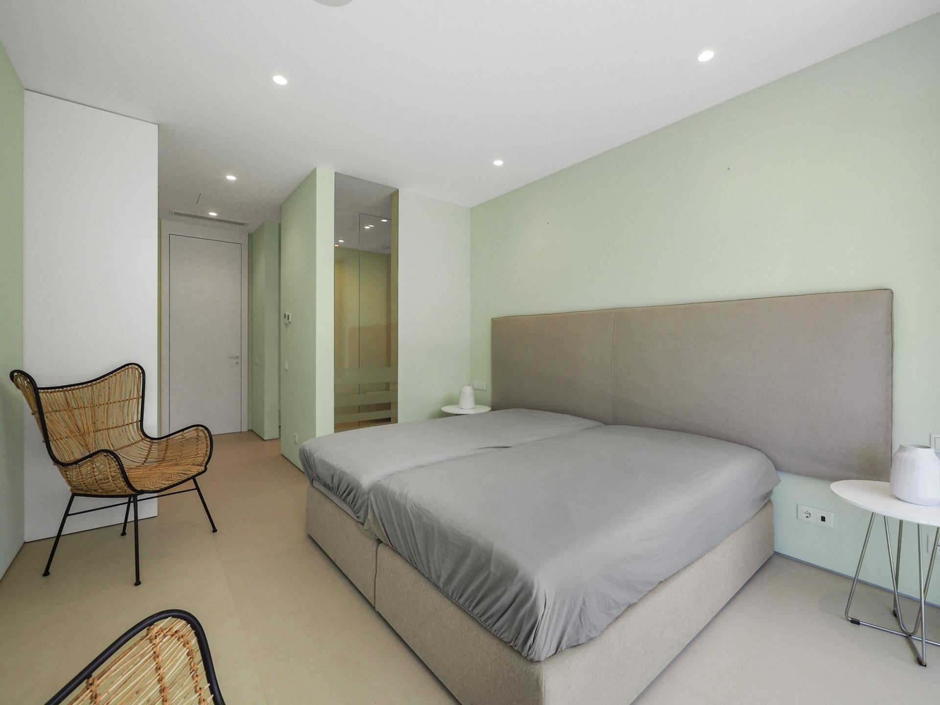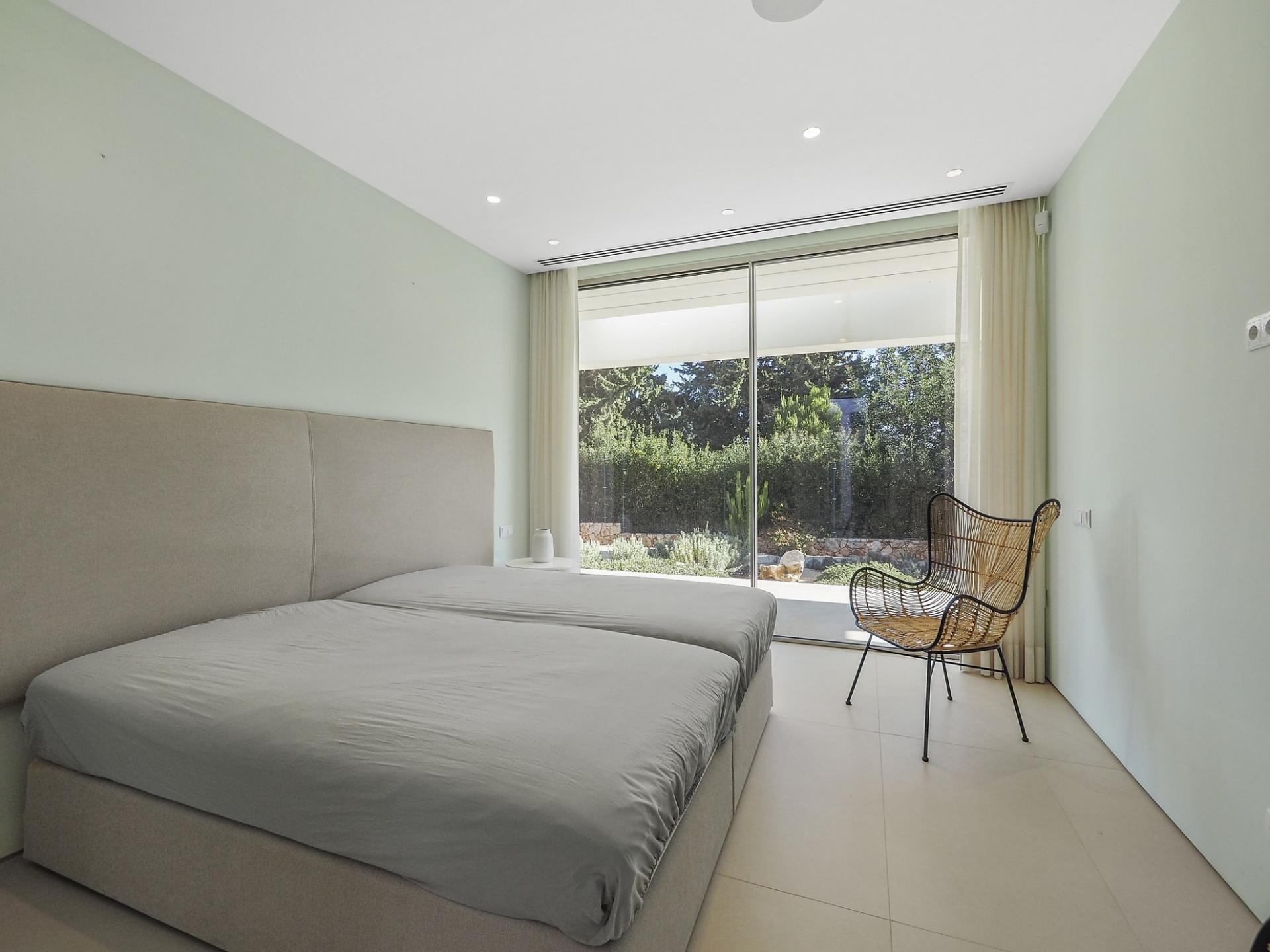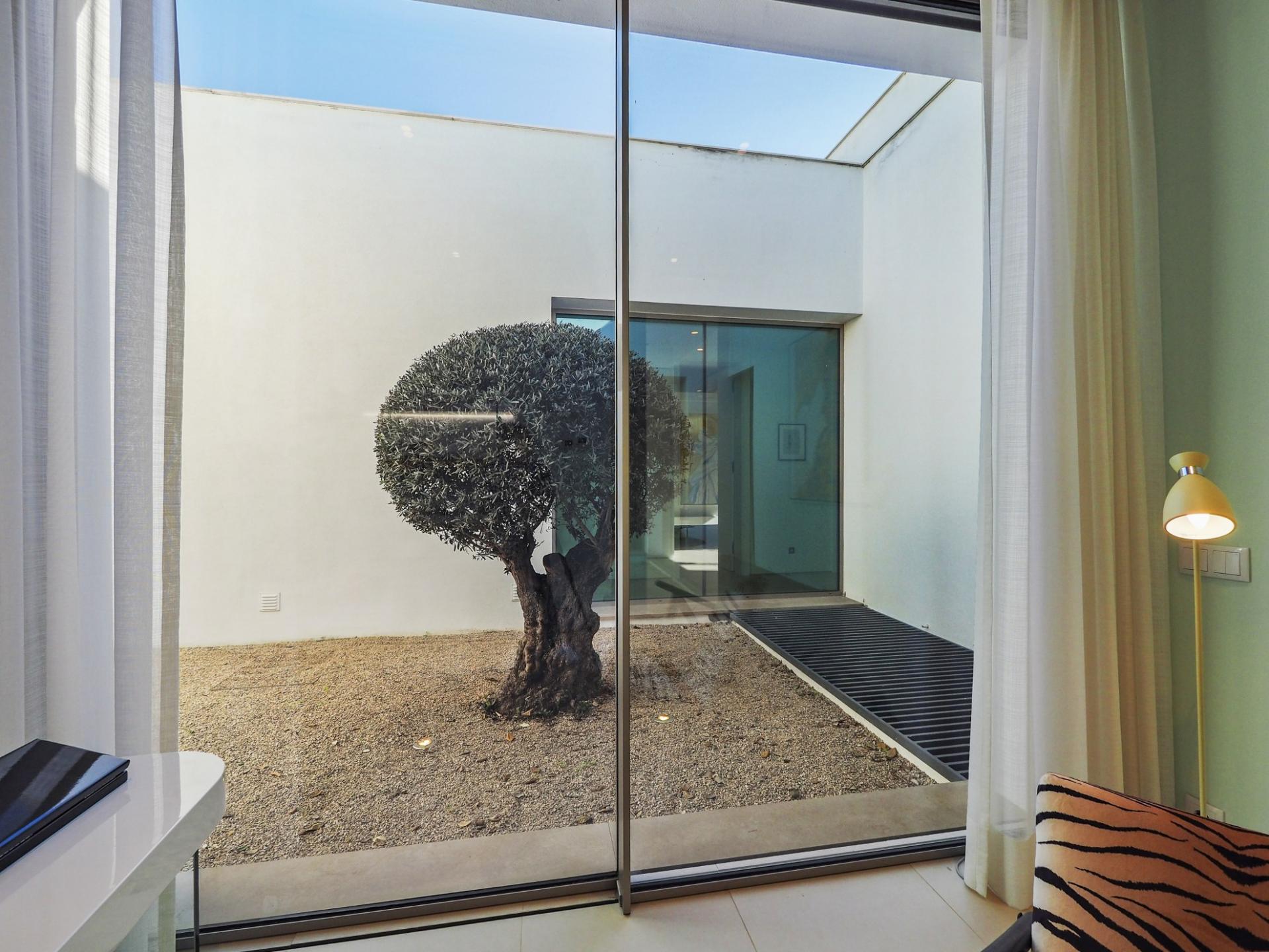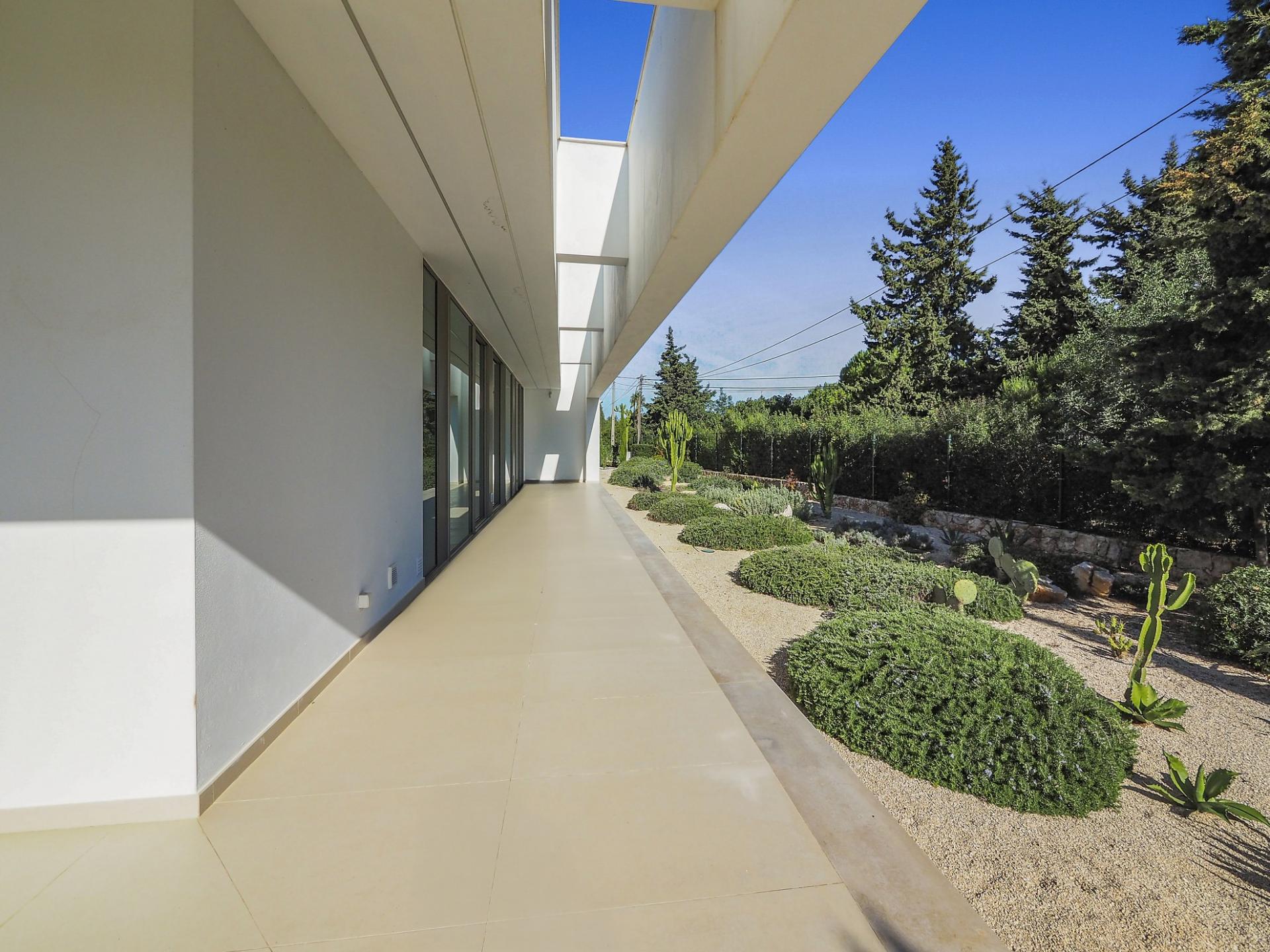 With a generous and well-distributed area, the villa has 4 bedrooms, all with en-suite, offering a peaceful and elegant environment. The spacious and bright living room features large picture windows offering views of the garden, pool and sea. The kitchen, fully equipped with high quality appliances, effuses the concept of the indoor/outdoor living with all windows folding back to expose the terrace and infinity pool. The property has underfloor heating and an integral air conditioning system.