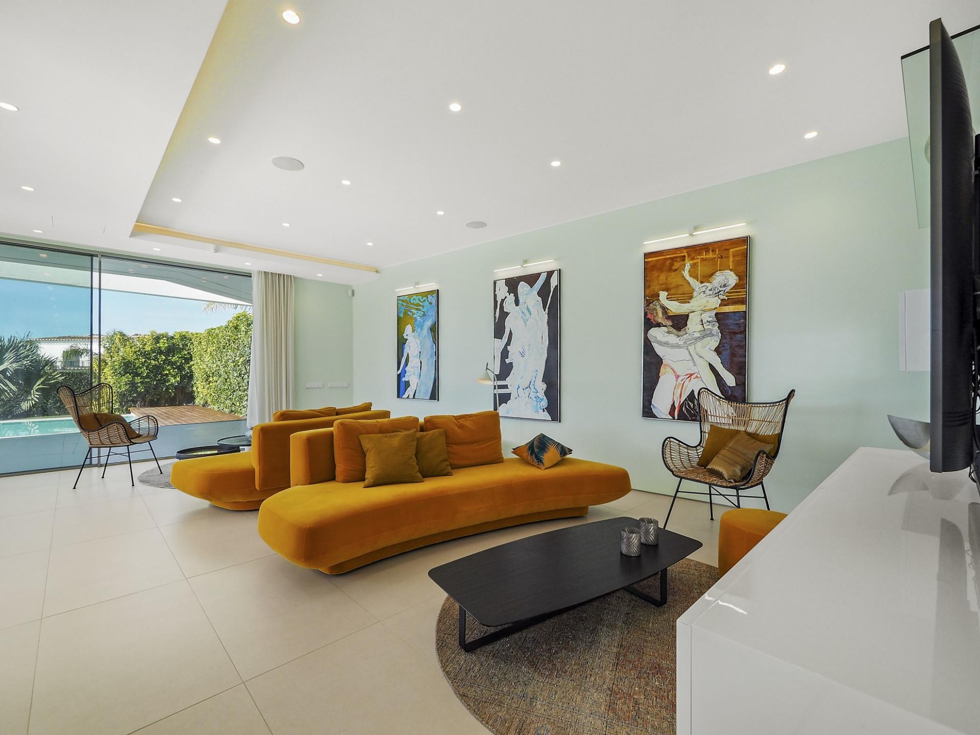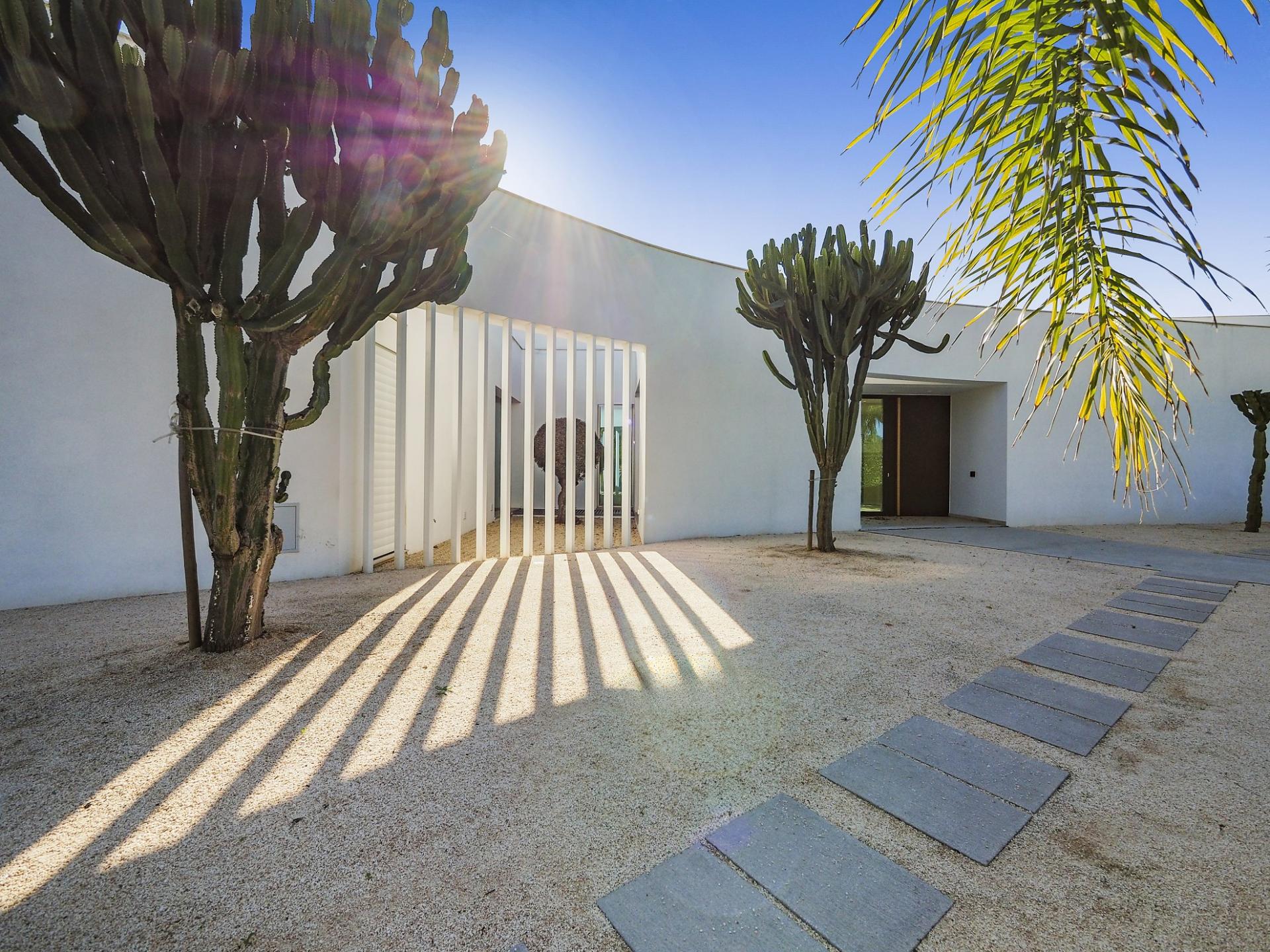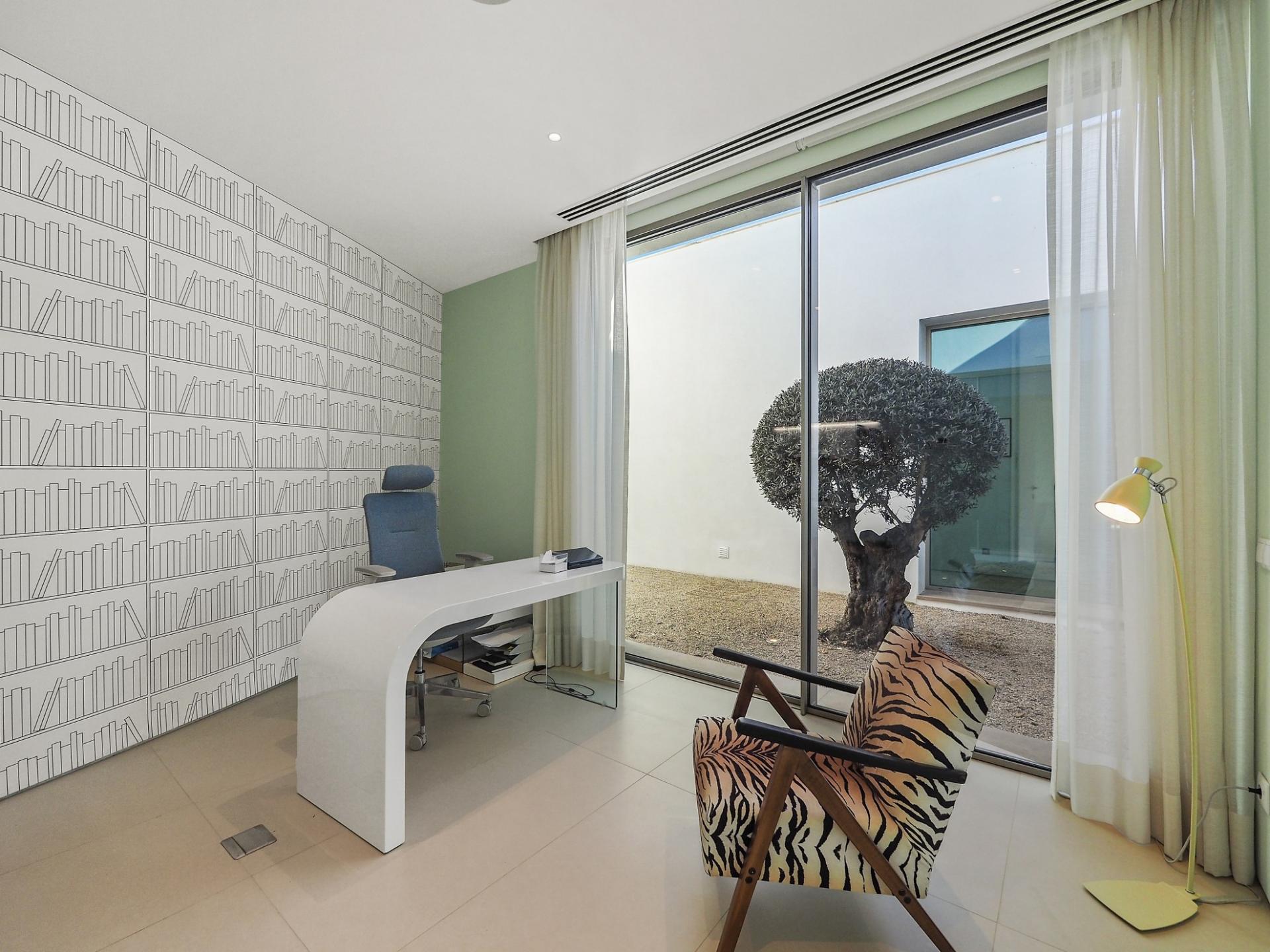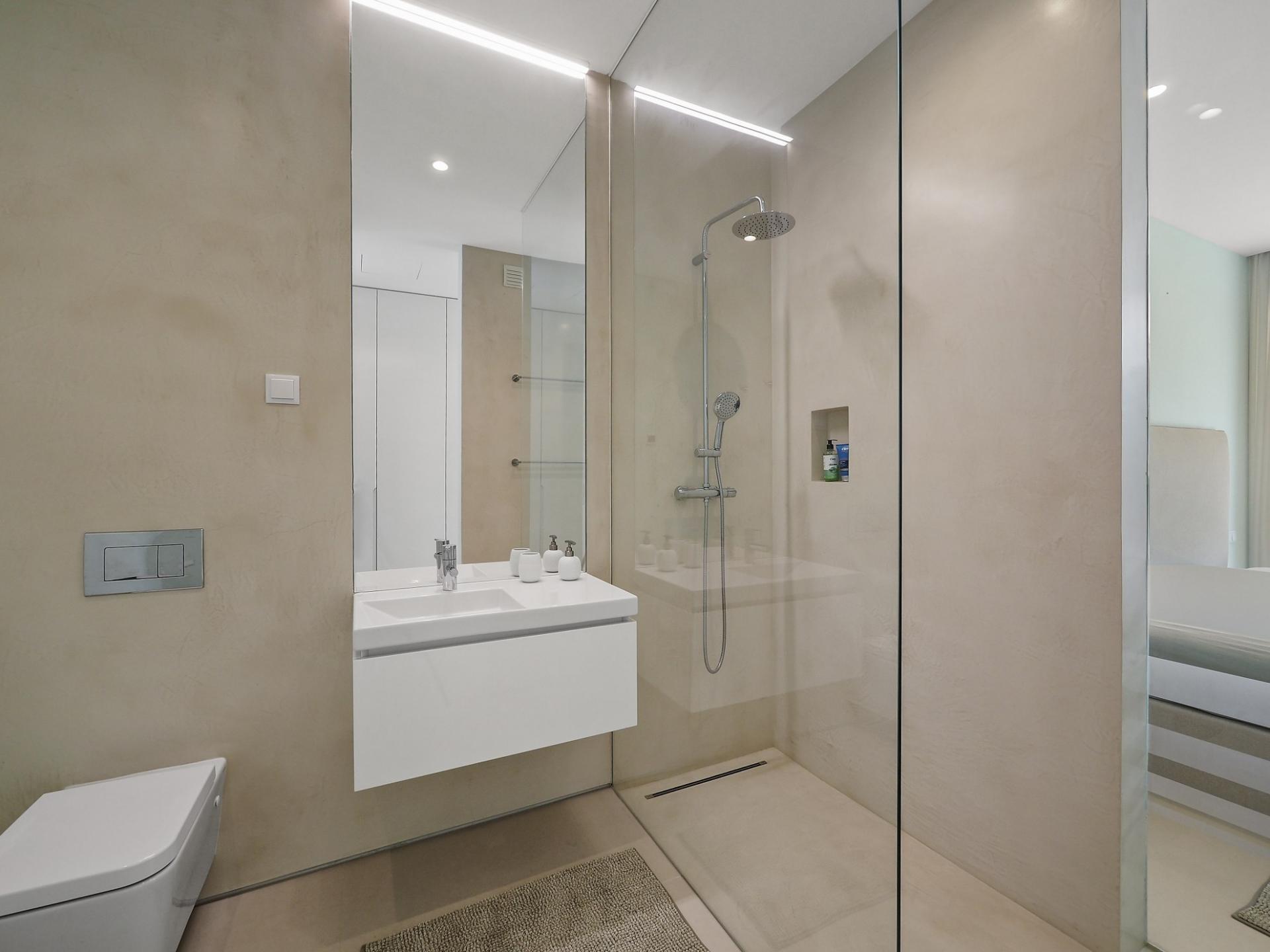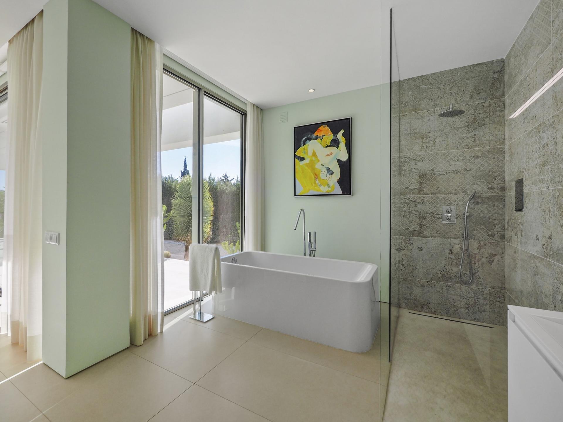With a generous and well-distributed area, the villa has 4 bedrooms, all with en-suite, offering a peaceful and elegant environment. The spacious and bright living room features large picture windows offering views of the garden, pool and sea. The kitchen, fully equipped with high quality appliances, effuses the concept of the indoor/outdoor living with all windows folding back to expose the terrace and infinity pool. The property has underfloor heating and an integral air conditioning system.