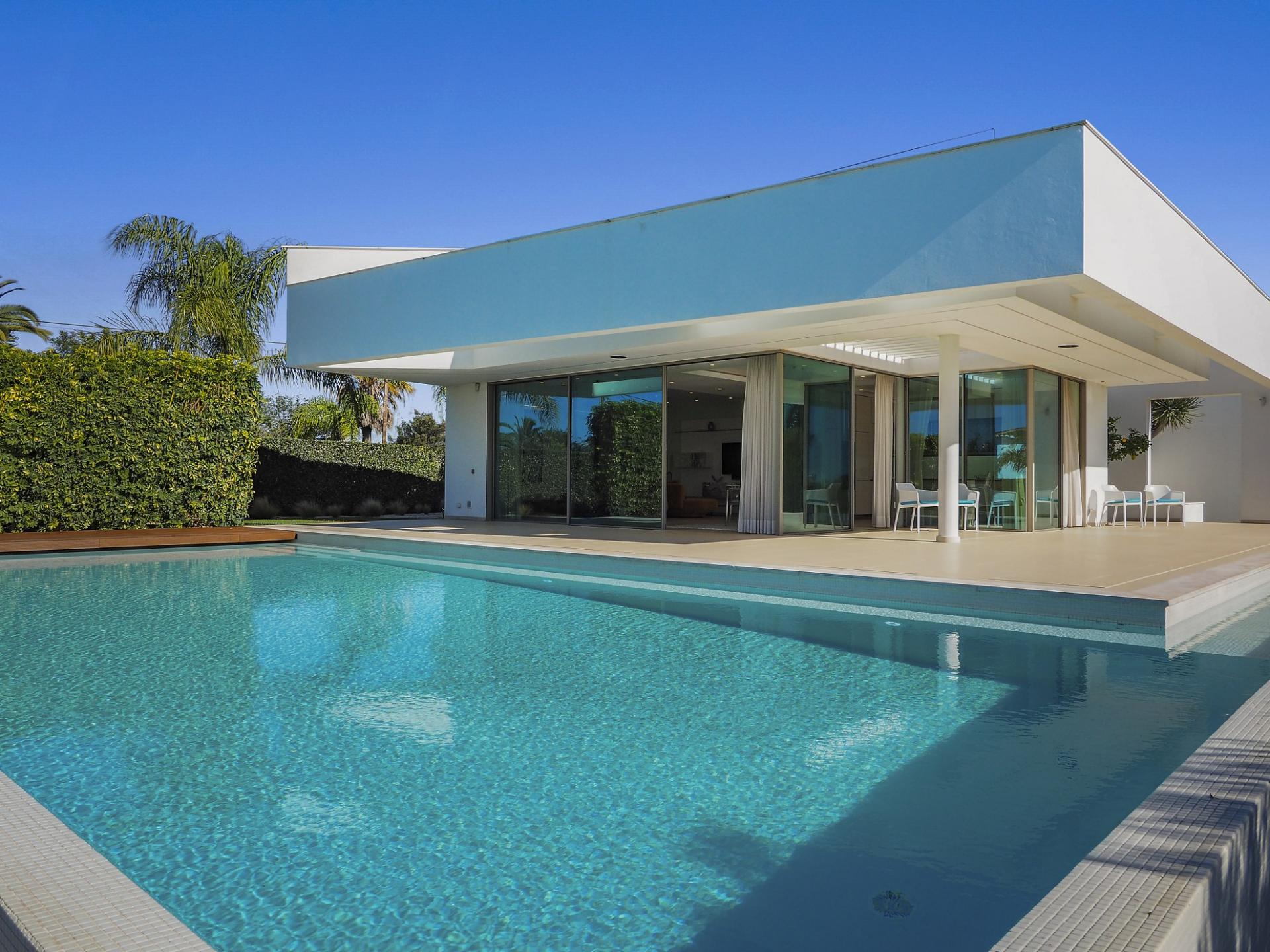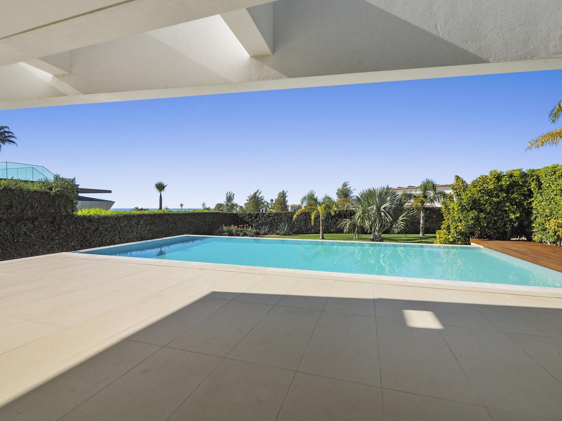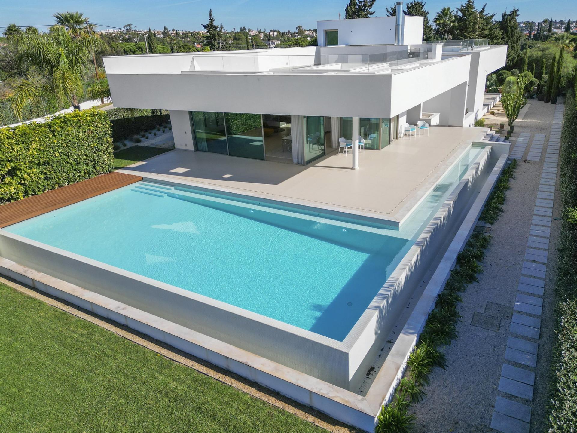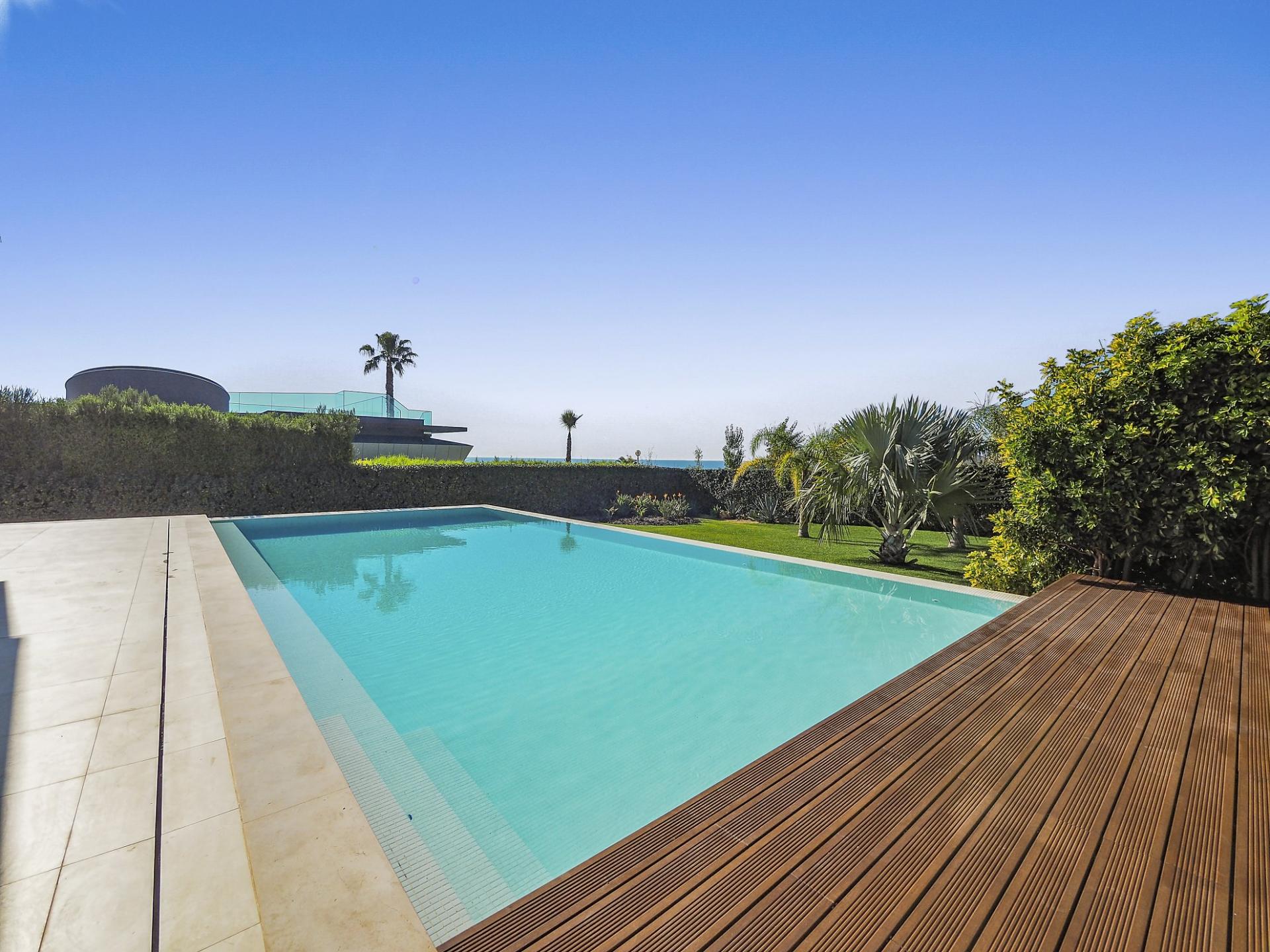 - Infinity-style swimming pool + electric cover