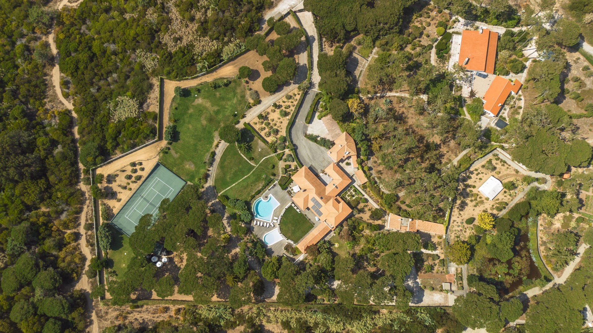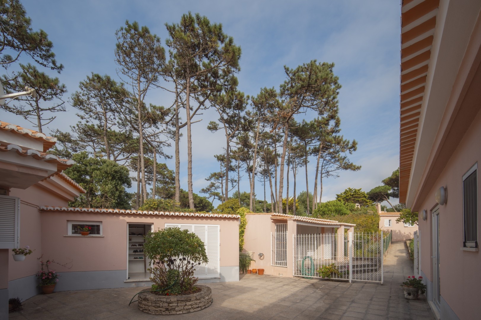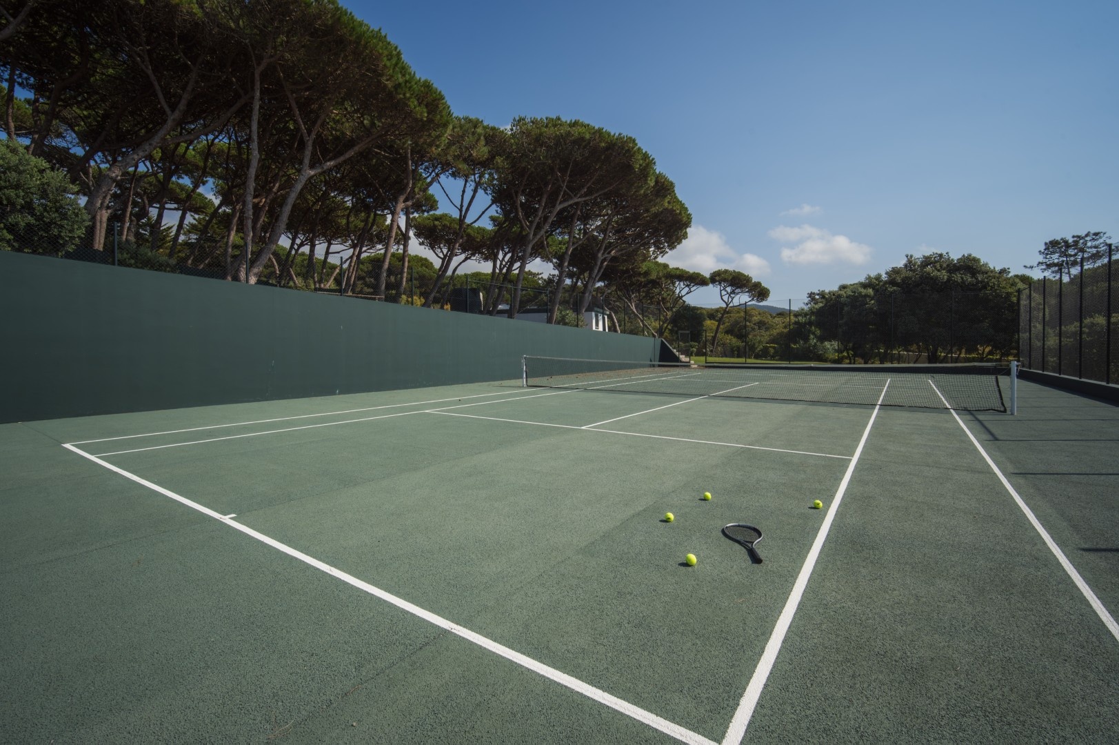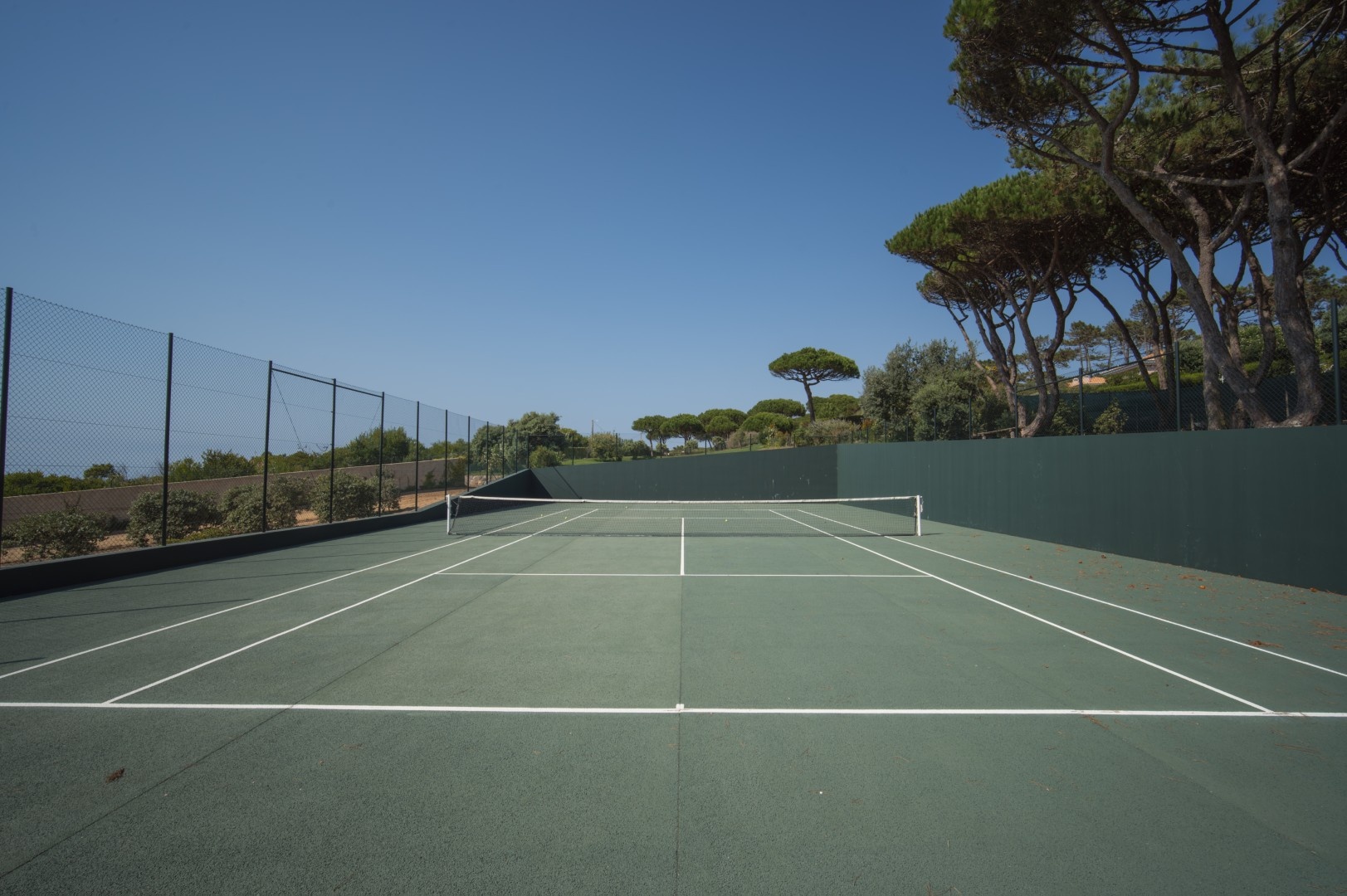 Additional features include a wine cellar, carport for four vehicles, tennis court, landscaped gardens with orchards and vegetable plots, a greenhouse, water wells and solar panels. The property is just a short walk from Praia Grande beach.