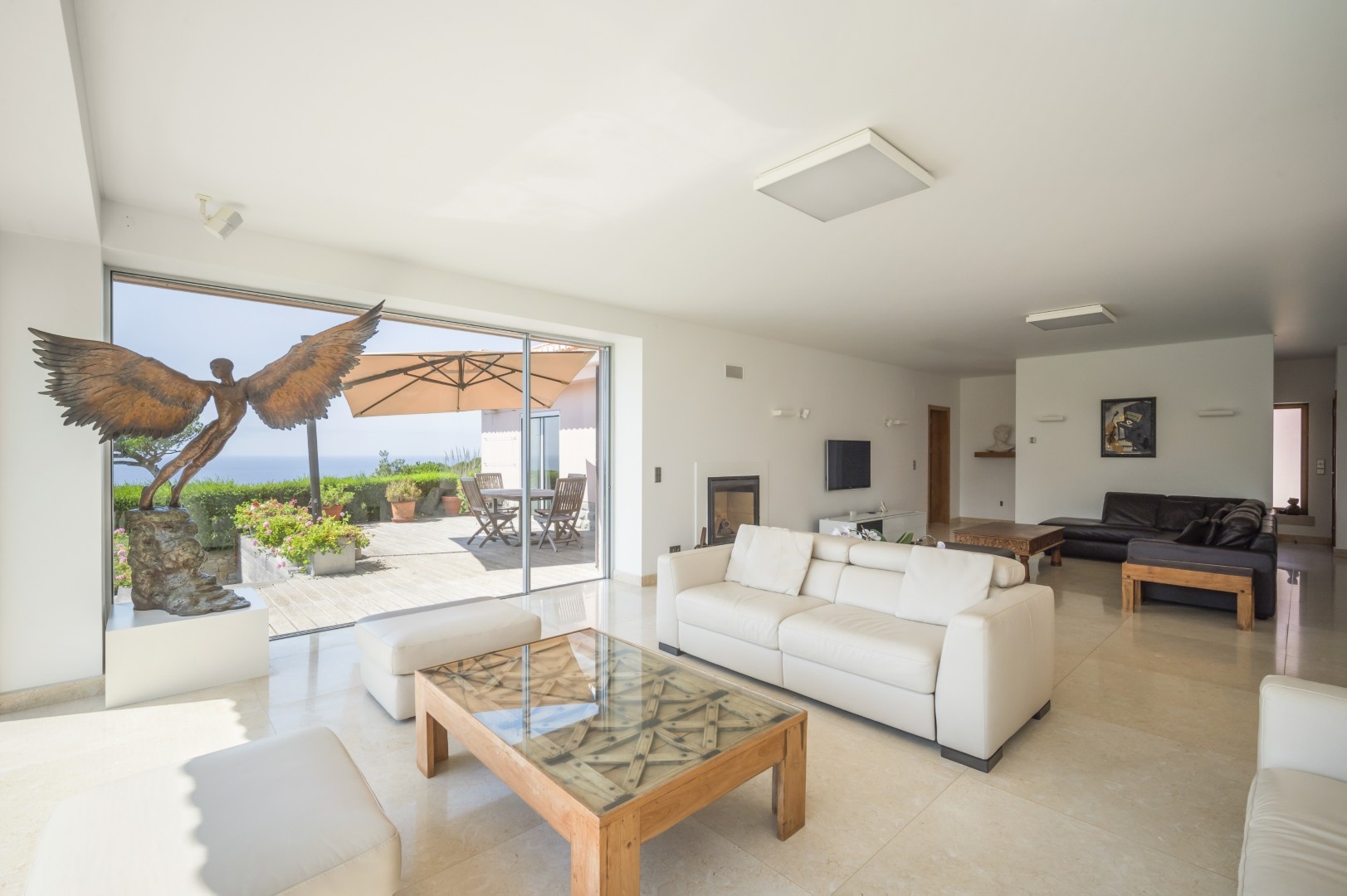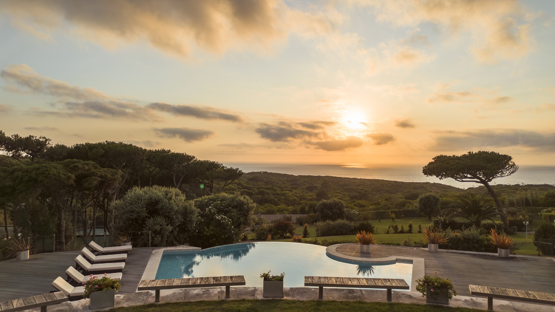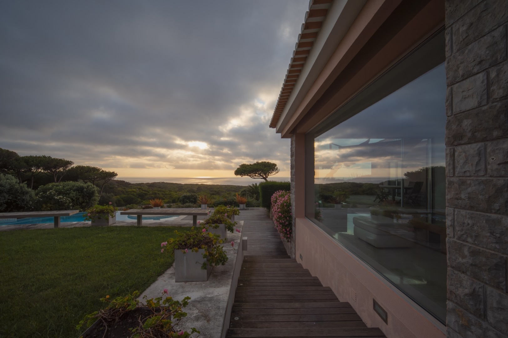 The Main Villa (600 m²): A refined two-level home with four en-suite bedrooms, grand living and dining spaces, a designer kitchen with premium appliances, extensive terraces, and both heated saltwater and freshwater swimming pools. Every detail is designed for comfort, from marble floors with underfloor heating to a Bose sound system and breathtaking views of the Atlantic and Cabo da Roca.