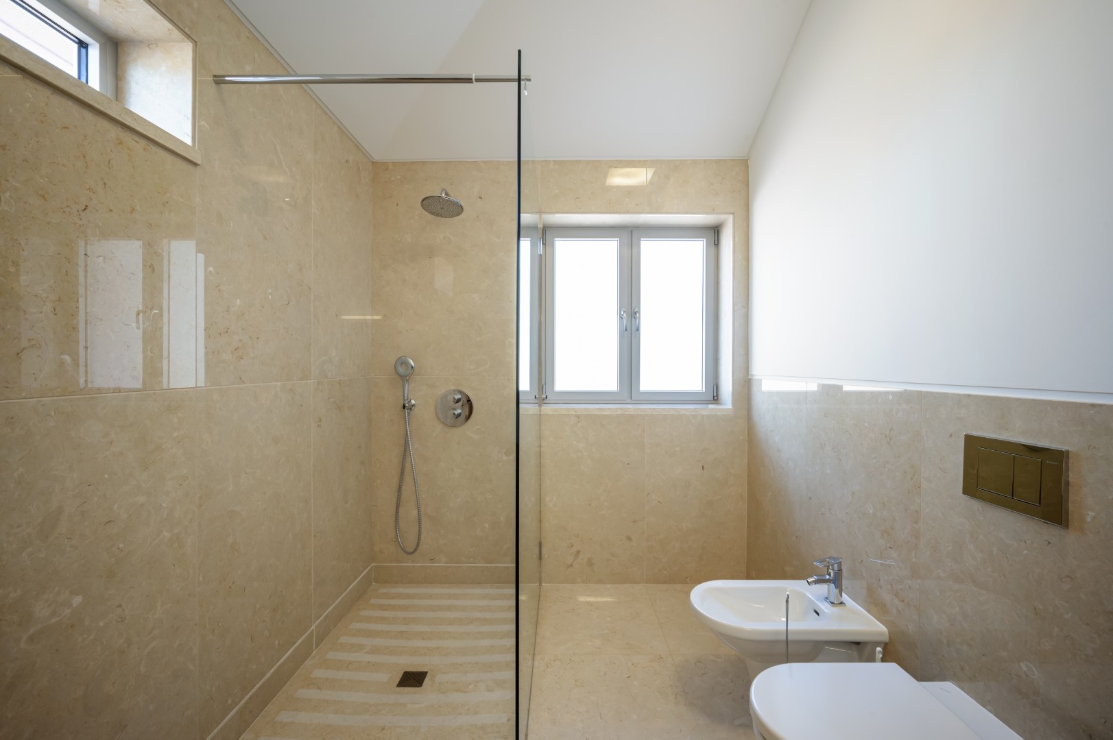 The Guest House (157 m²): A stylish single-level retreat with three bedrooms, marble floors, underfloor heating, and its own private entrance—perfect for hosting family and friends.