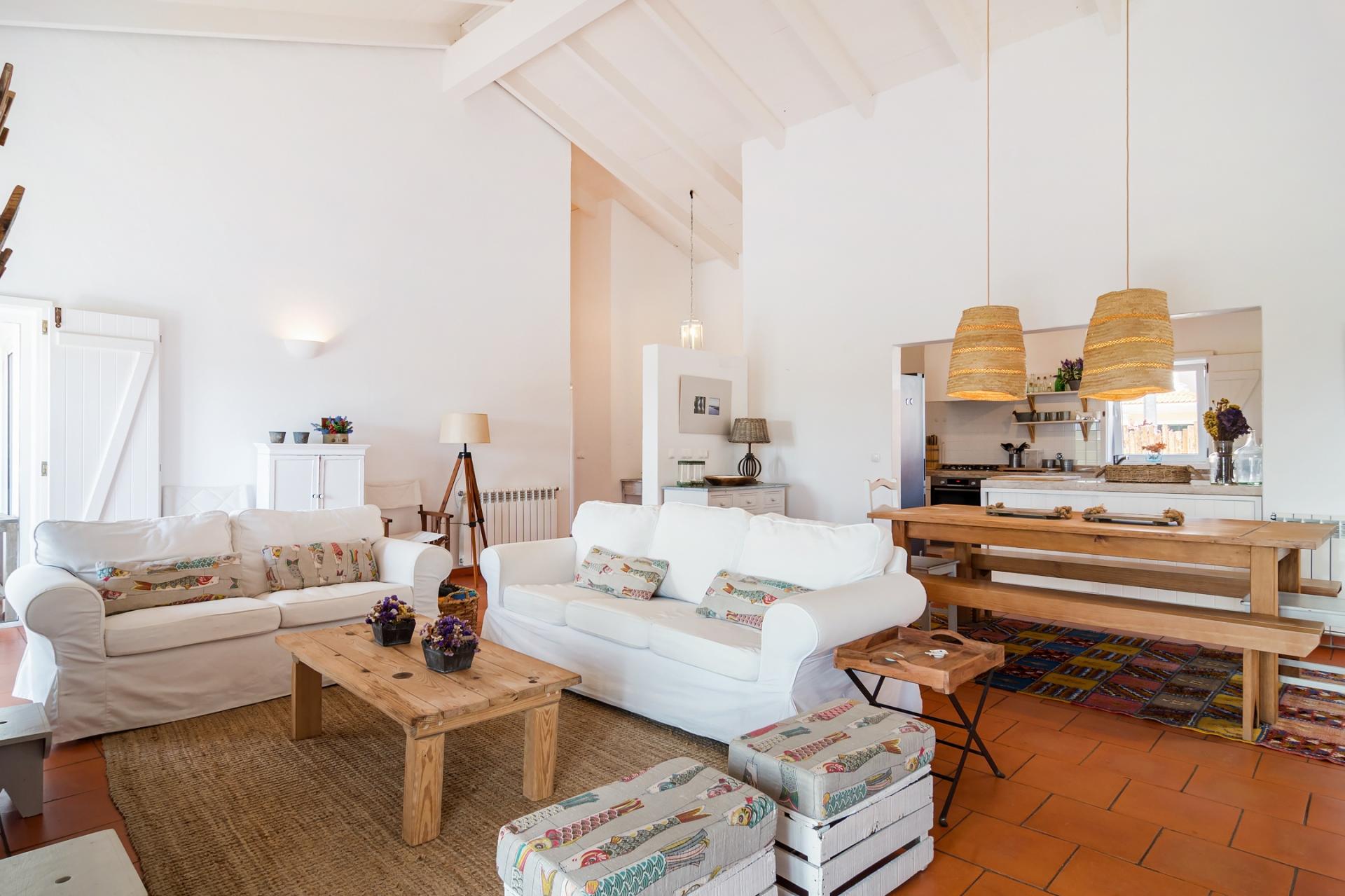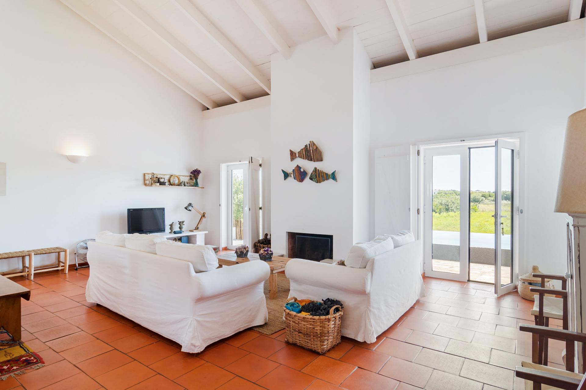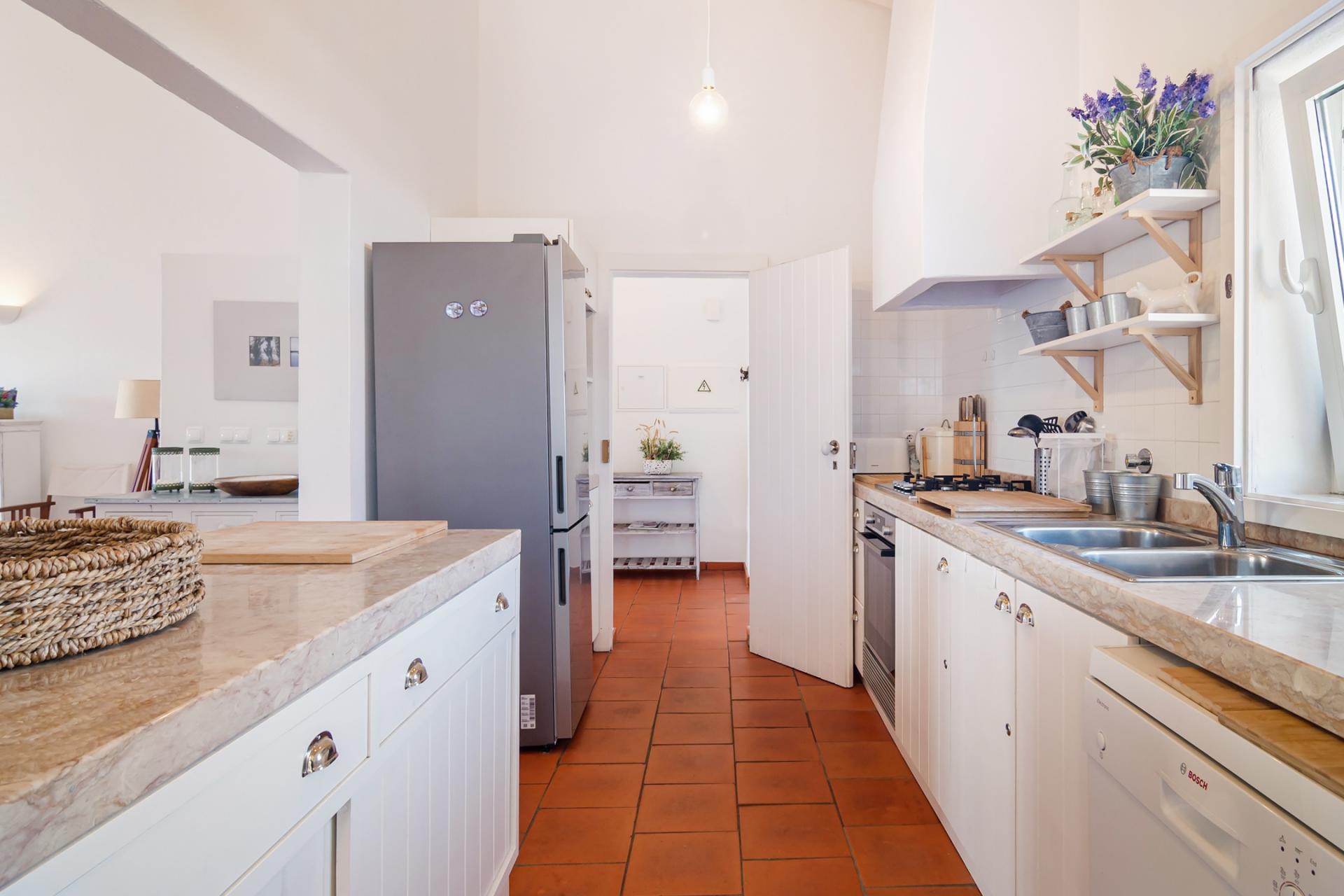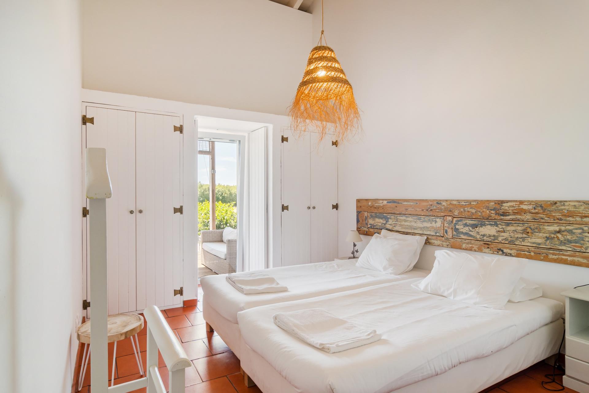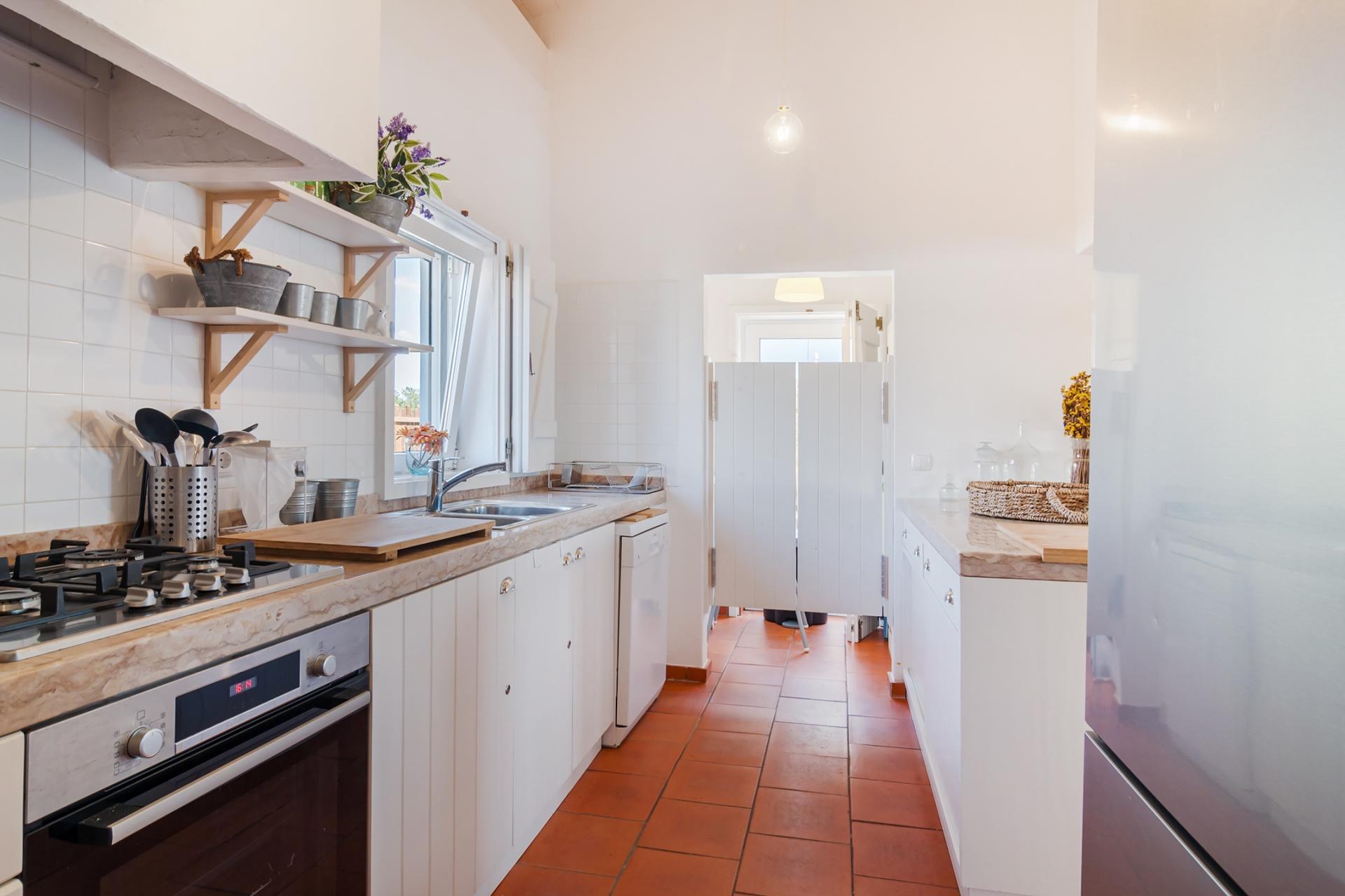 With wonderful views over the wild countryside, this villa is spread over a single floor. It has an open-concept kitchen with dining room and living room with fireplace, four bedrooms and two bathrooms. From the living room we have access to the charming and exclusive outdoor space comprising an infinity pool with views over the fields and the Serra da Arrábida, a leisure area with white sand sun loungers and a dining area with a barbecue.