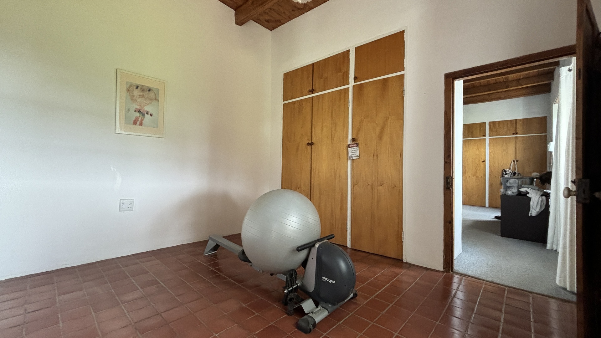 Spacious master suite with en suite bathroom, private gym, and hobby/storage room