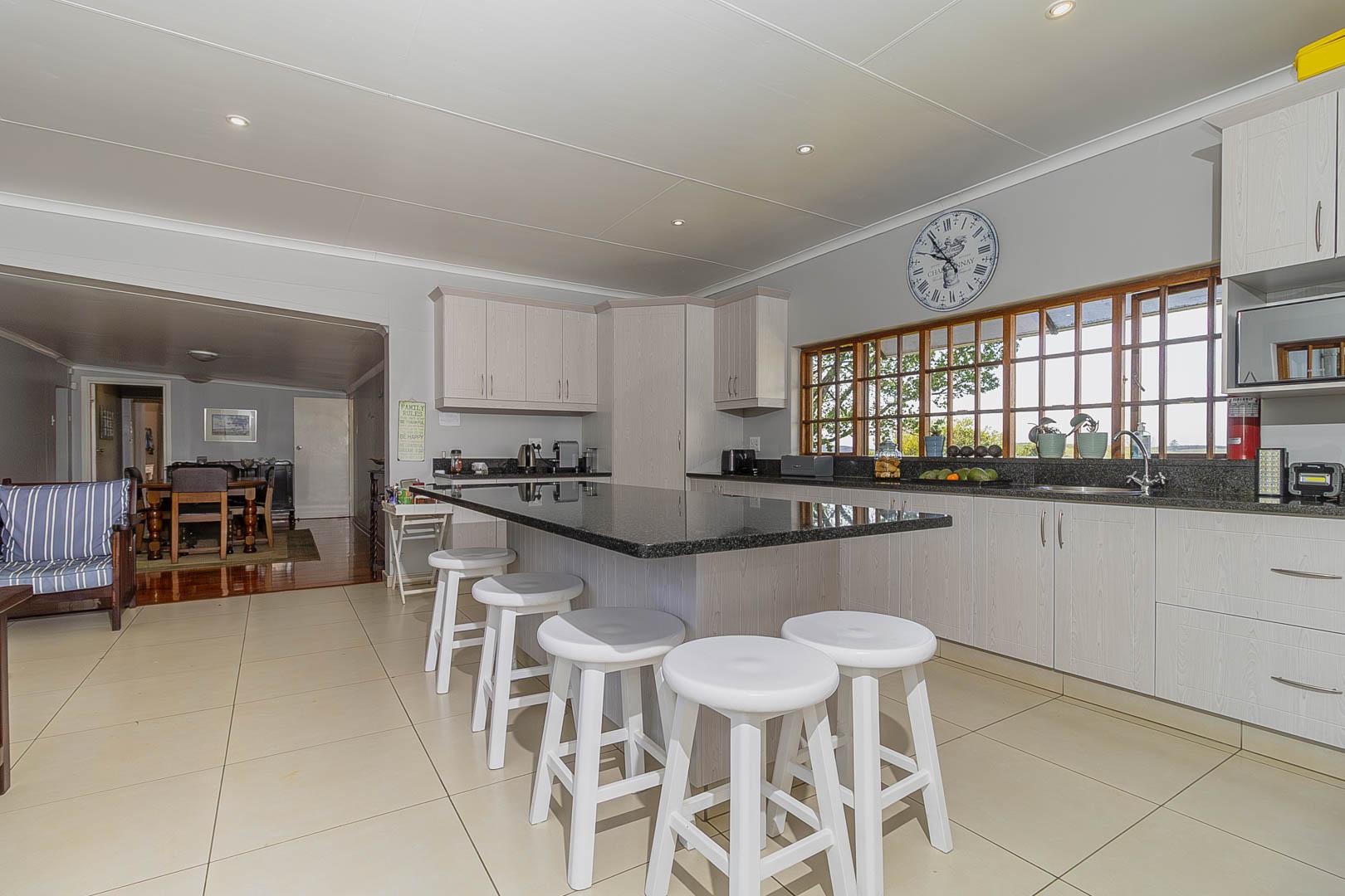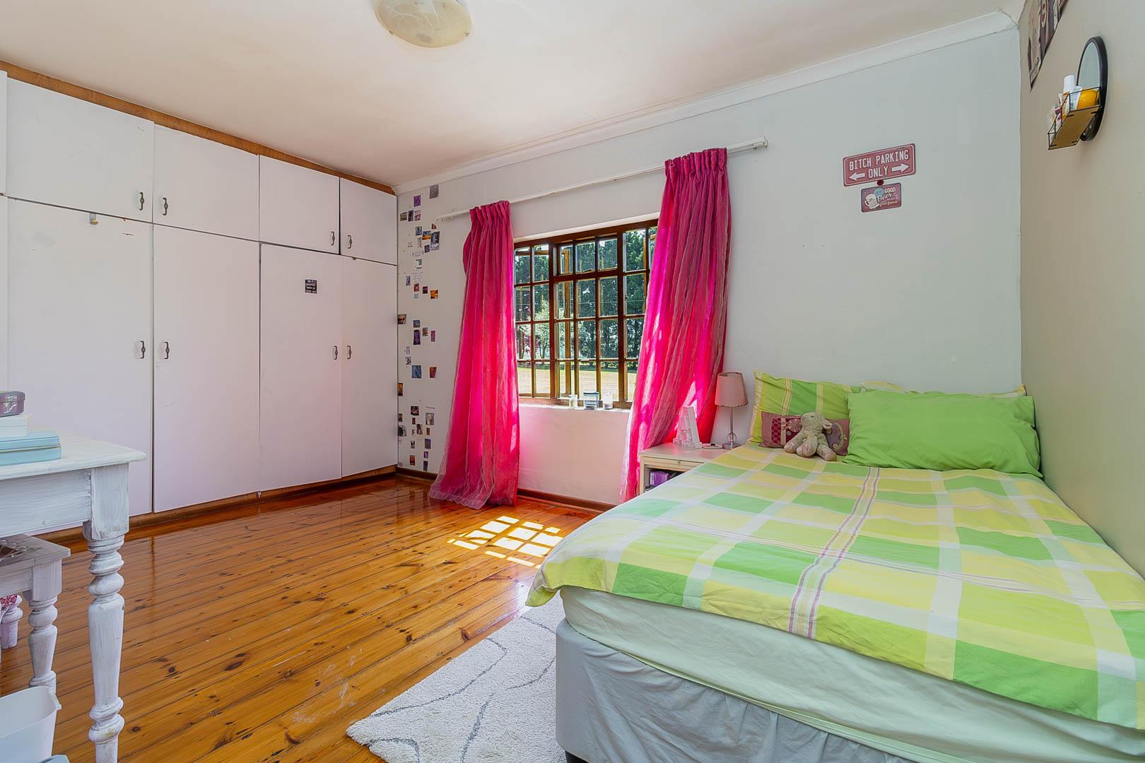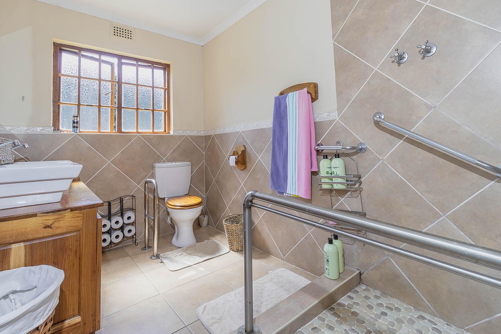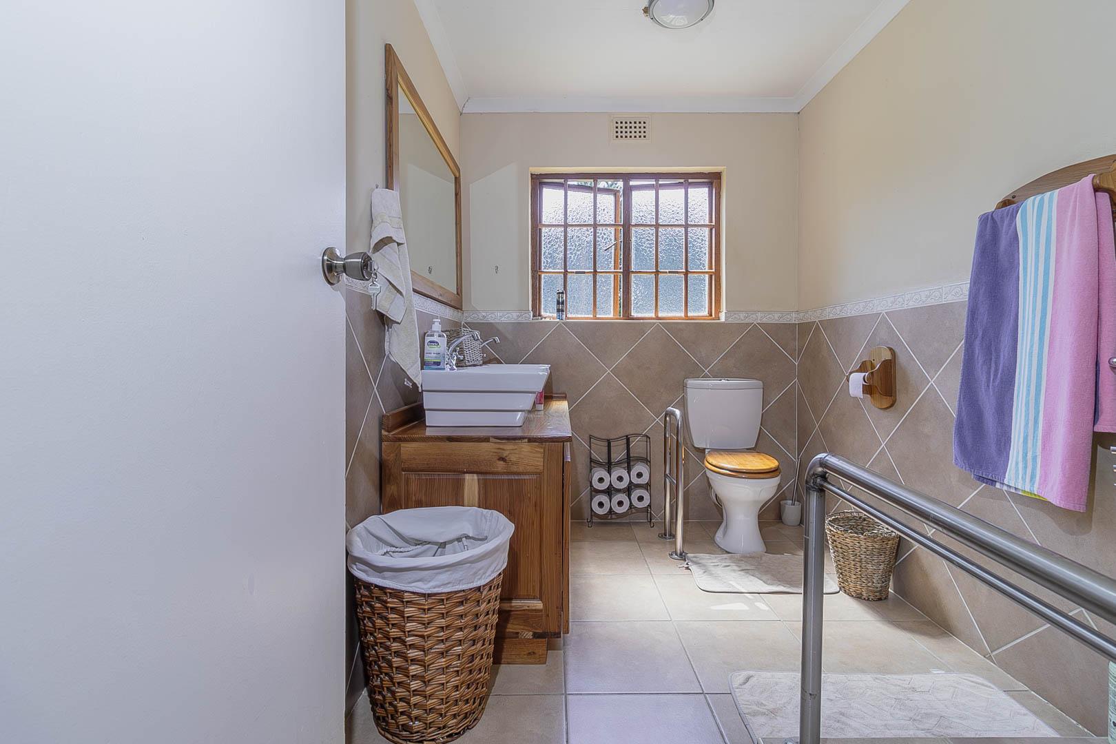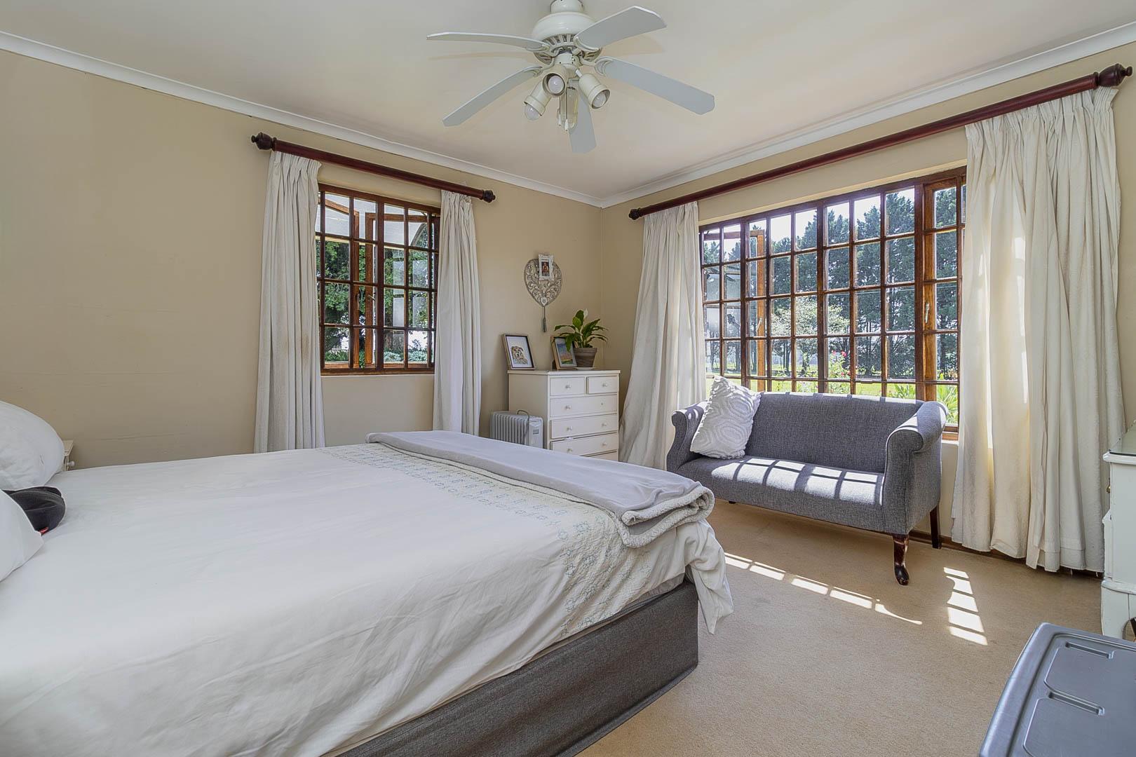 4 bedrooms; 3 bathrooms (2 ensuite); TV lounge; Dining; room; Modern kitchen; Scullery; Ironing room; Outside washroom; Generator connection with a manual switchover; Swimming pool; 1-bedroom cottage with an ensuite bathroom and open-plan lounge and kitchen.