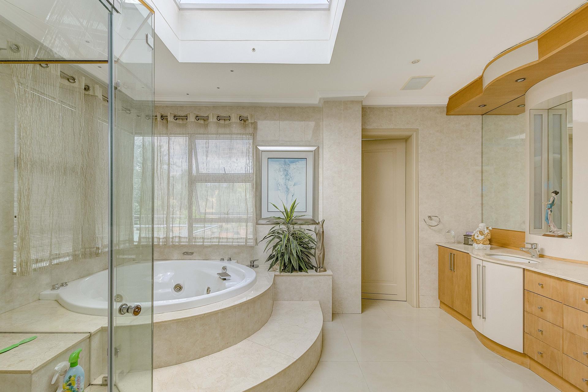 The opulent master suite offers a peaceful retreat, showcasing a luxurious spa-style bathroom with a freestanding spa bath, double vanity, walk-in rain shower, and a generously sized dressing room. Three additional en-suite bedrooms provide privacy and comfort for family and guests alike.