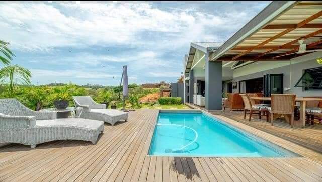 Step into a life of effortless luxury with this stunning freestanding home nestled within a secure estate on the sought-after KZN North Coast. Boasting ,4 spacious bedrooms, 3 bathrooms (including a main en suite), and beautifully designed living spaces, this home offers the perfect blend of comfort and sophistication.