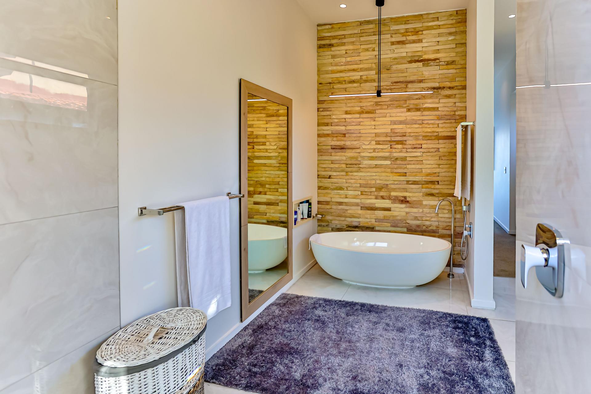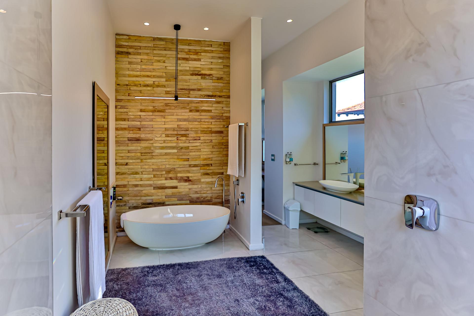 Stacker doors blur the lines between inside and out, opening onto a balcony jacuzzi with panoramic views.
