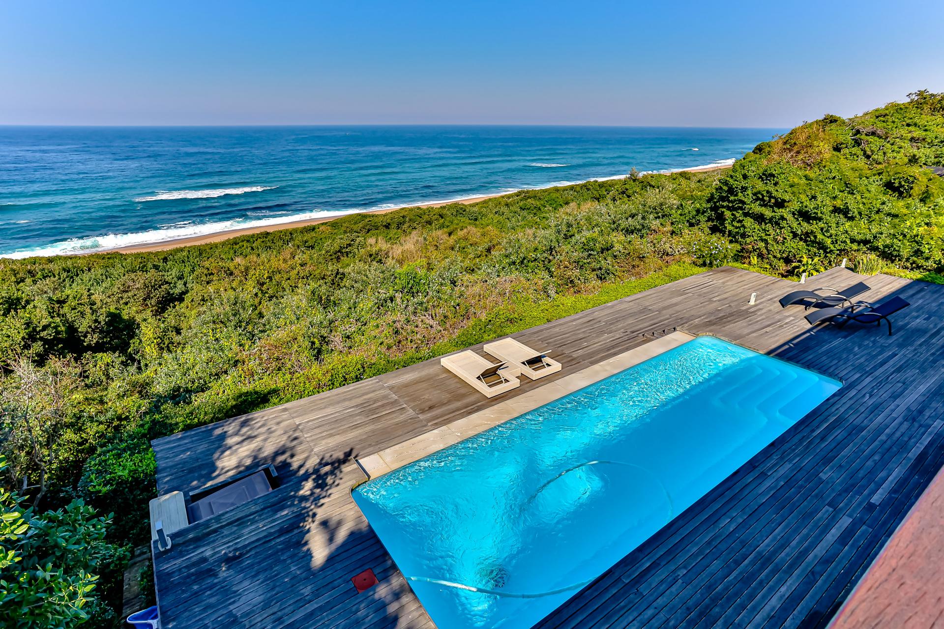 An expansive outdoor wooden deck and lap pool invite you to relax and reconnect with nature, framed by mesmerizing views of the Indian Ocean.