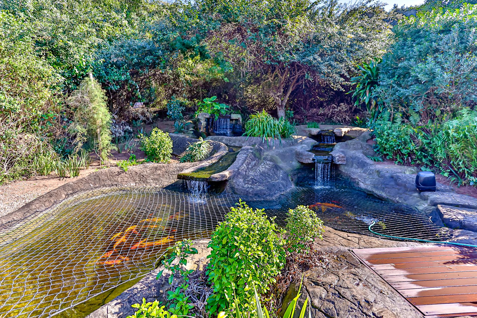 From the moment you arrive, a tranquil Koi pond and eco-conscious water features set the tone for a serene, sustainable experience. Thoughtfully equipped with integrated backup battery inverter systems and water storage solutions, this home is designed for modern, resilient living.