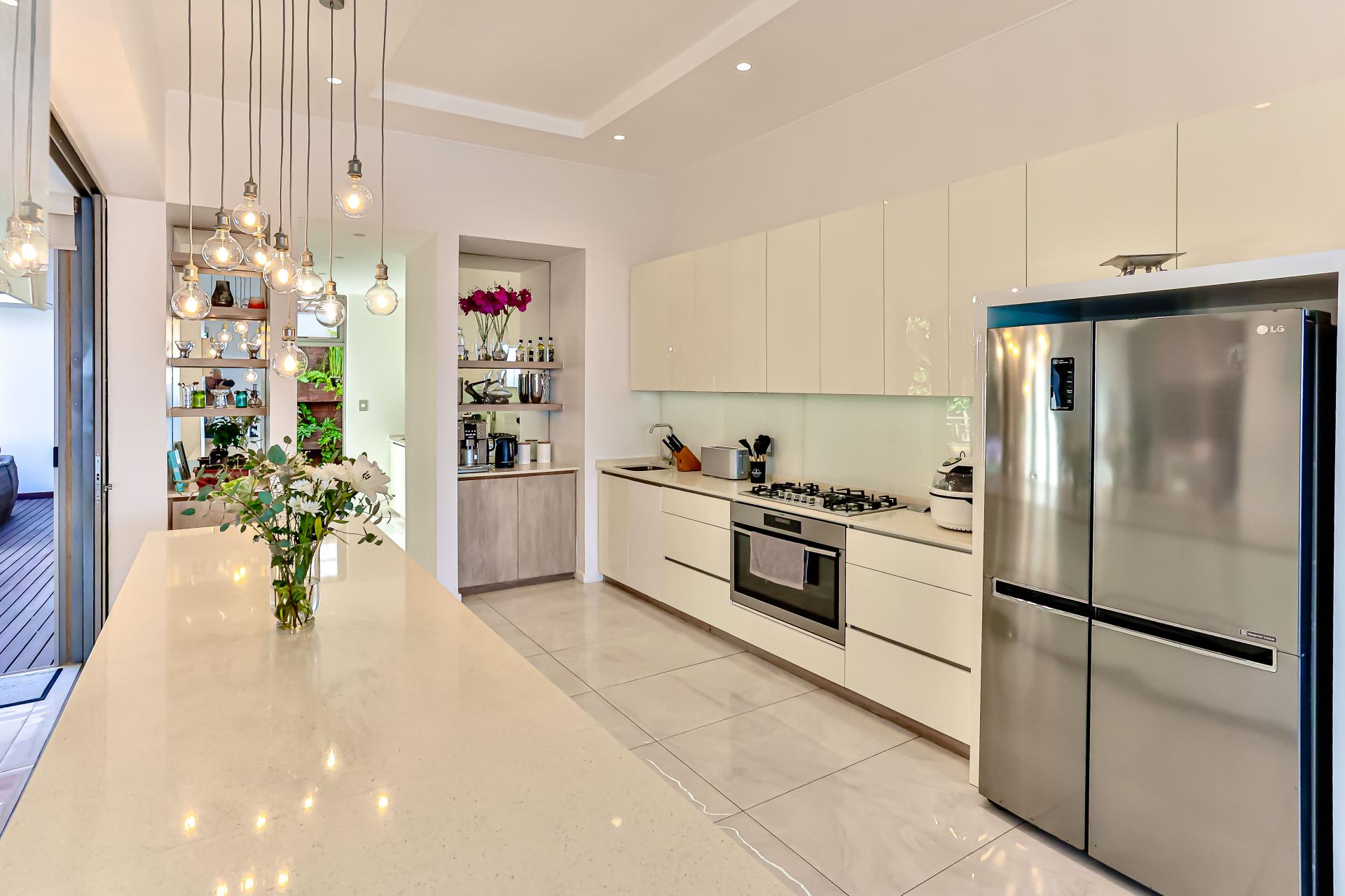 Entertain with flair in the designer kitchen, featuring a gas hob, scullery, and adjoining bar and grill corner warmed by a gas fireplace—ideal for cozy evenings or vibrant gatherings.