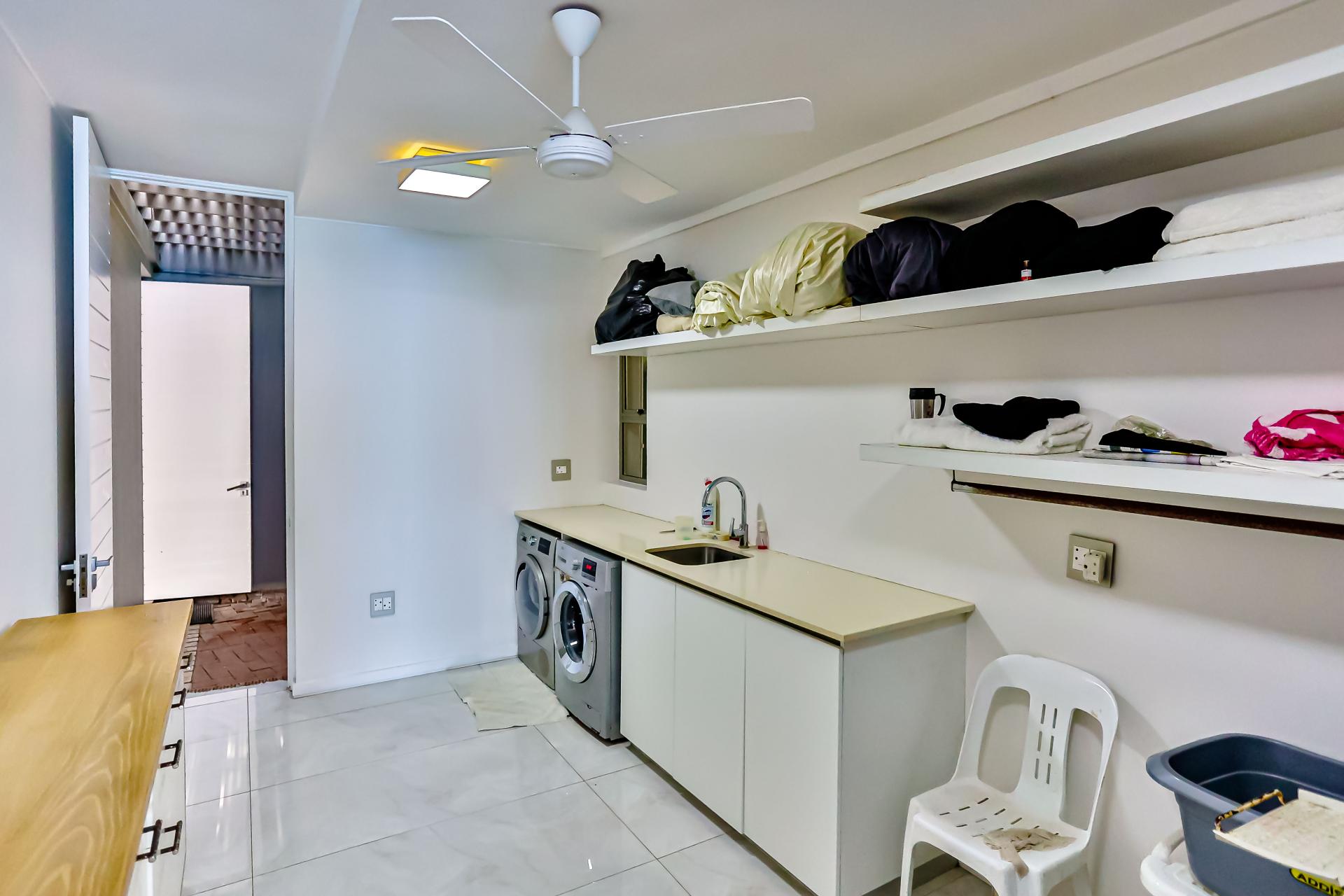 A fully equipped laundry room is discreetly positioned near the bar and kitchen on the lower level.
