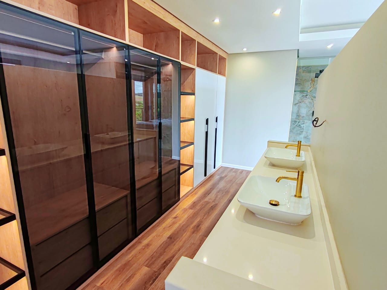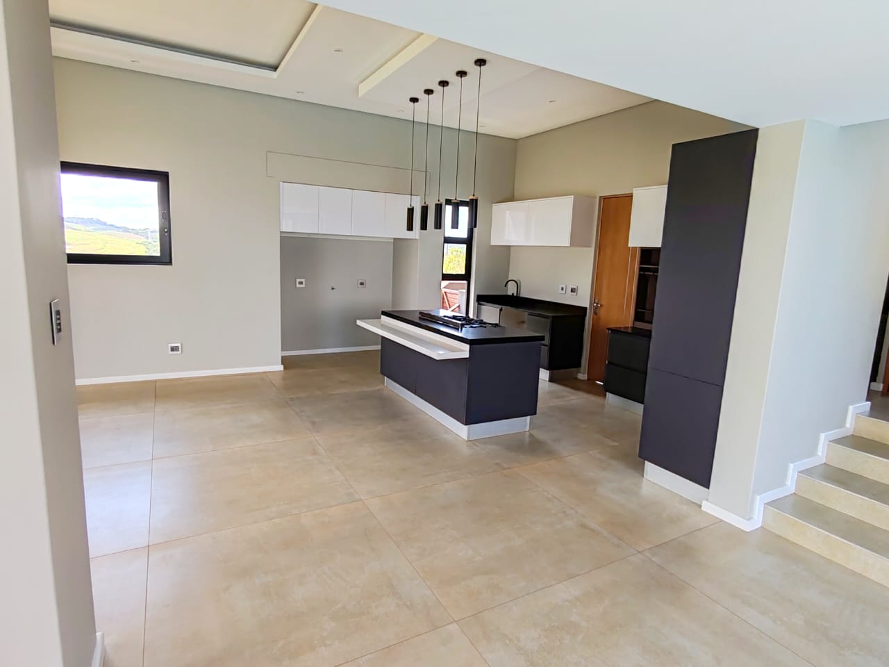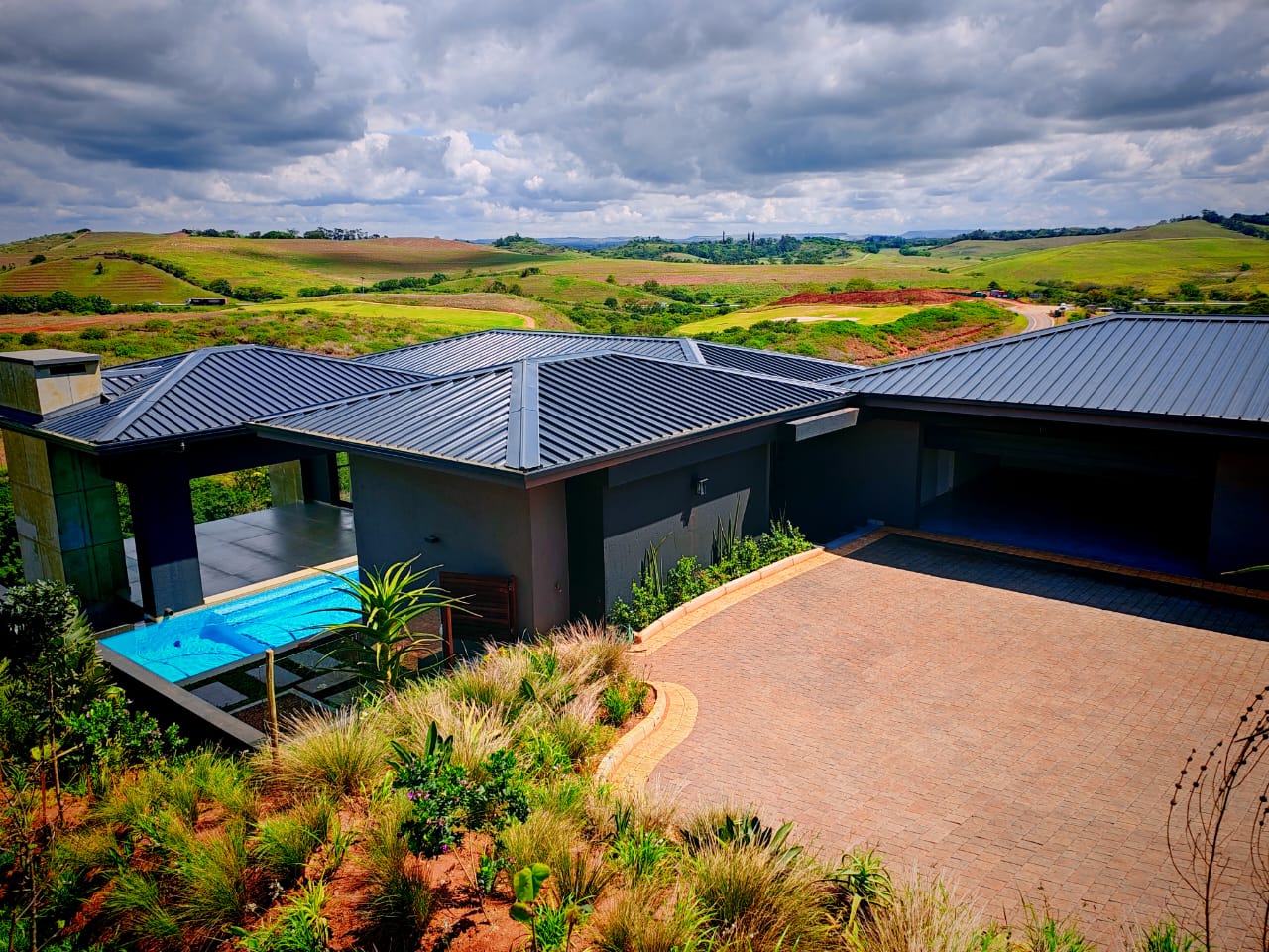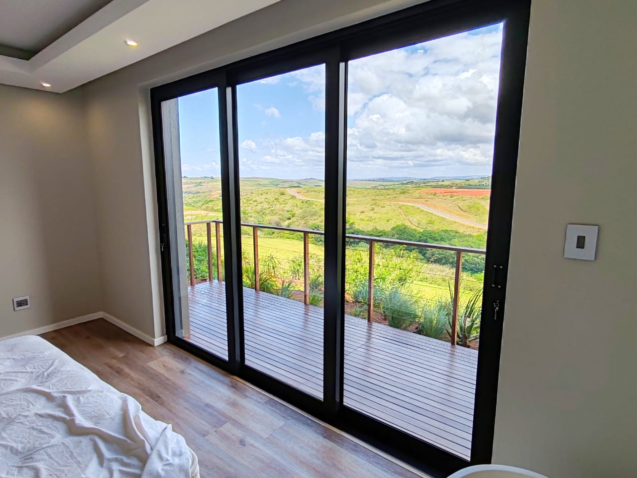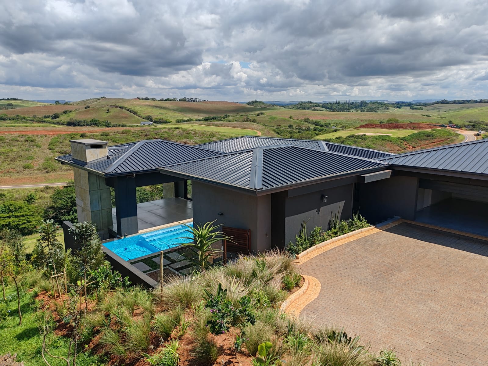 Built with very high end finishes throughout, the designer open plan kitchen flows into a living and dining area that extends onto a spacious covered patio, deck and a protected swimming pool with a boma area-ideal for entertaining or unwinding in the tranquil surroundings. This level also features a guest bedroom with an en-suite bathroom, a separate guest toilet, a scullery and drying area.