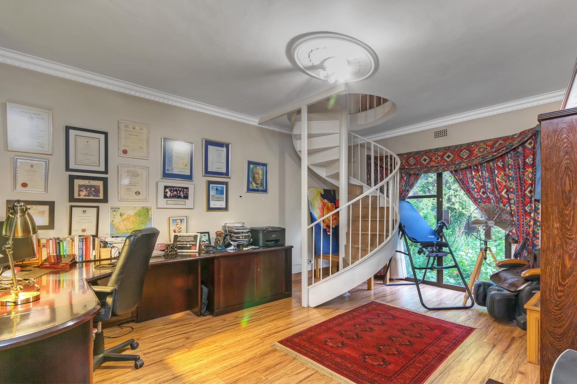 ​Adding to the home's versatility, a massive games room, home office, or kids' lounge occupies one end of the house, with a spiral staircase leading down to the study below. This flexible space is perfect for running a business, or it could easily be converted into a flatlet for an older child or extended family.